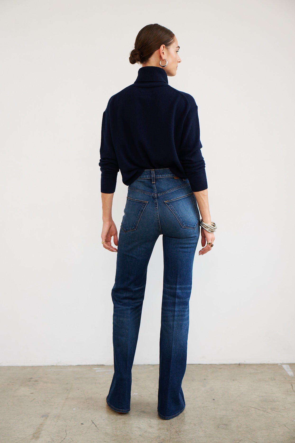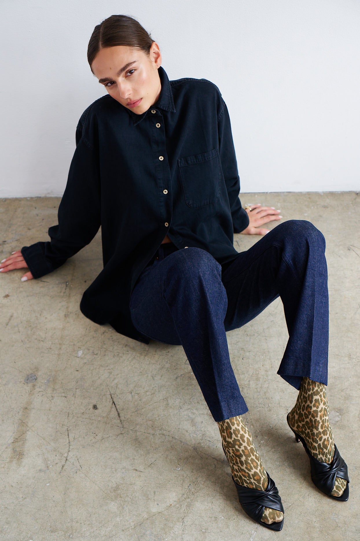 I wanted to make a jean that both lifts and elongates, I wanted to create the best butt. I crafted pockets that elongate the inner edge, we tilted them slightly up to create a triangular pitch that lifts. It’s denim architecture. We call them good butt jeans, and they are.