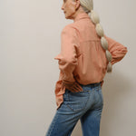 Our denim is pre-shrunk but should be washed inside out in cold water and laid flat to dry. Stretch styles will grow about 1/2 size with wear and retract when washed. Dark colors may bleed. Wash cold before first wear. We recommend having a tailor hem to your preferred length. Our piece-dyed Japanese cotton pieces maintain deeper color, while garment-dyed items offer a lived-in look with natural variation. Machine wash casual pieces inside out in cold, lay flat to dry; dry clean tailored and silk pieces. See here for full care instructions.