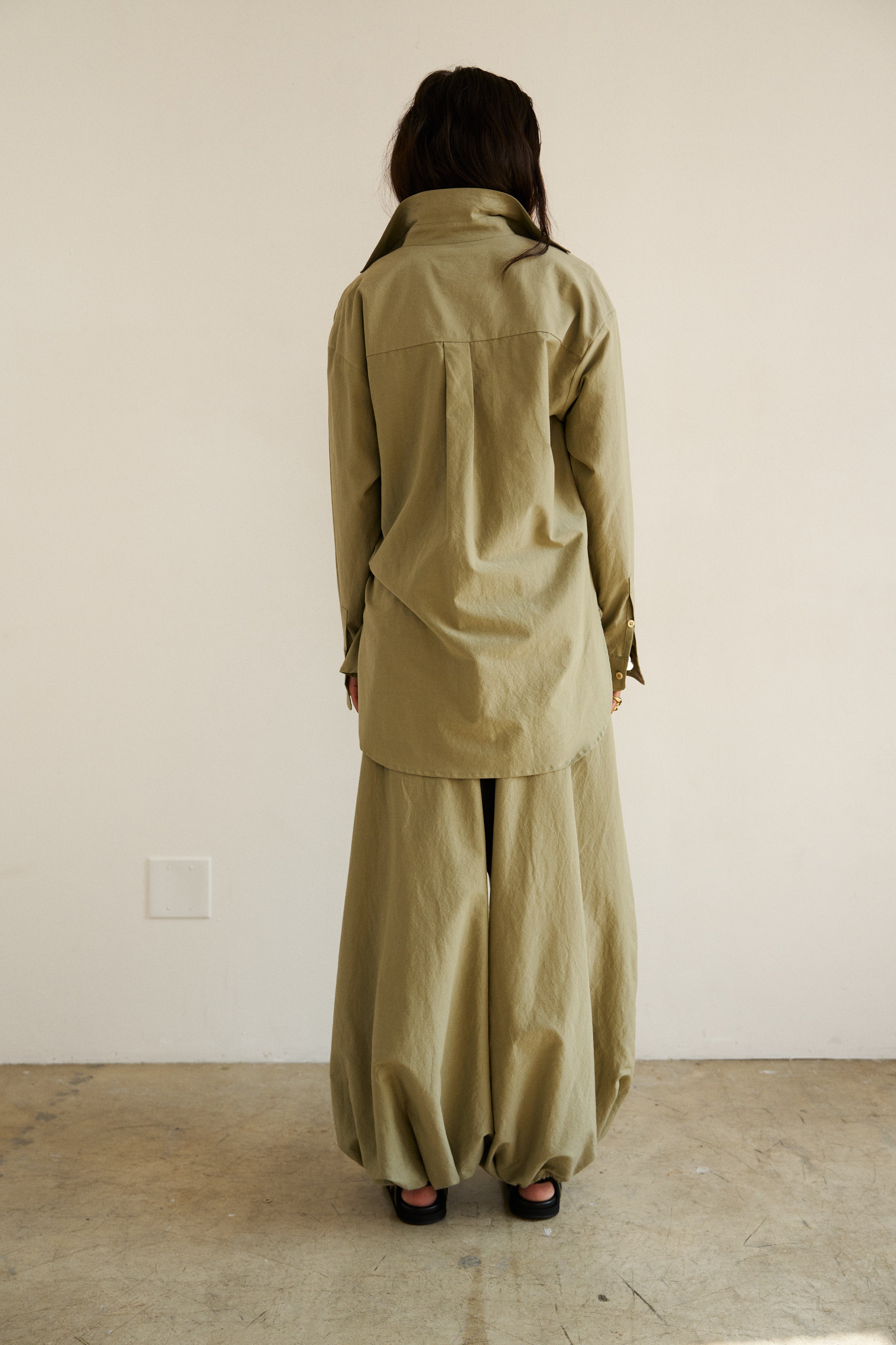 A relaxed fit and expertly cut shirt that exudes beautiful drape. Fabric that expresses ease and structure. A perfectly placed button at the chest allows for a deep plunging neckline. Tailored in Silk Cotton.