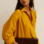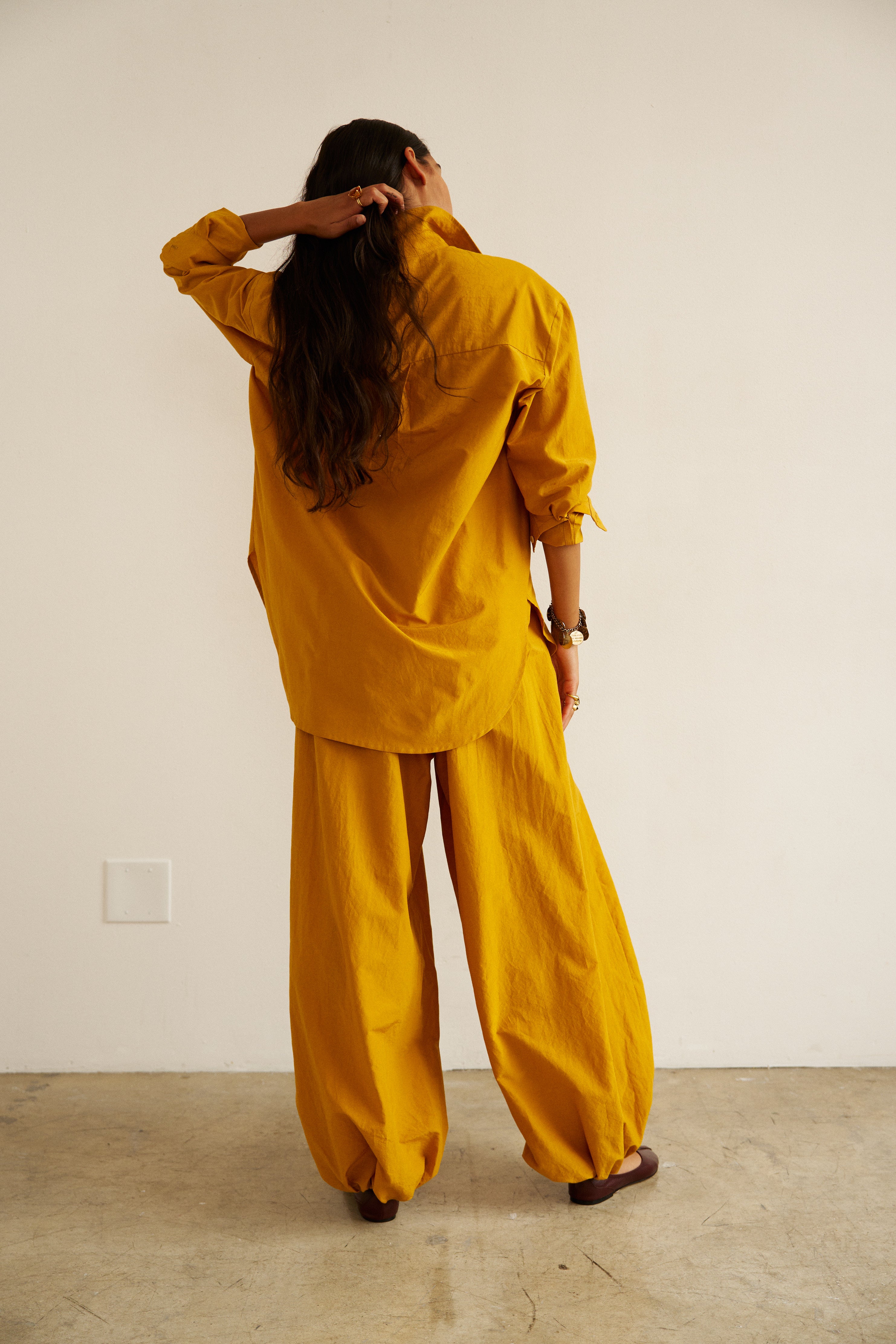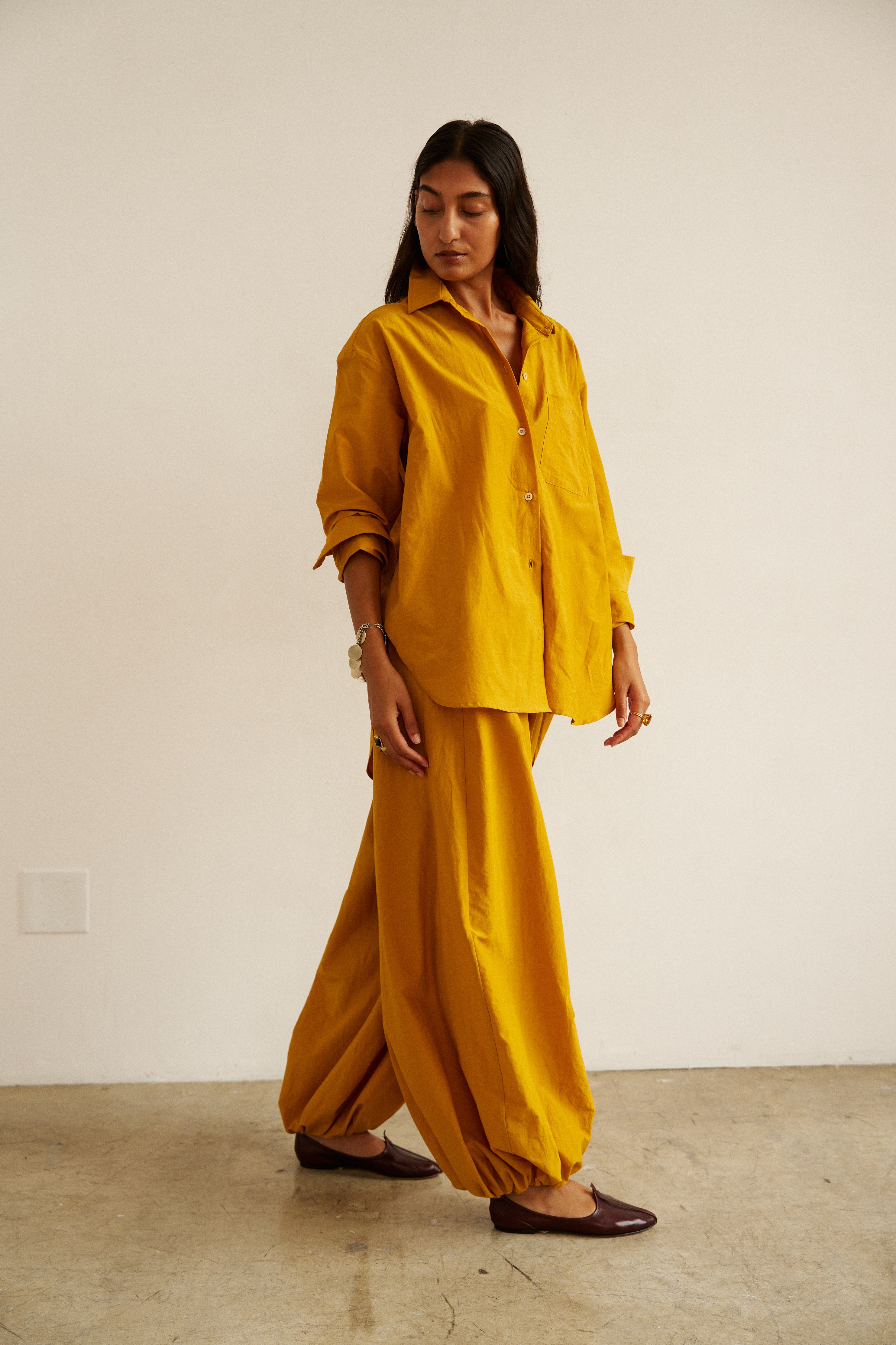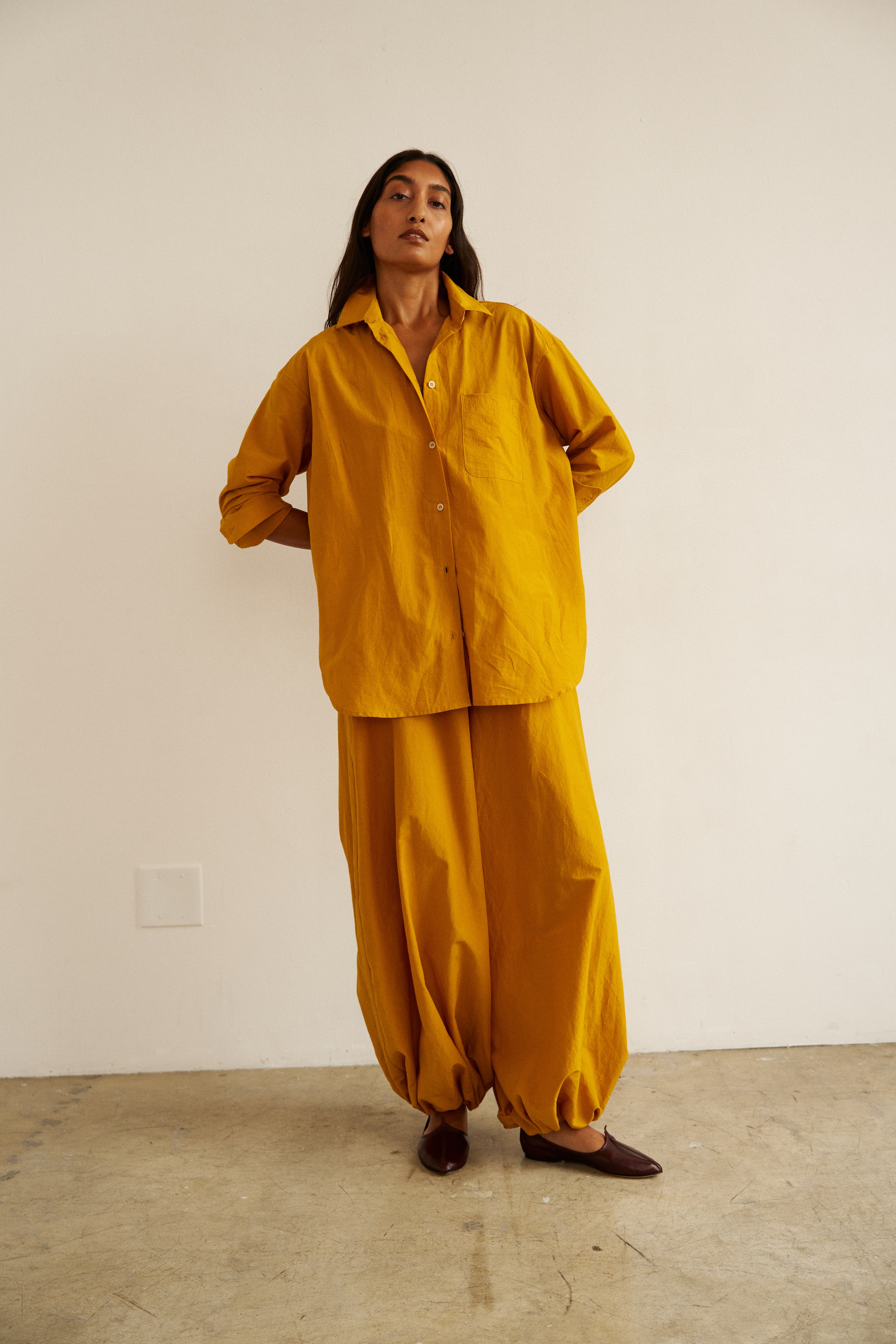 A relaxed fit and expertly cut shirt that exudes beautiful drape. Fabric that expresses ease and structure. A perfectly placed button at the chest allows for a deep plunging neckline. Tailored in Silk Cotton.