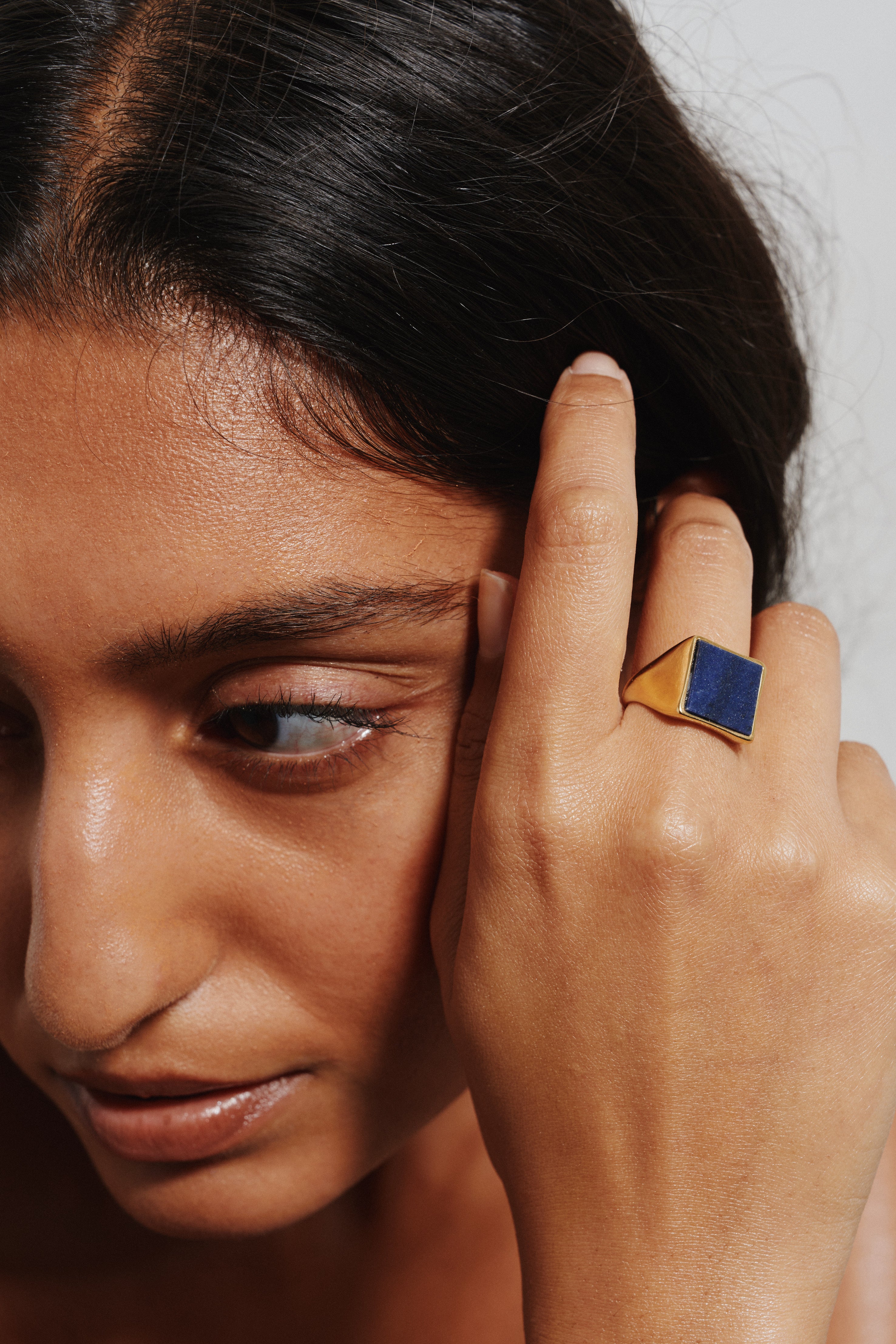The Nina Flat Signet Ring in Blue Aventurine