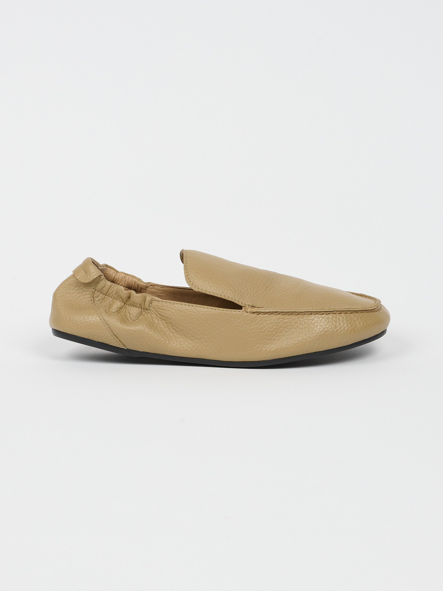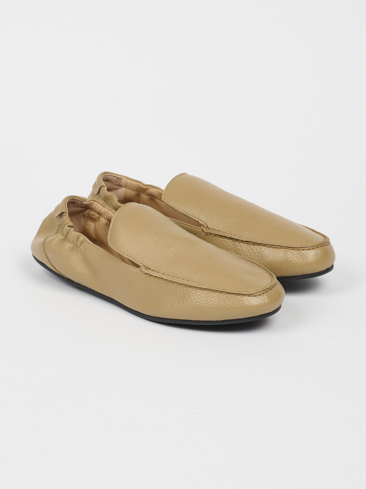 The softest loafer. A little added width, soft elastic backs you can step on if you want. As lazy and chill as you want to be. A classic driver shape that gets you around. A soft rubber sole, slim and streamline in a minimal silhouette. Italian pebble calfskin in our signature sachetto construction.