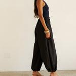 Playing with sheerness and volume, the elastic waist Balloon pant is an pull on pant with extreme volume and sexy vulnerability. Perfect to pair with the Essential blouse in a breezy, barely buttoned way. Tailored in Silk Cotton Voile. Clean front, elastic back construction.