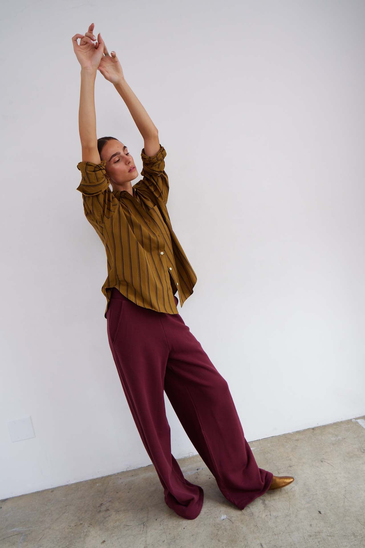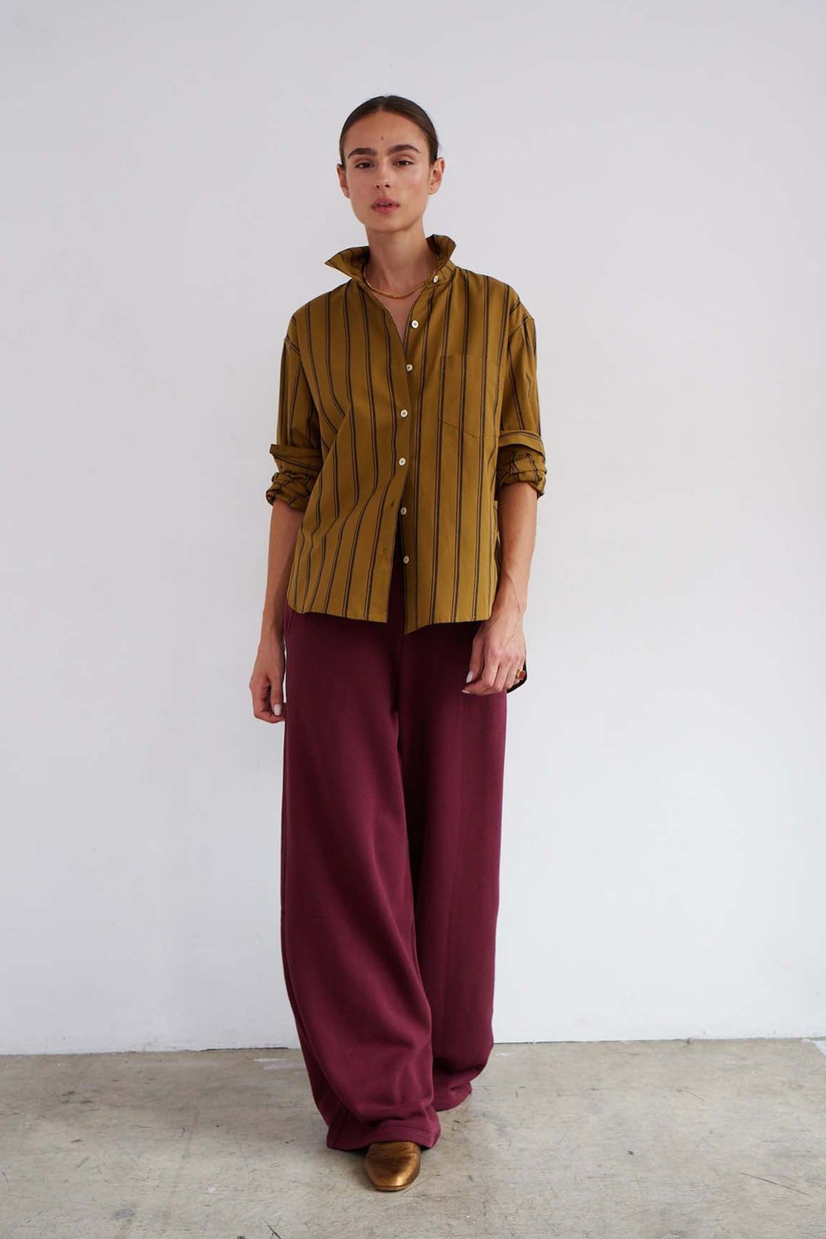 The Stripe Essential Shirt in Burgundy Natural