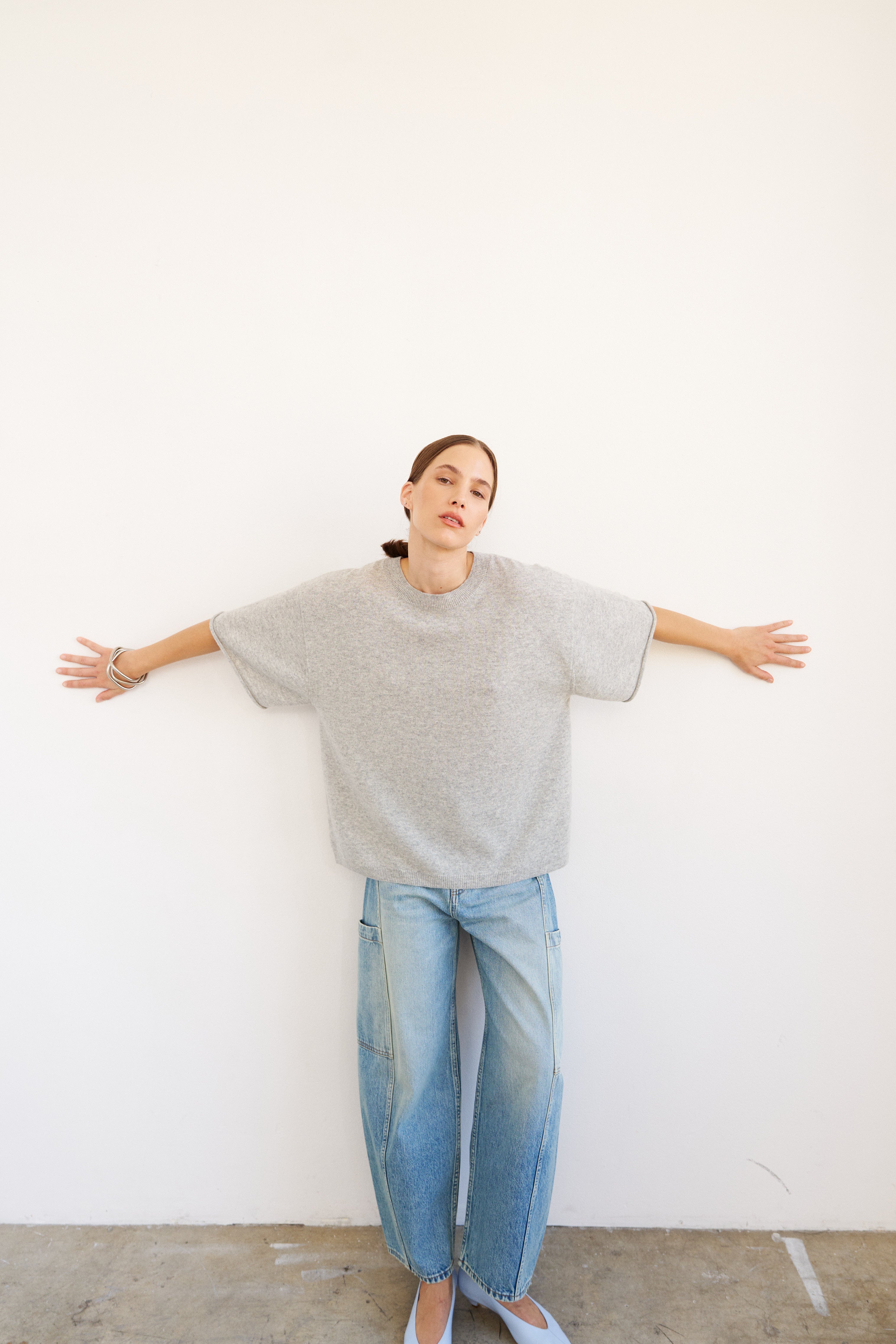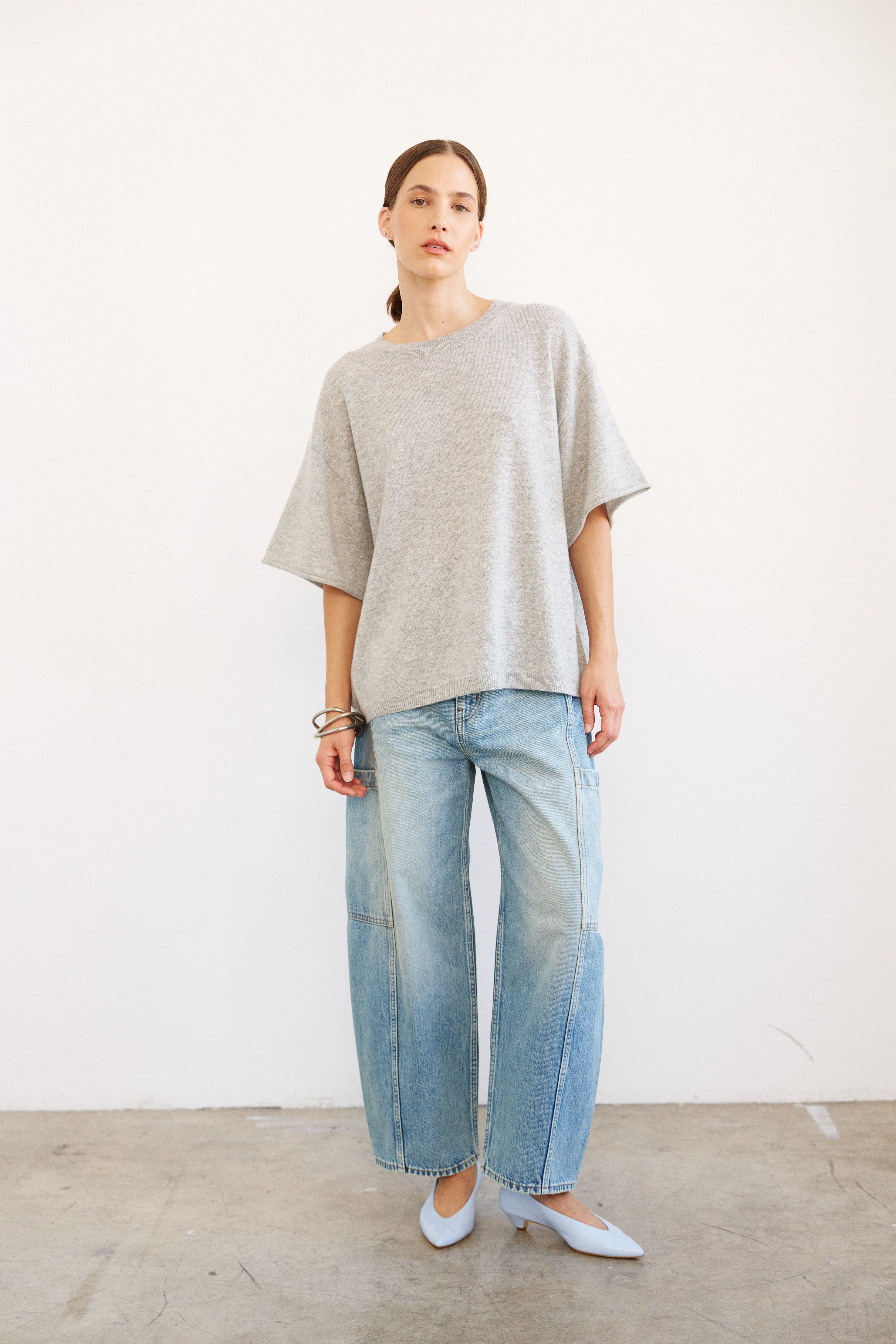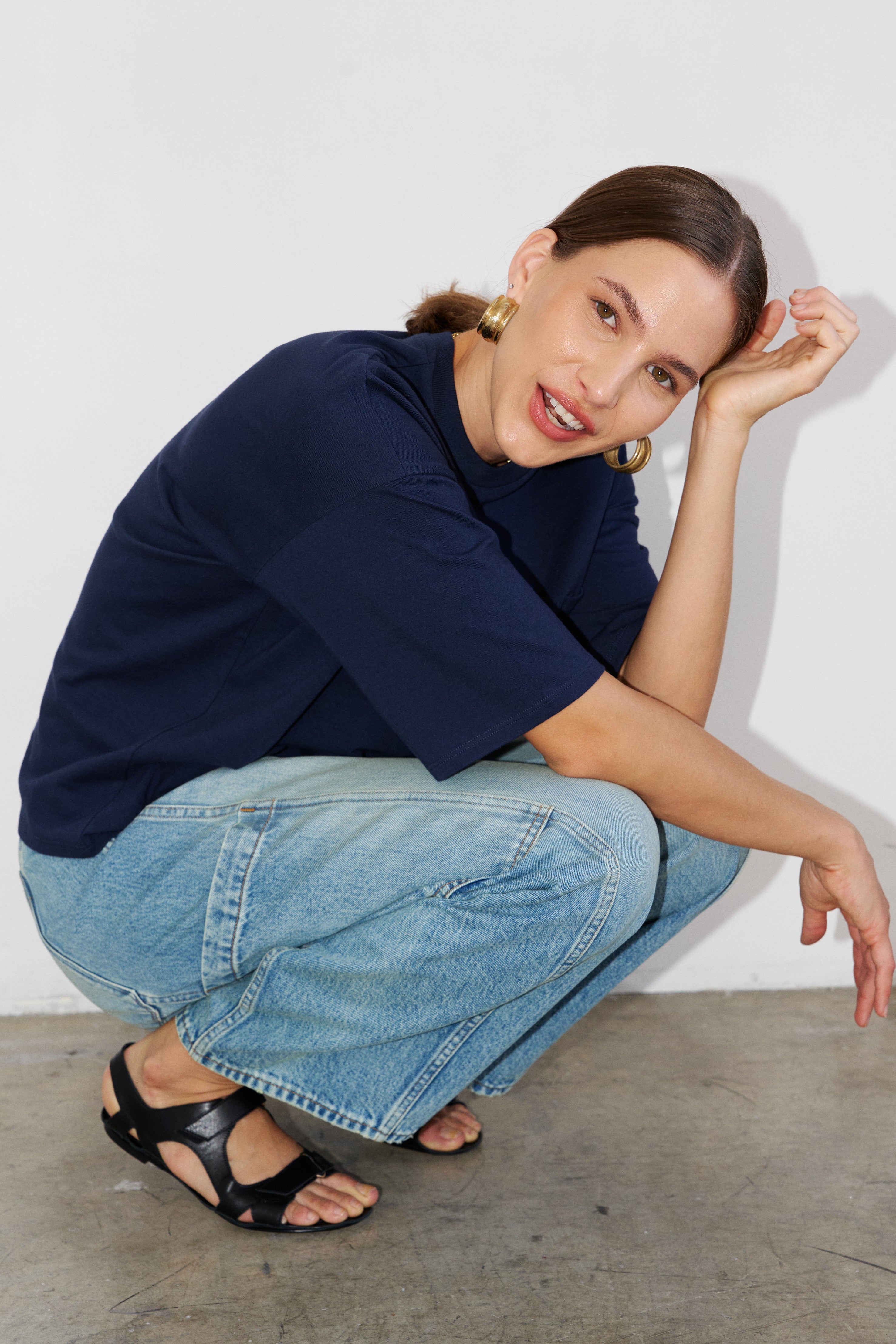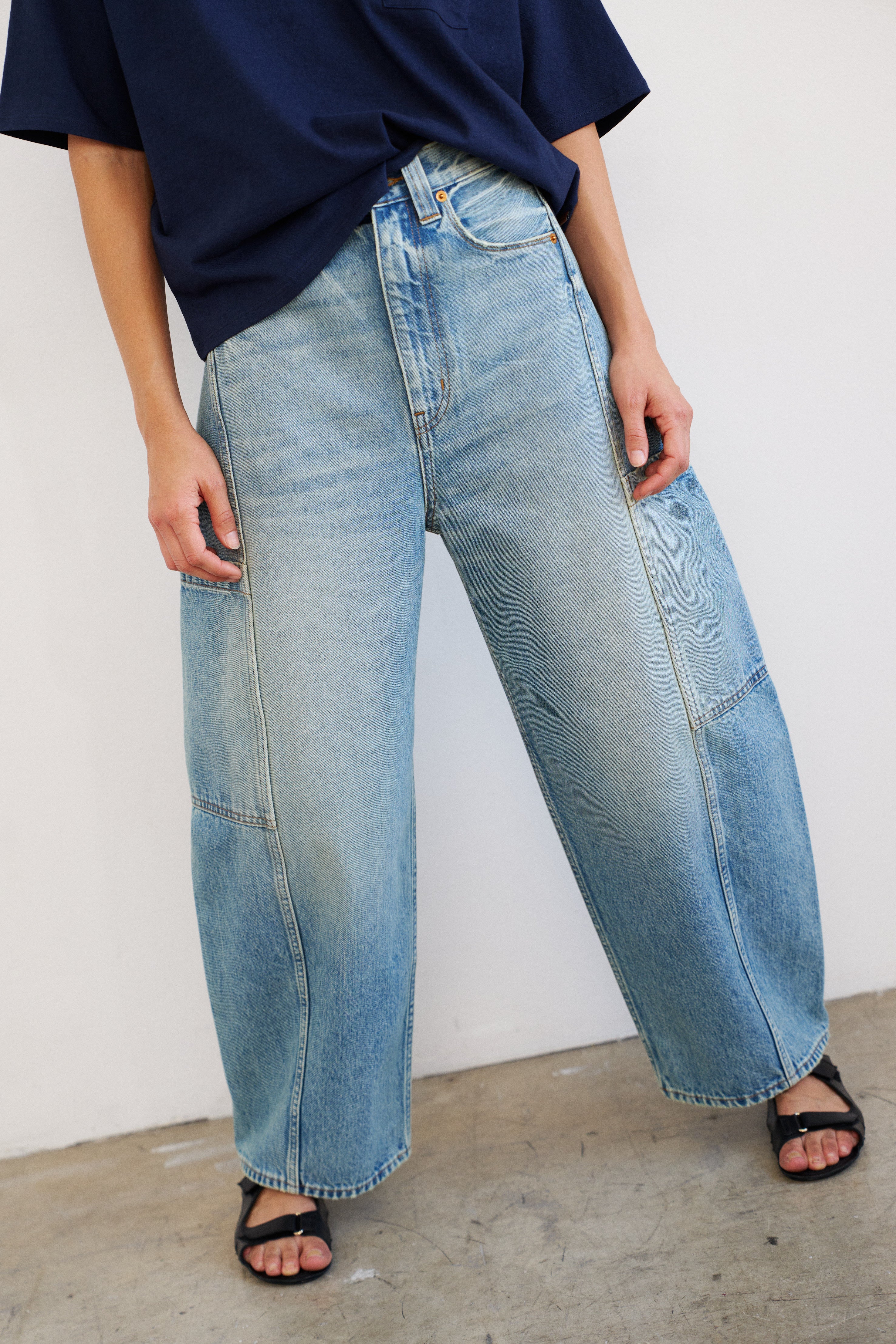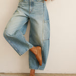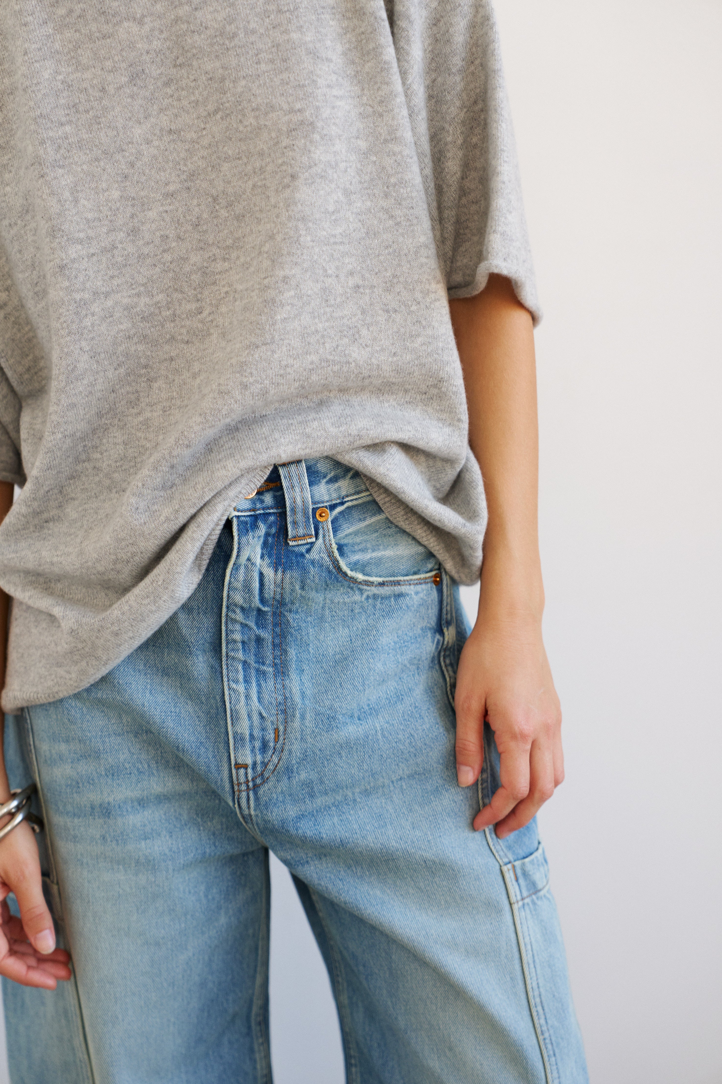 Our signature Baggy painter in a fresh spring crop. Washed down to vintage perfection, the architecturally sculpted & baggy shape contrasts a natural fit waist. Inset patch pockets at the mid leg are functional and inspired by chic house painters. Form meets function. A forward silhouette with a casual feel. 100% Cotton Indigo in worn indigo wash. Supply is limited. 26.5" inseam on a slightly dropped rise hits at the top of the ankle.