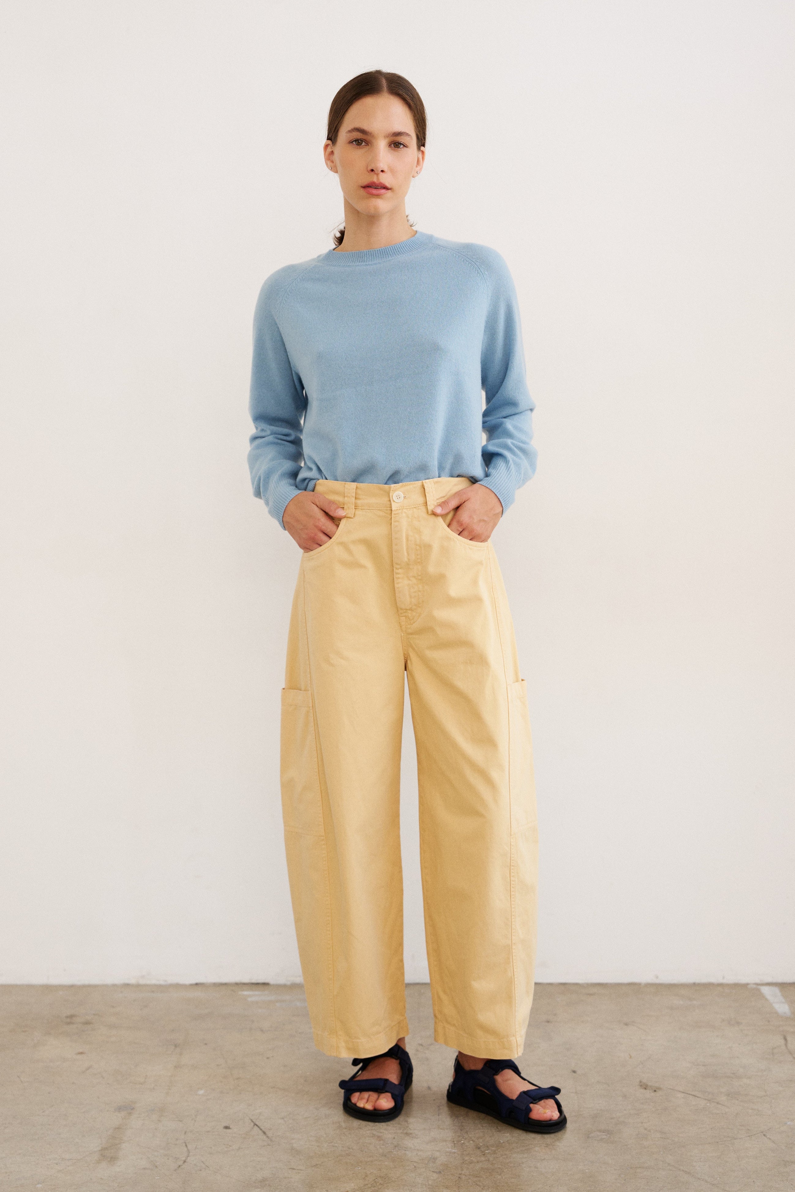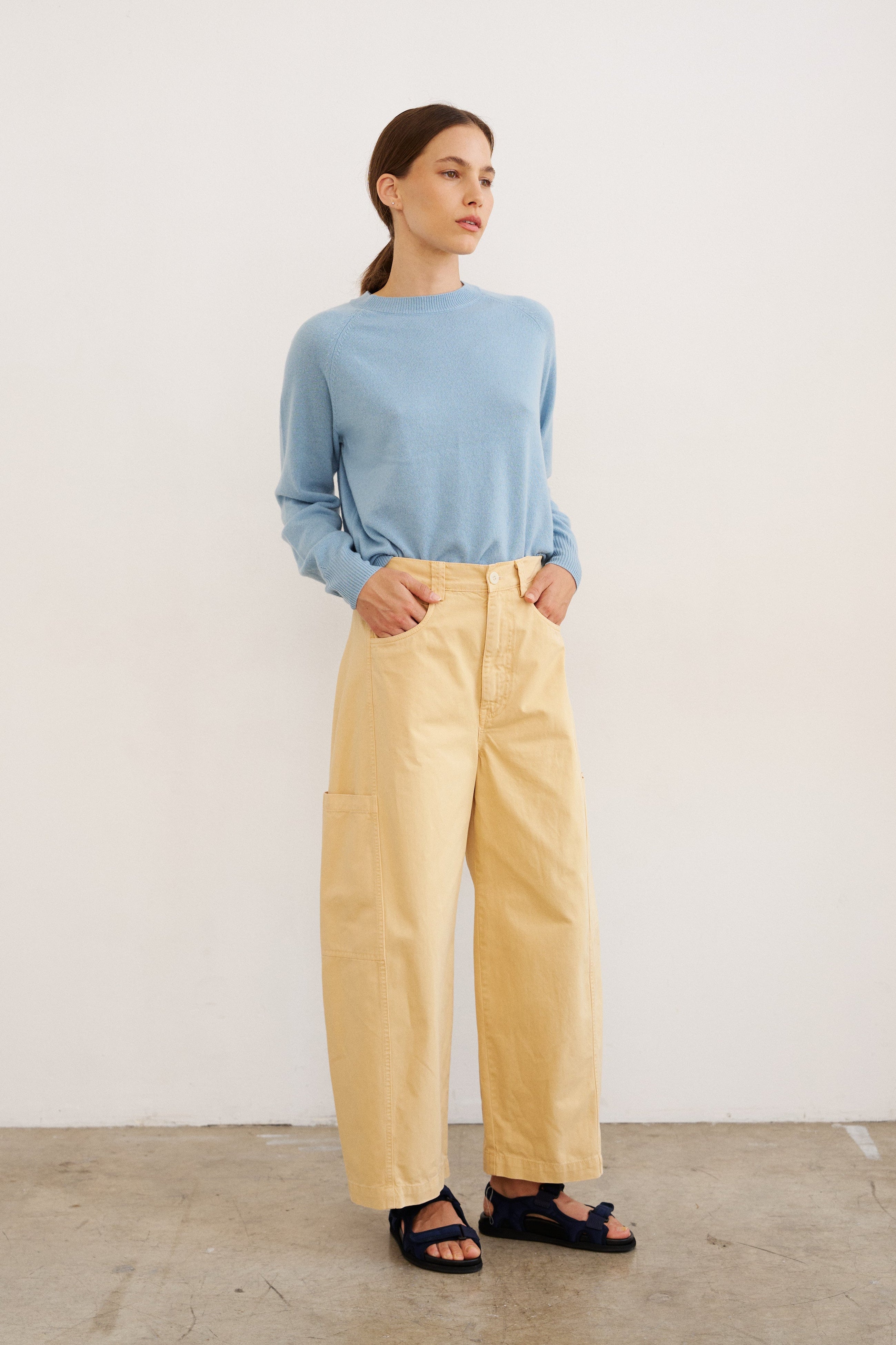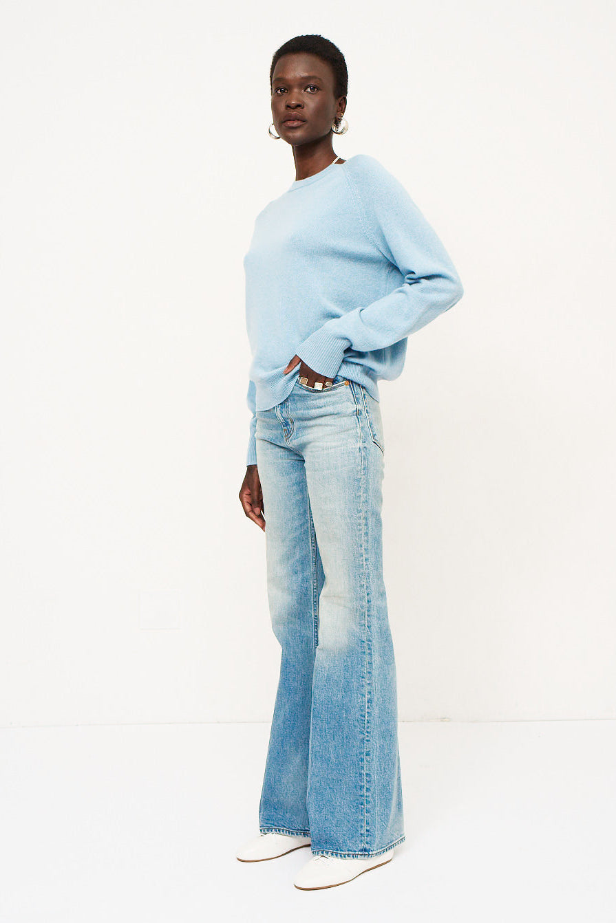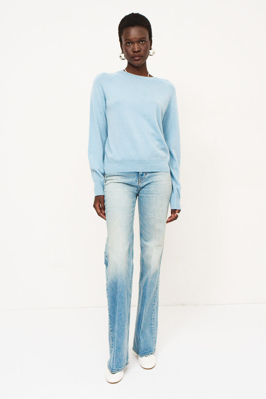 An ever classic, a perfect crew neck sweater with an easy, everyday fit. Raglan seam. Knit in tee shirt weight 100% cashmere.
