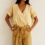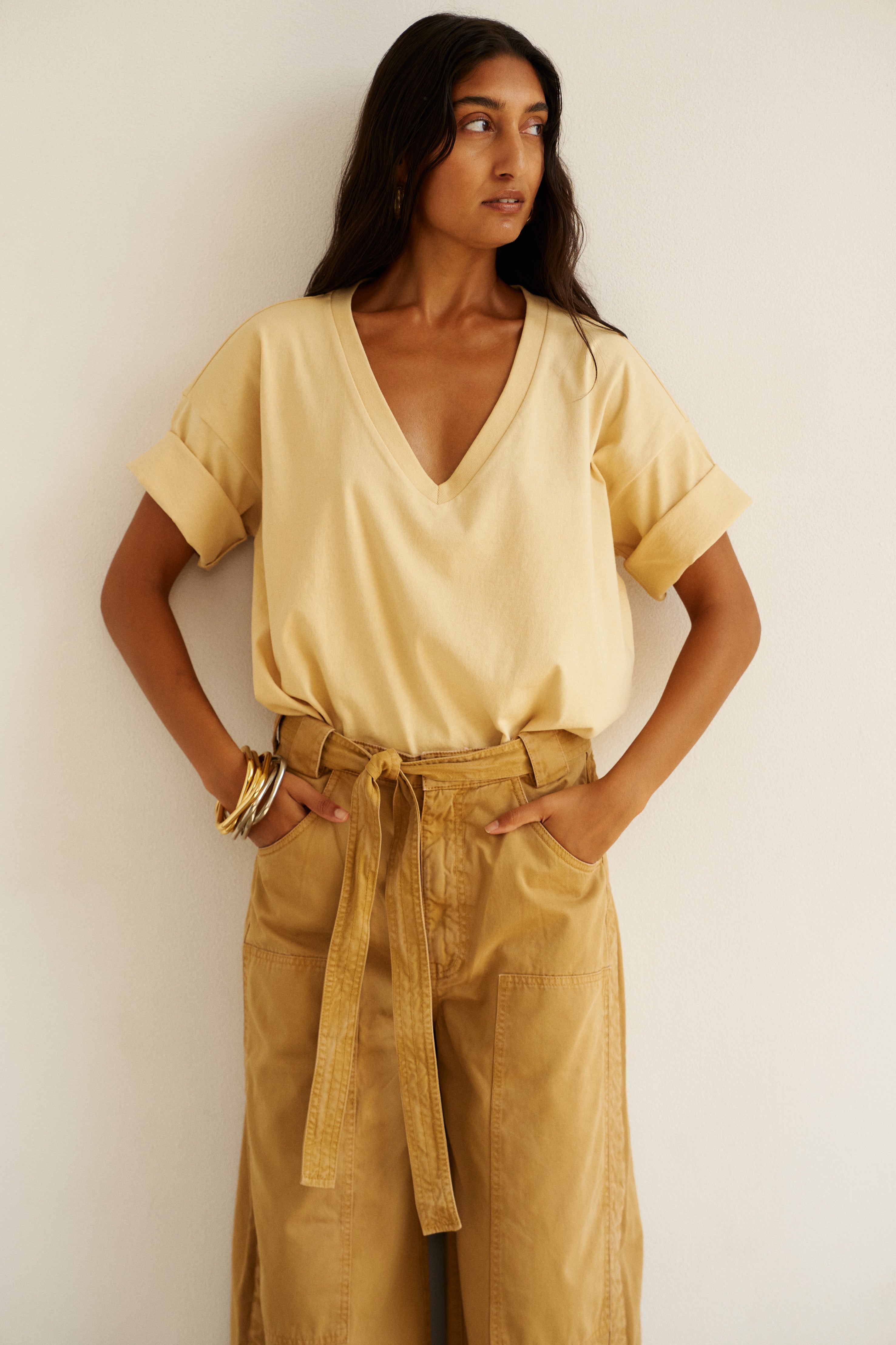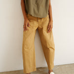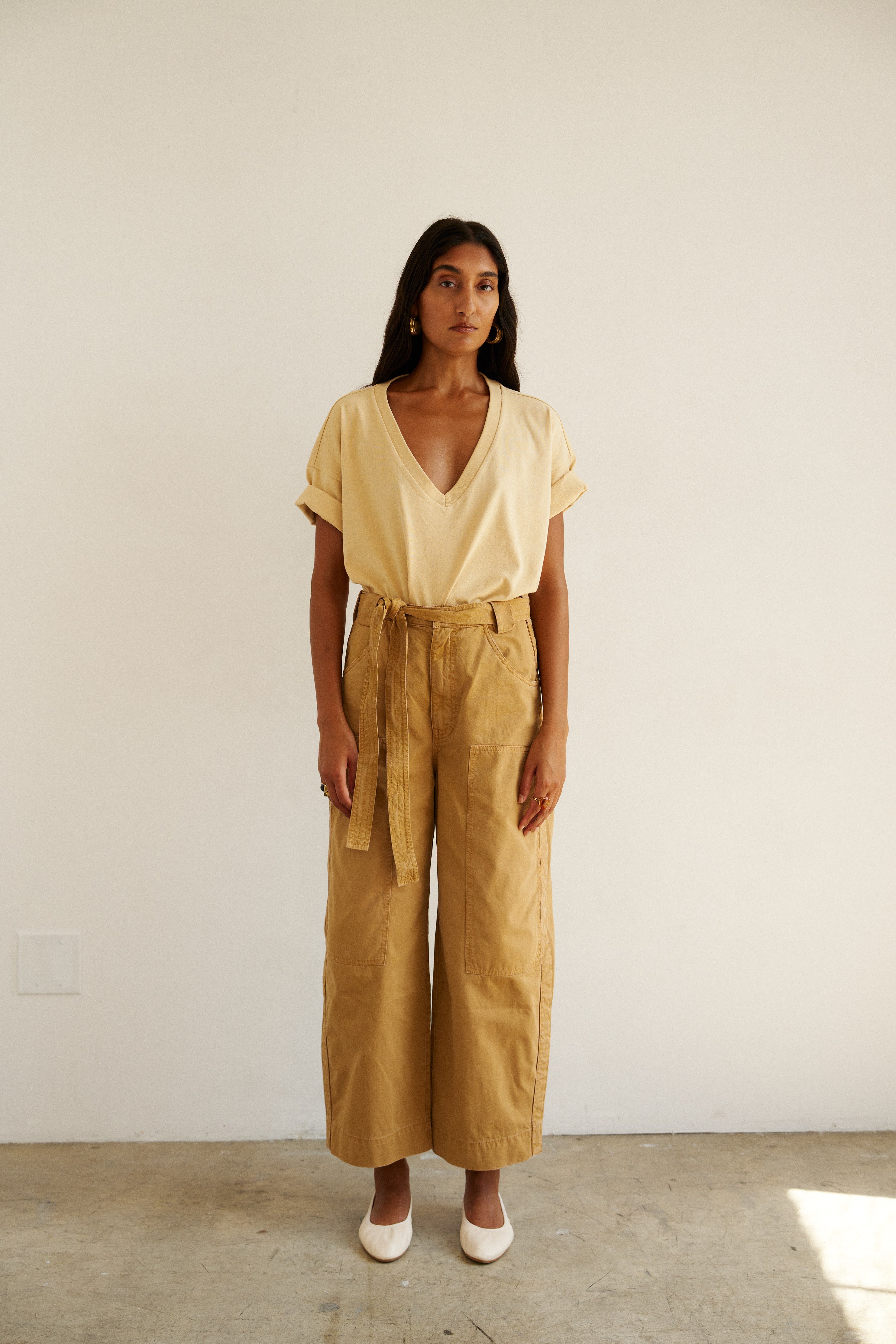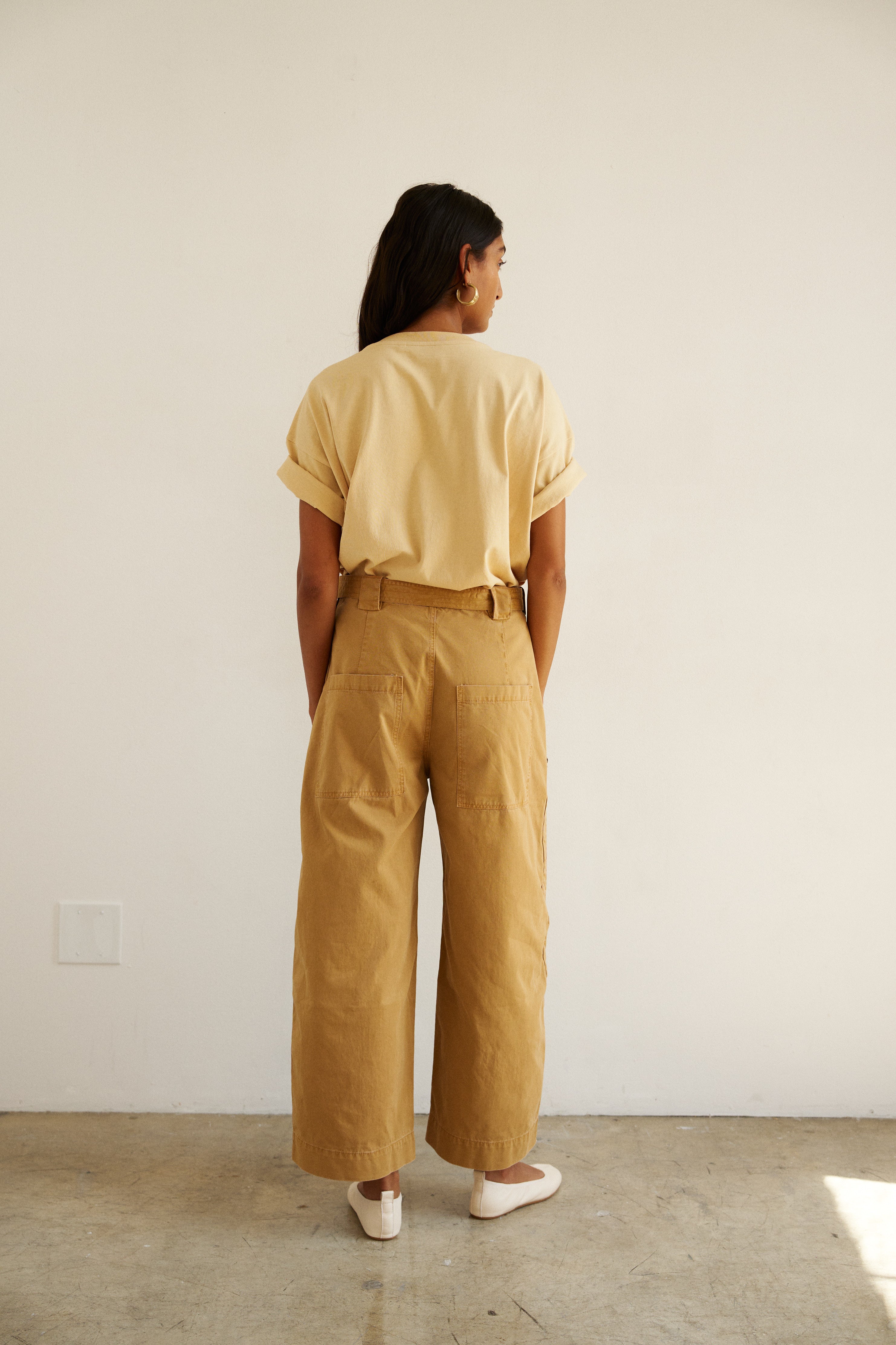A rounded leg shape contrasts a natural fit waist. Patch forward details and Obi Inspired belt detail. A wide cropped hem at ankle length, perfect for cuffs that show off loafers. Tailored in Japanese brushed twill. Garment dyed for a soft drape, washed-in appeal and undeniable ease.