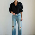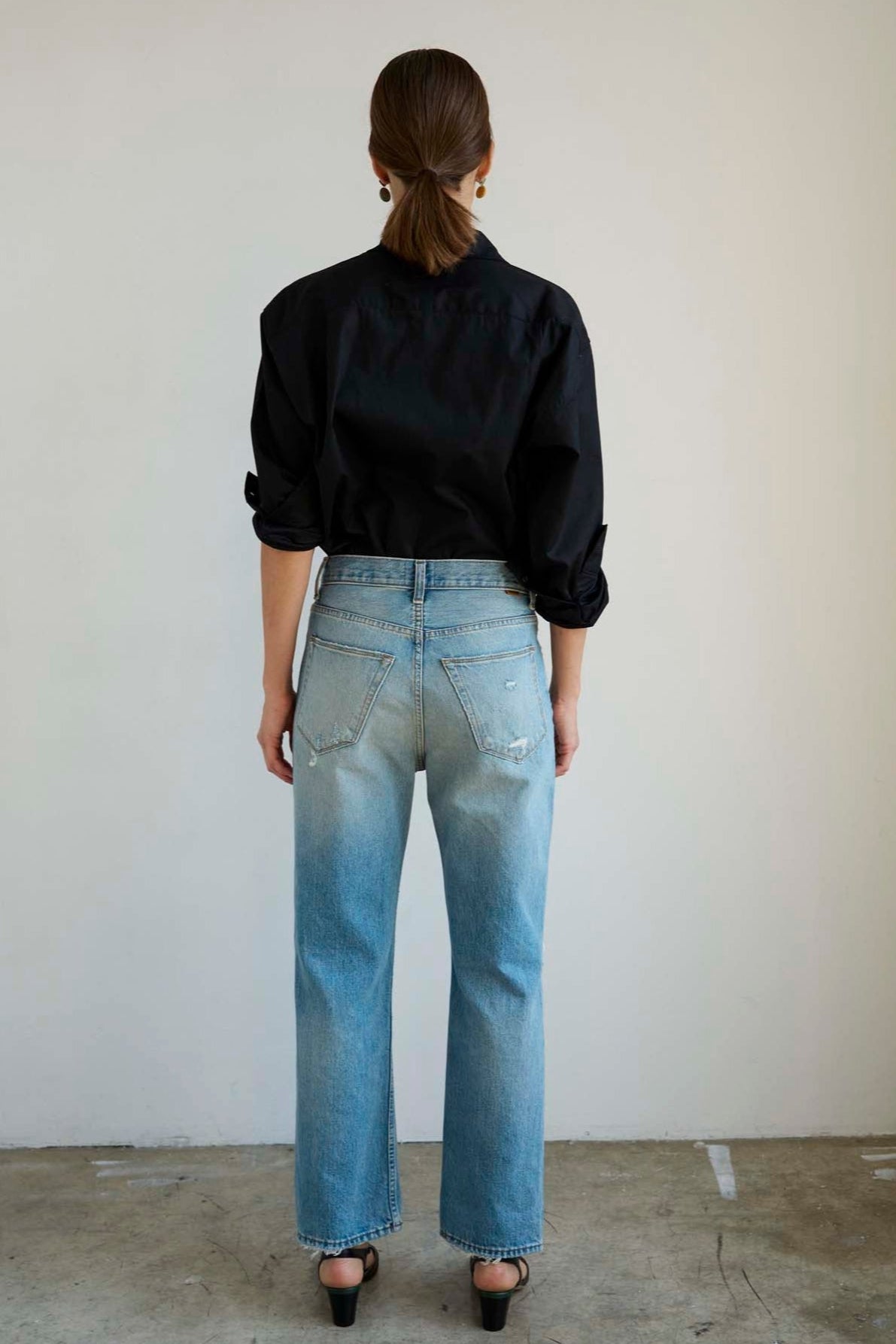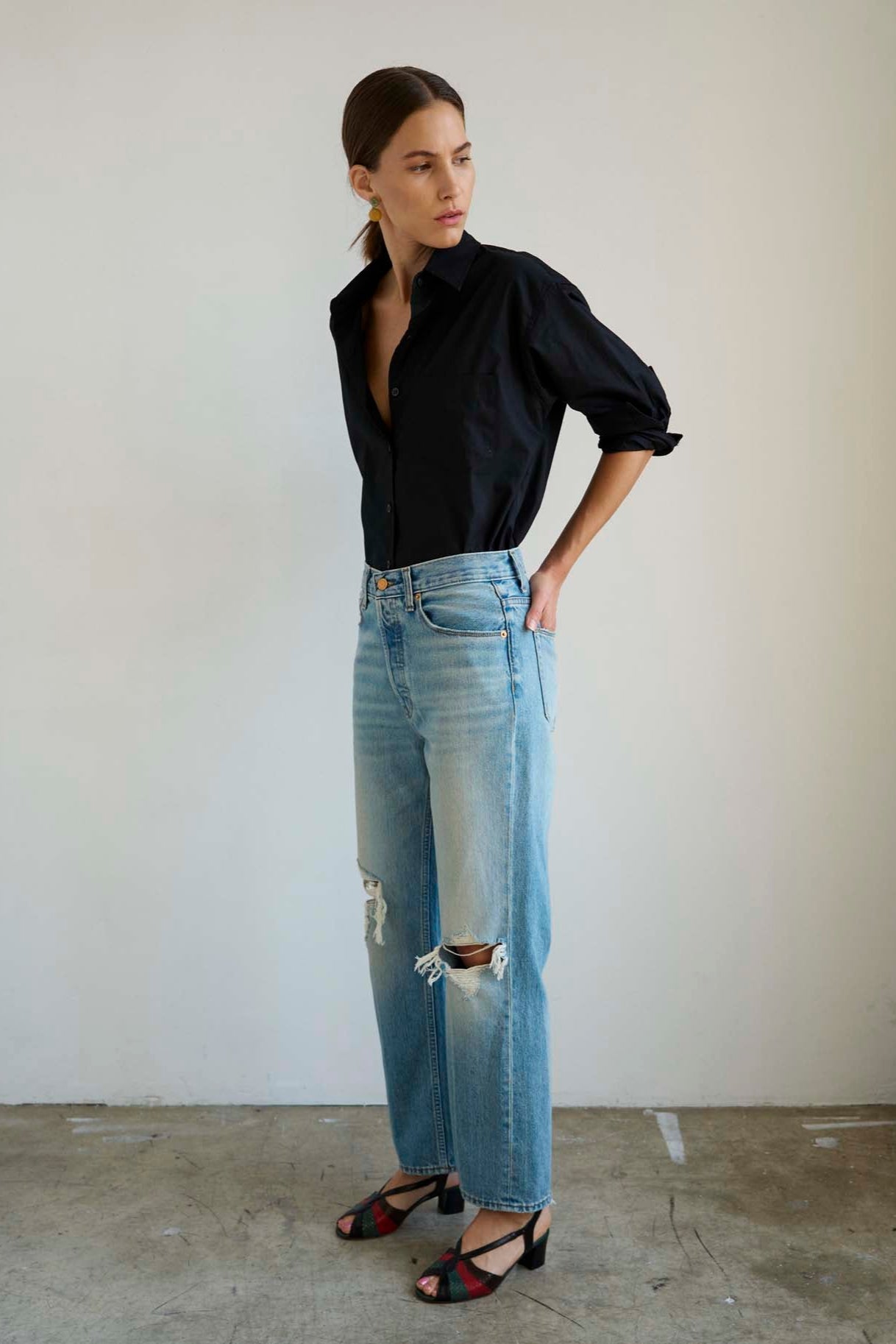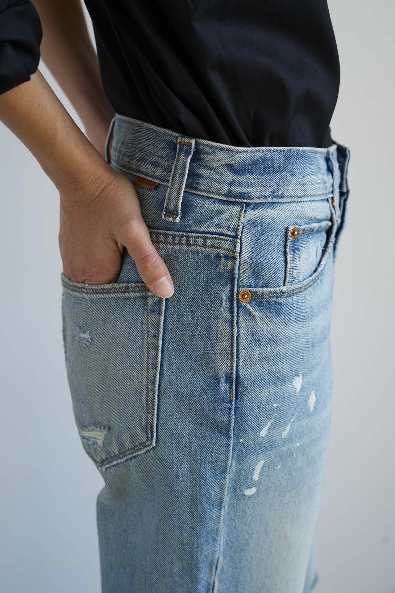 Inspired by every jean I have ever loved and worn out. The irreplaceable ones. The slouch is a mid rise, relaxed, ankle fit jean. An easy going fit that perfects a slung slouch and falls from the hip with ease. I prefer them with a knuckle deep, single cuff worn back to the loafer. They are the perfect loafer jean.