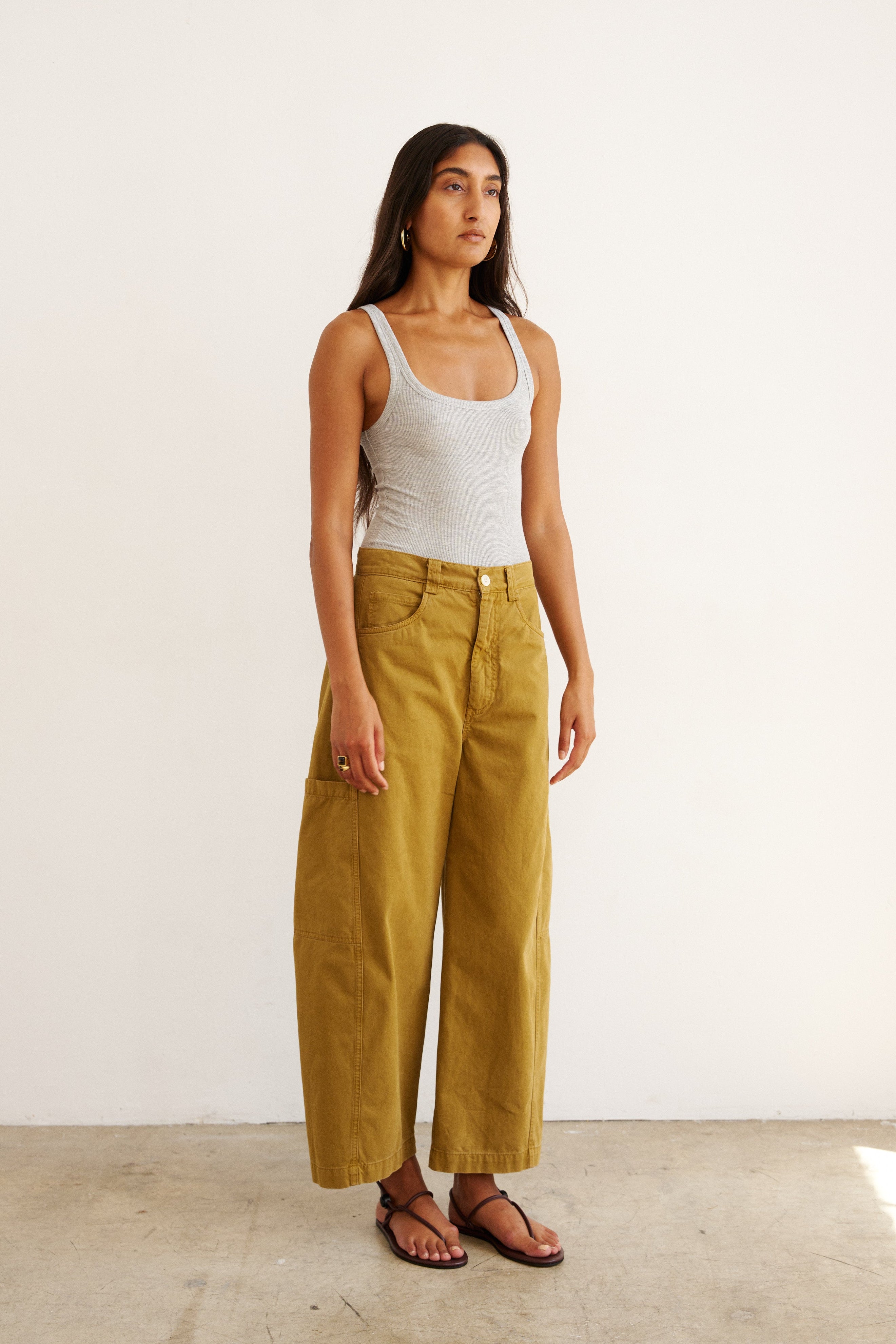 A slim rib tank with a wide neckline. Slim straps. Tailored in buttery soft modal spandex 1 x 1 rib.