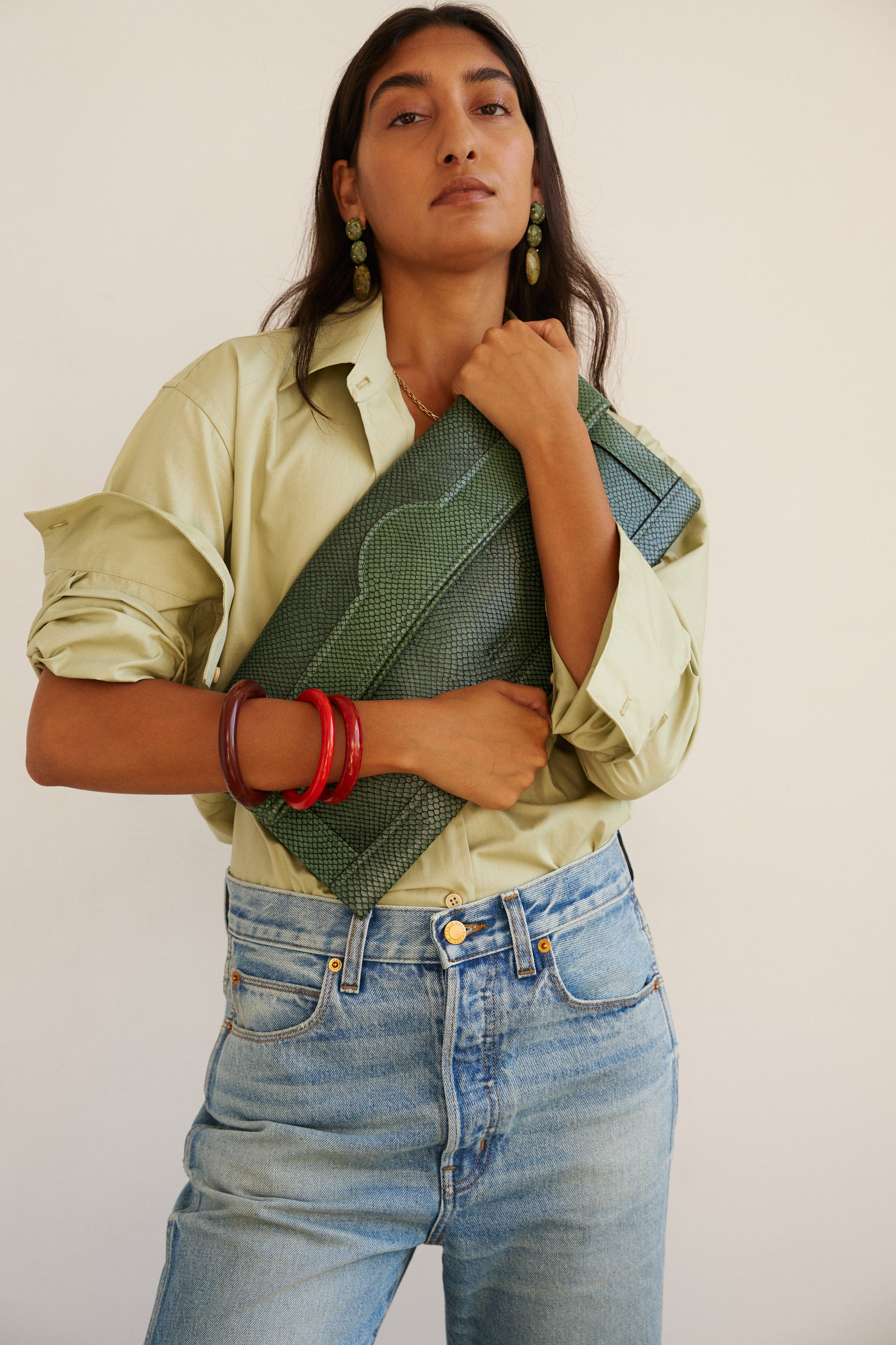 The Document Clutch in Green Snake