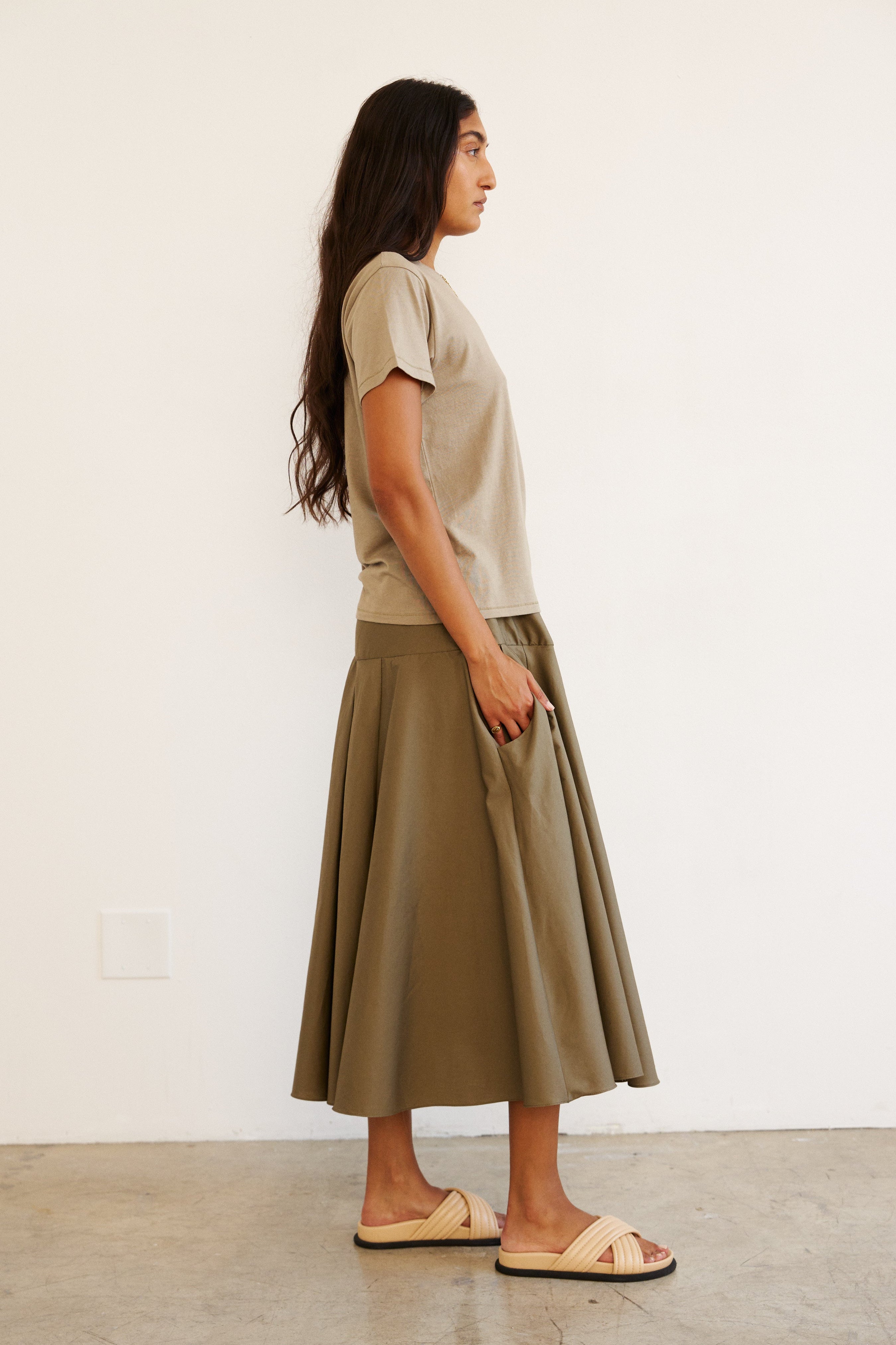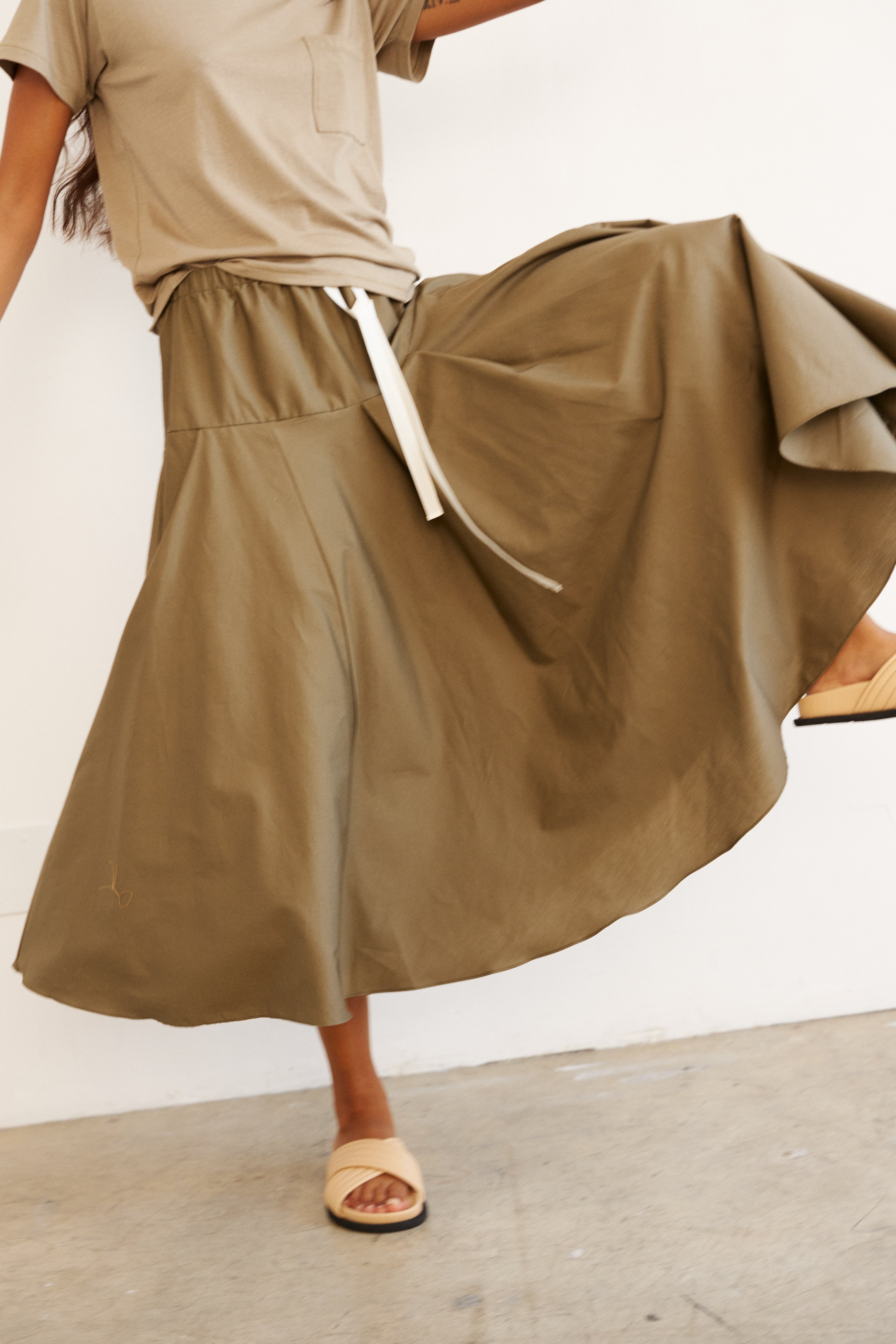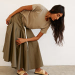 A skirt that floats in a fabric that feels bare on the skin and drapes with perfection. An effortless fullness that feels perfectly suited for an Italian getaway. Tailored in silk cotton poplin.