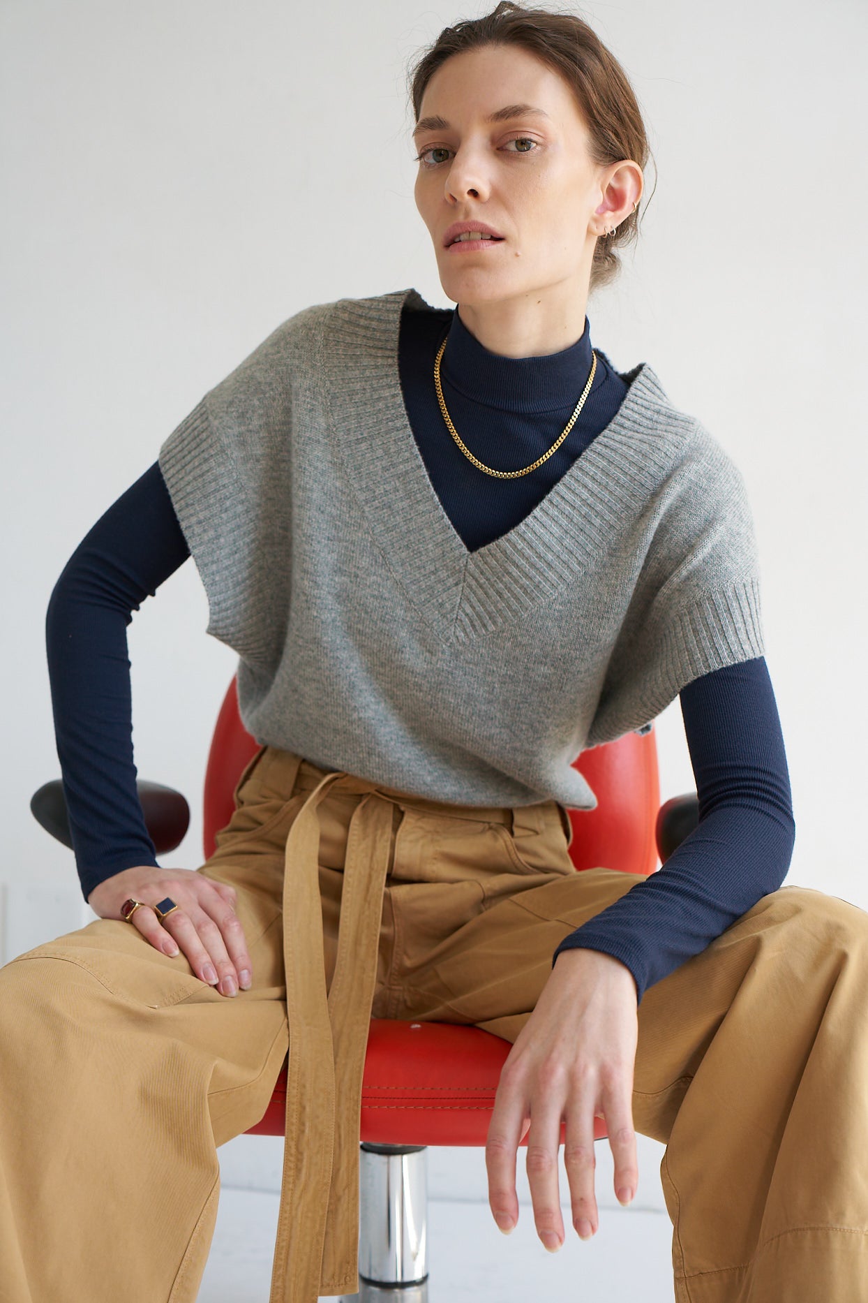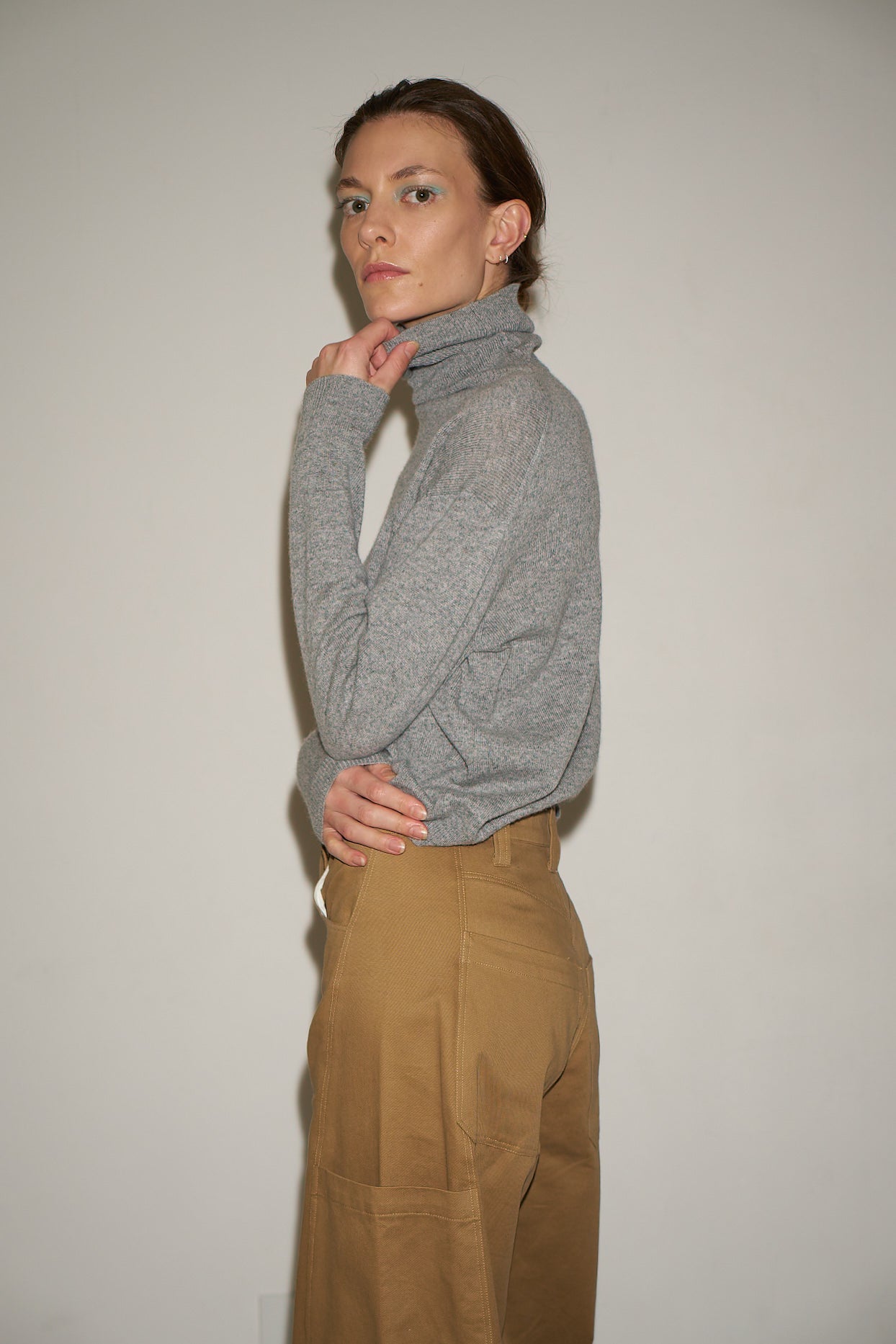 The Welt Pocket Cashmere Cardigan in Light Heather