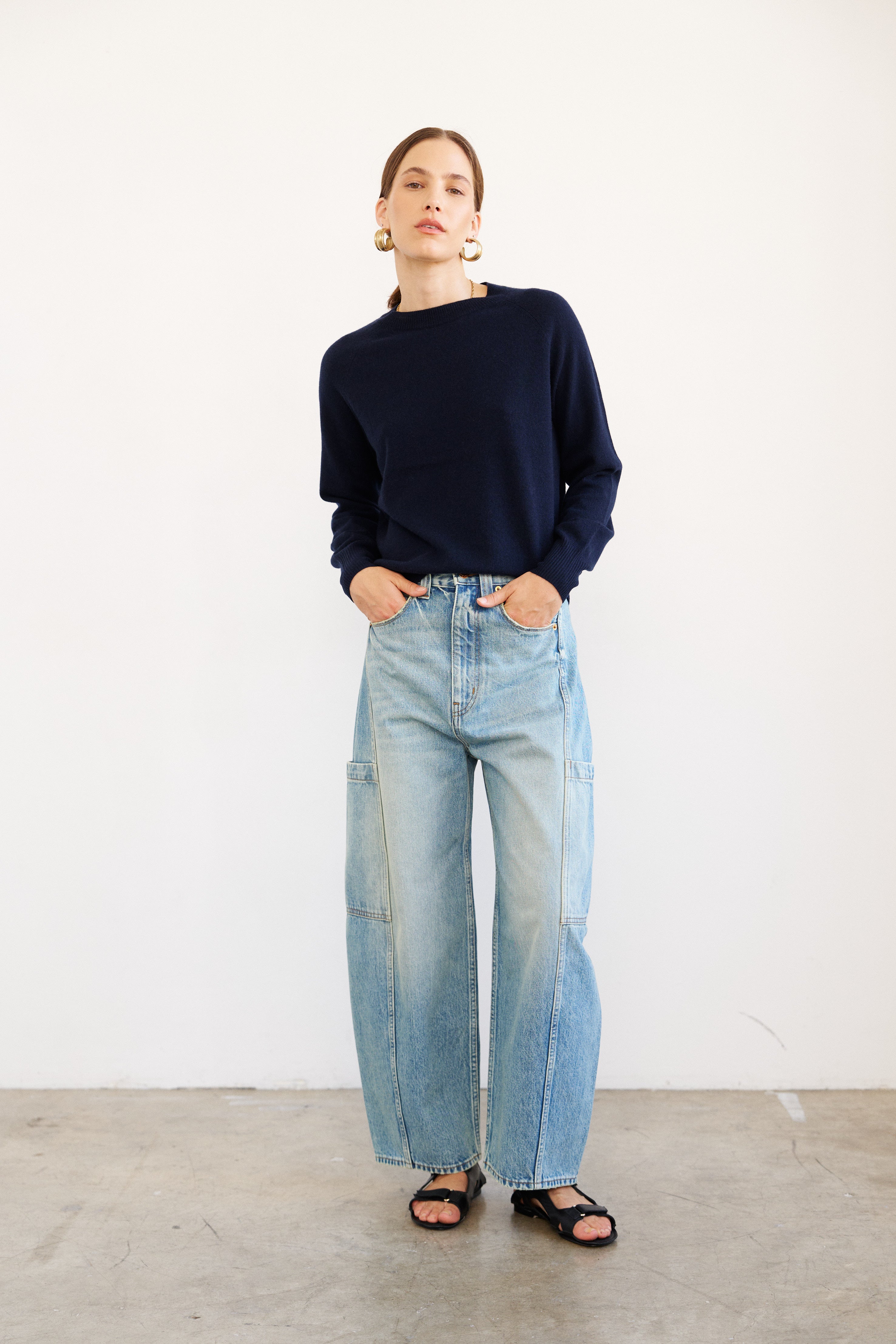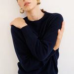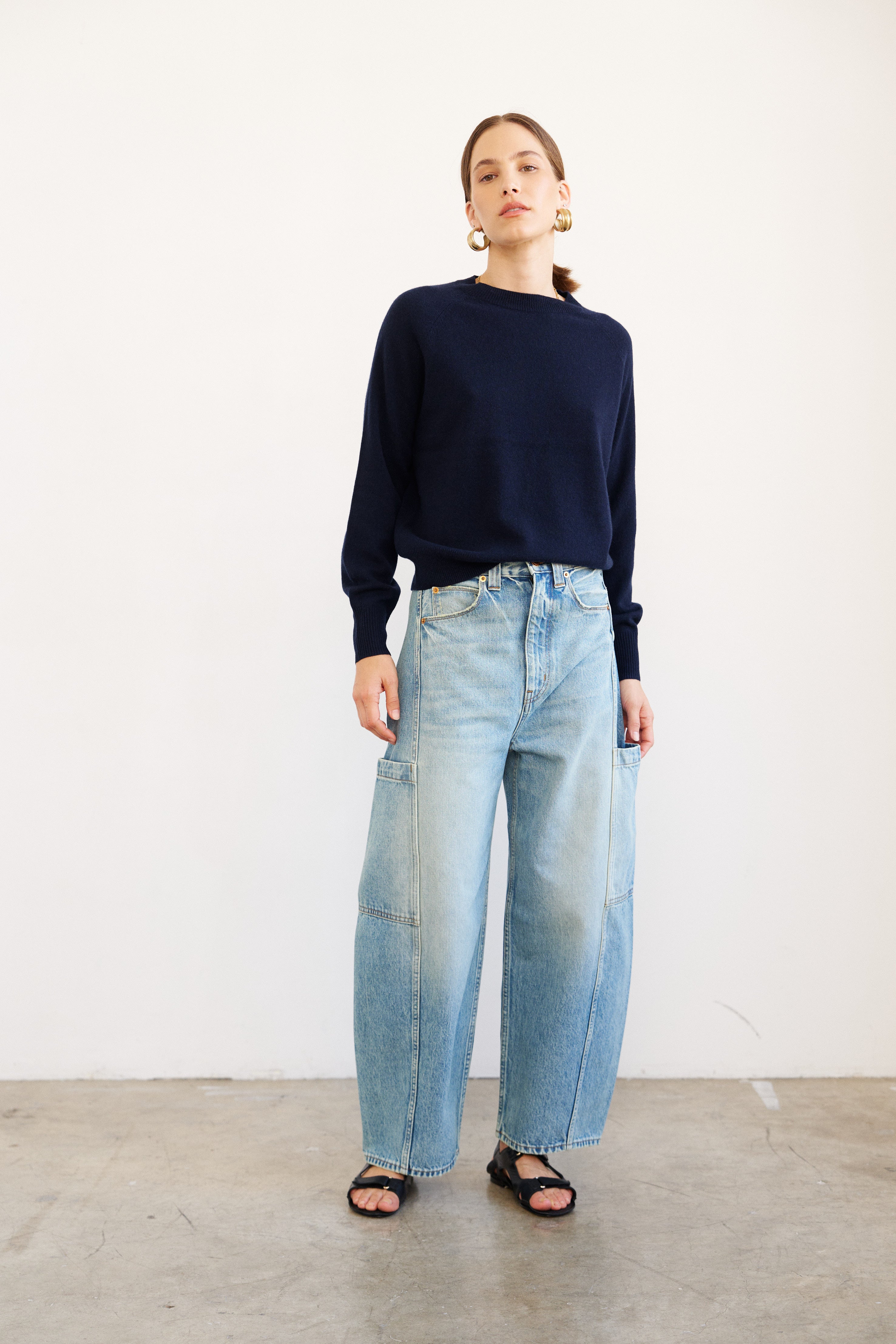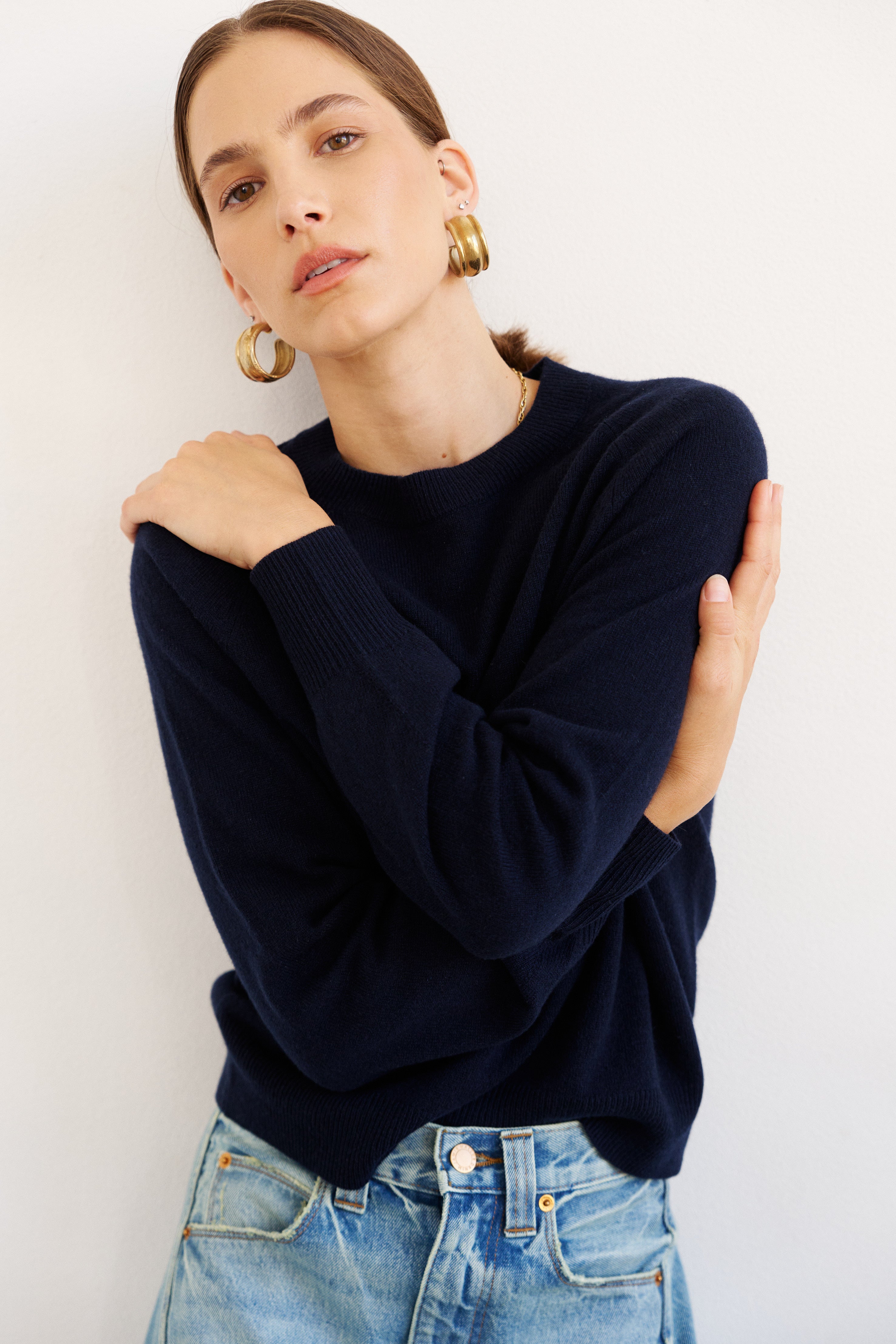 An ever classic, a perfect crew neck sweater with an easy, everyday fit. Raglan seam. Knit in tee shirt weight 100% cashmere.