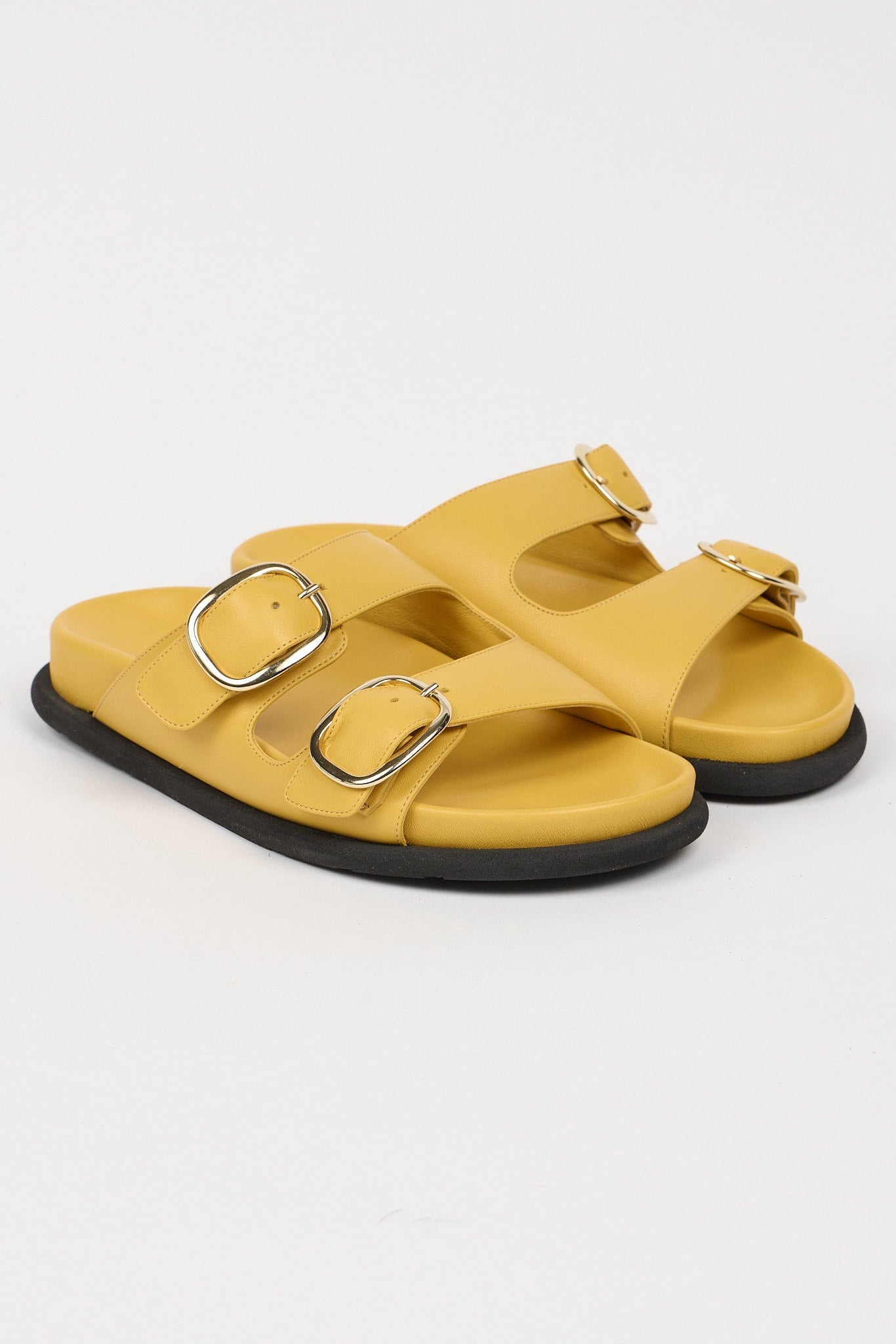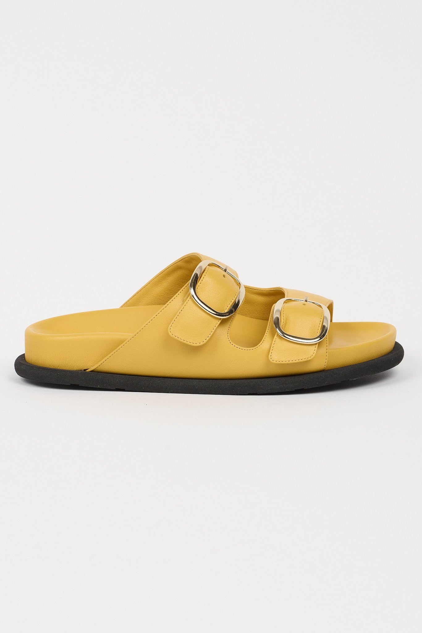 A classic! An Italian Nappa molded footbed offers light arch support and wide width perfection. An extended rubber bumper sole wraps around the footbed contrasting bold beautiful color. The sole inspired by bumper cars, thus the name. A soft slide staple.