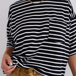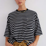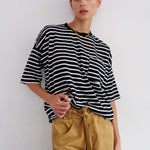 The Boxy Tee in Black White Stripe