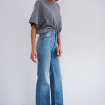 The vintage inspired wash has an authentic indigo cast, a rich and worn medium blue with whiskers, sanding and fading.