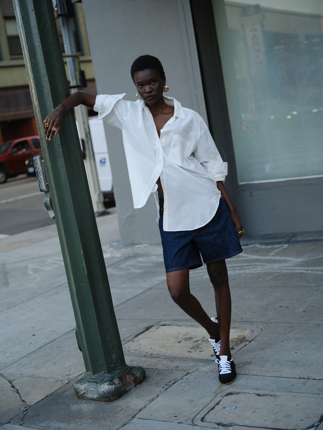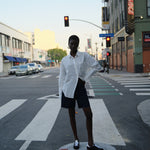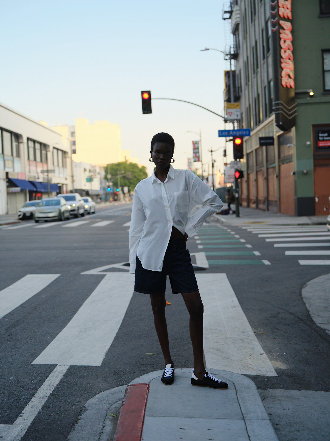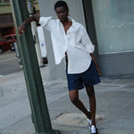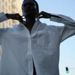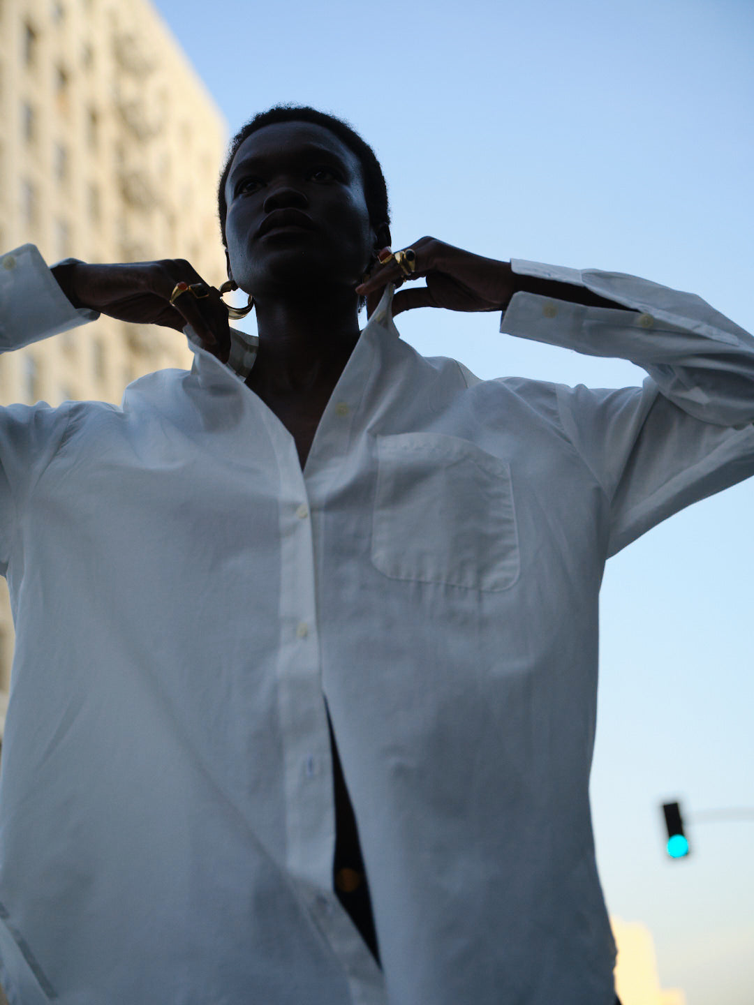 A relaxed fit and expertly cut shirt that exudes beautiful drape. Fabric that expresses ease and structure. A perfectly placed button at the chest allows for a deep plunging neckline. Tailored in Silk Cotton.