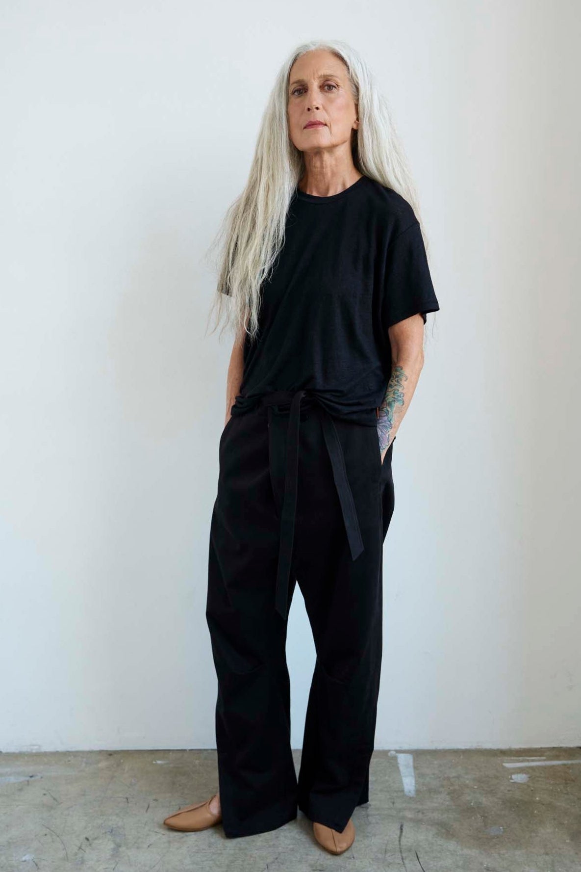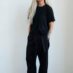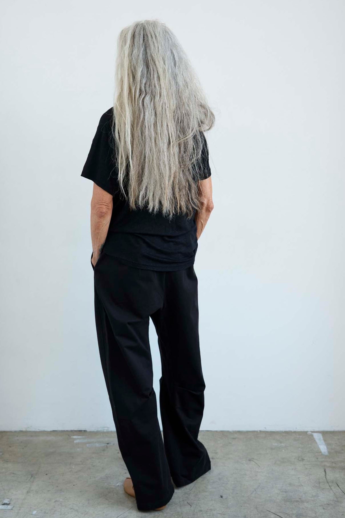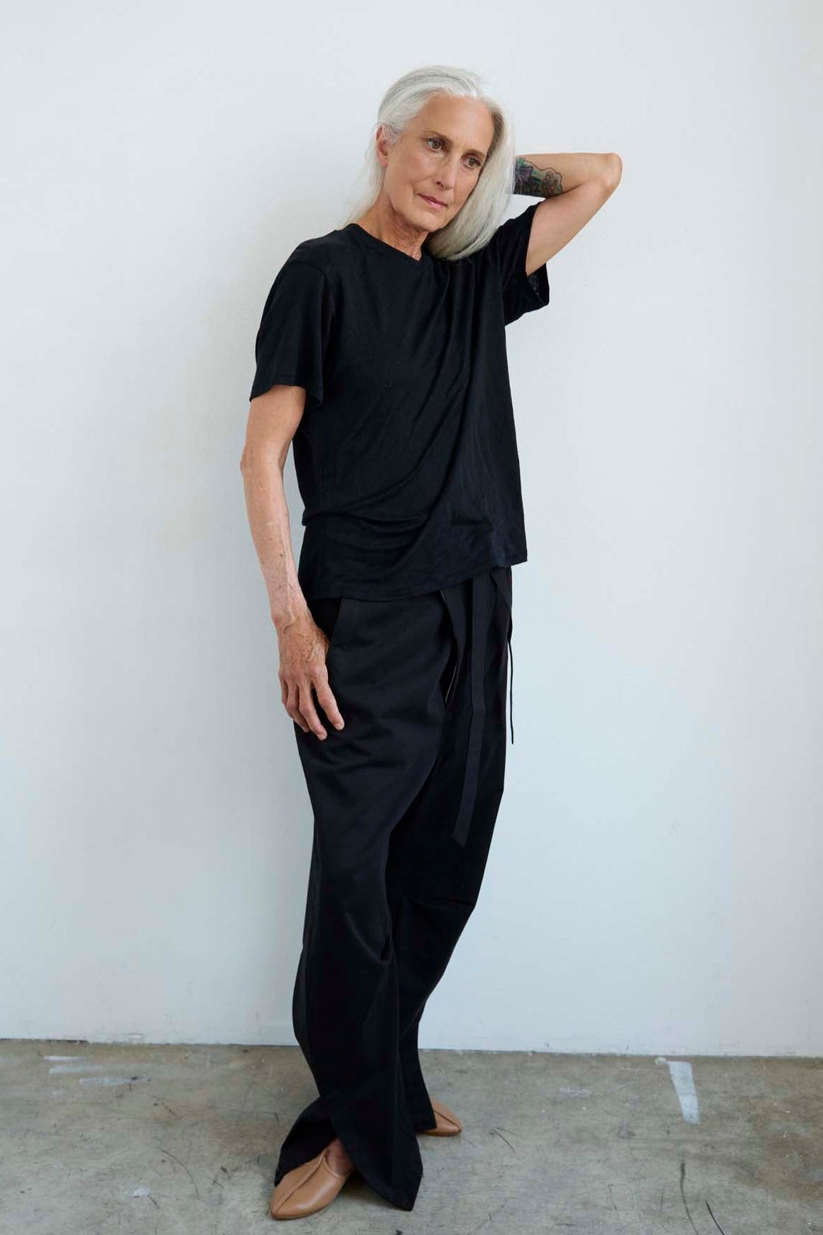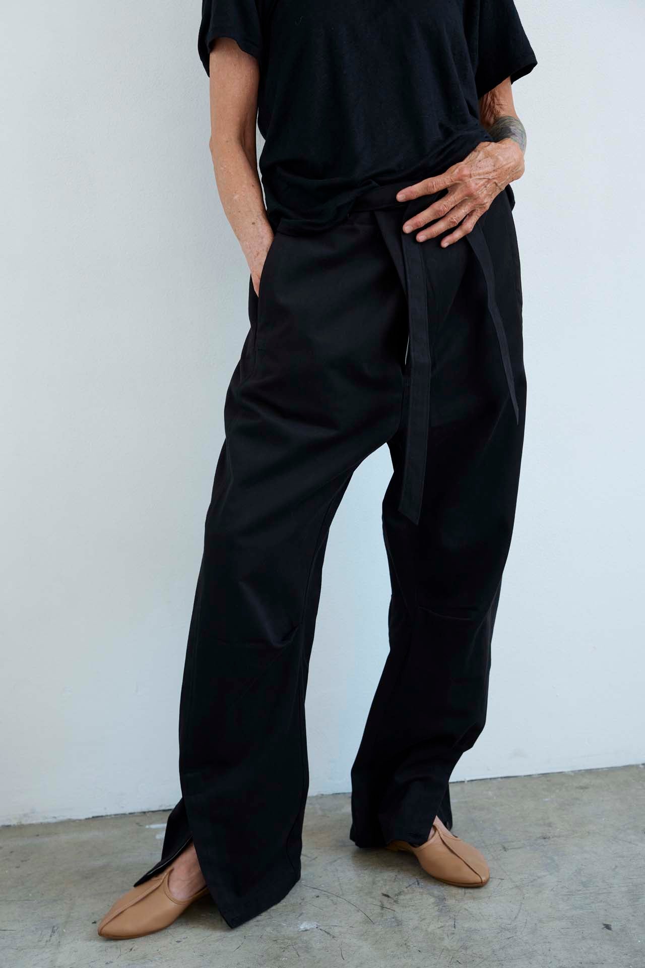 A pant that is the workhorse of COOL and EASY. A pant that has multiple lives to live, 3 ways to wear her. A true cost per wear performer because she has a multiplier x 3. A silhouette for individuality. Tailored in 100% Japanese Brushed Cotton, heavy enough to hold structure but soft “like butter”.