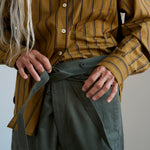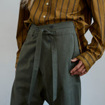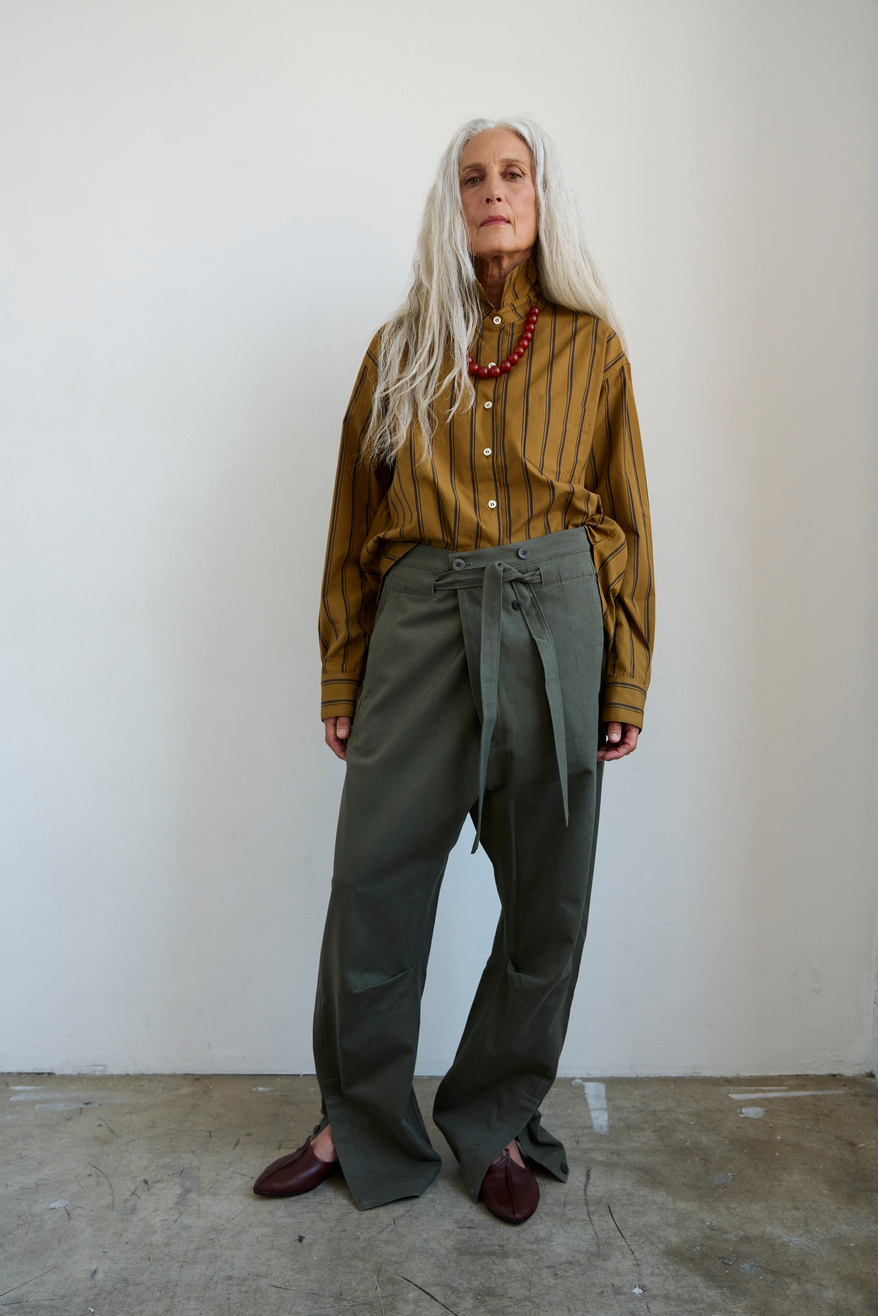 A pant that is the workhorse of COOL and EASY. A pant that has multiple lives to live, 3 ways to wear her. A true cost per wear performer because she has a multiplier x 3. A silhouette for individuality. Tailored in 100% Japanese Brushed Cotton, heavy enough to hold structure but soft “like butter”.