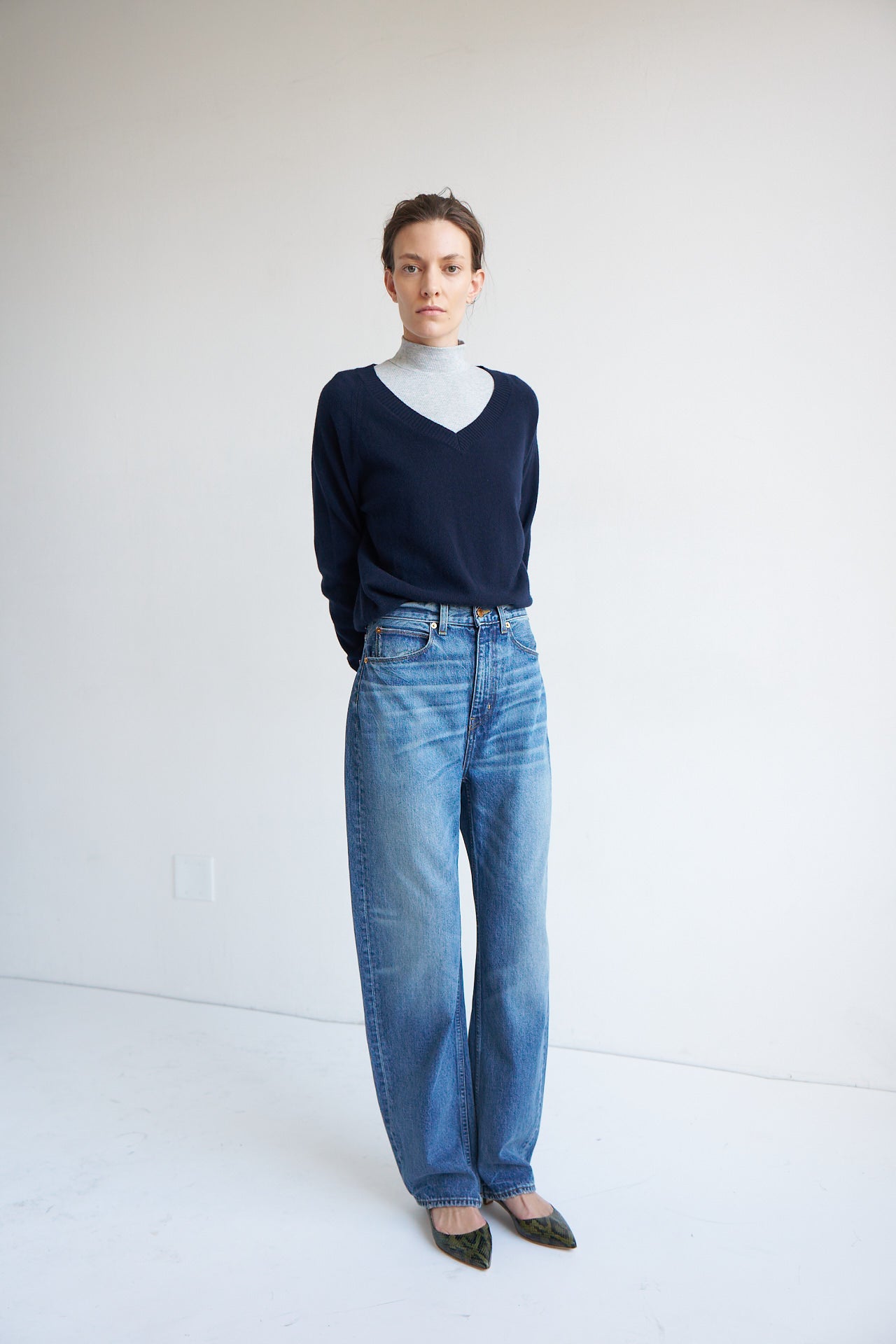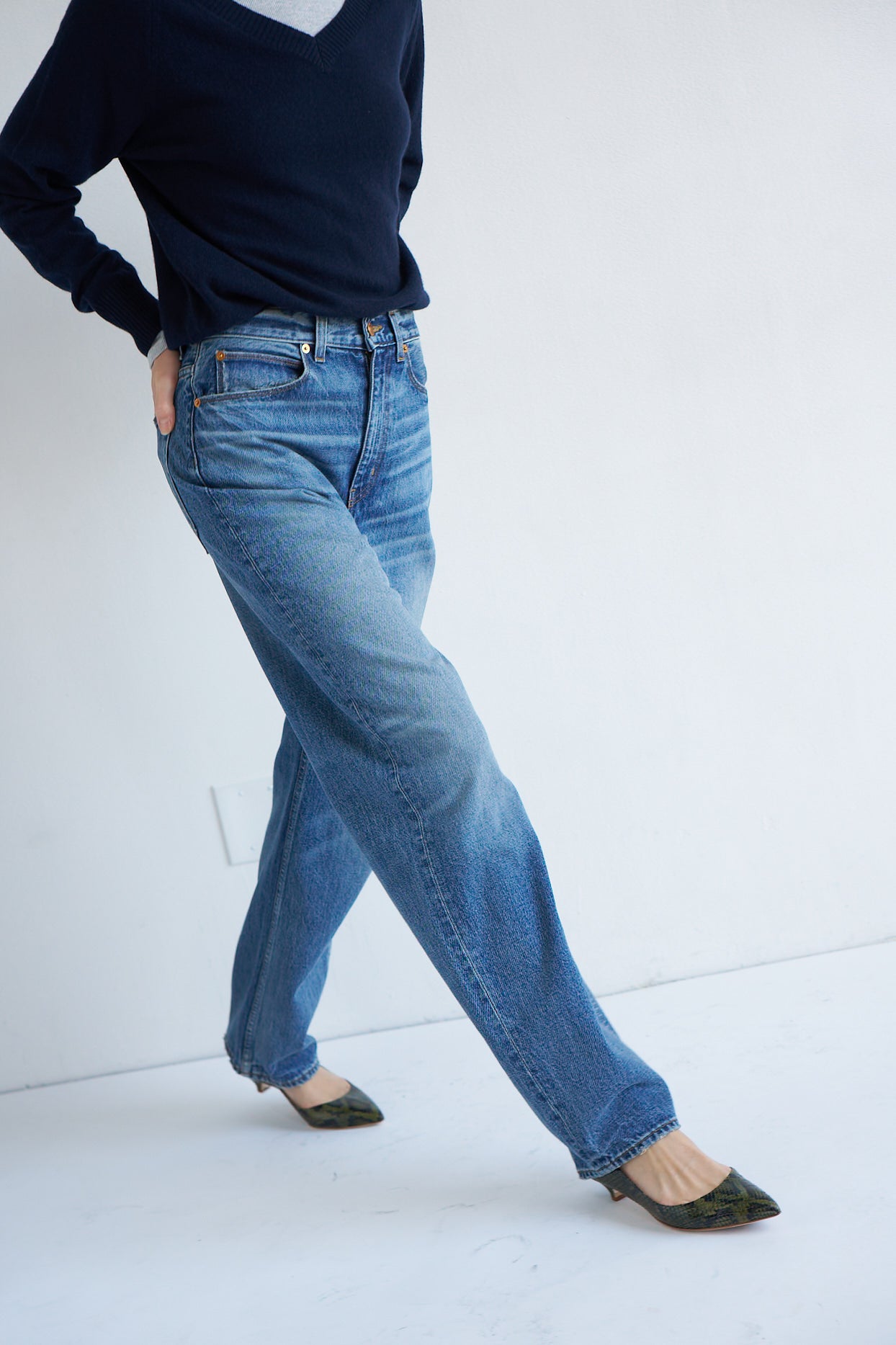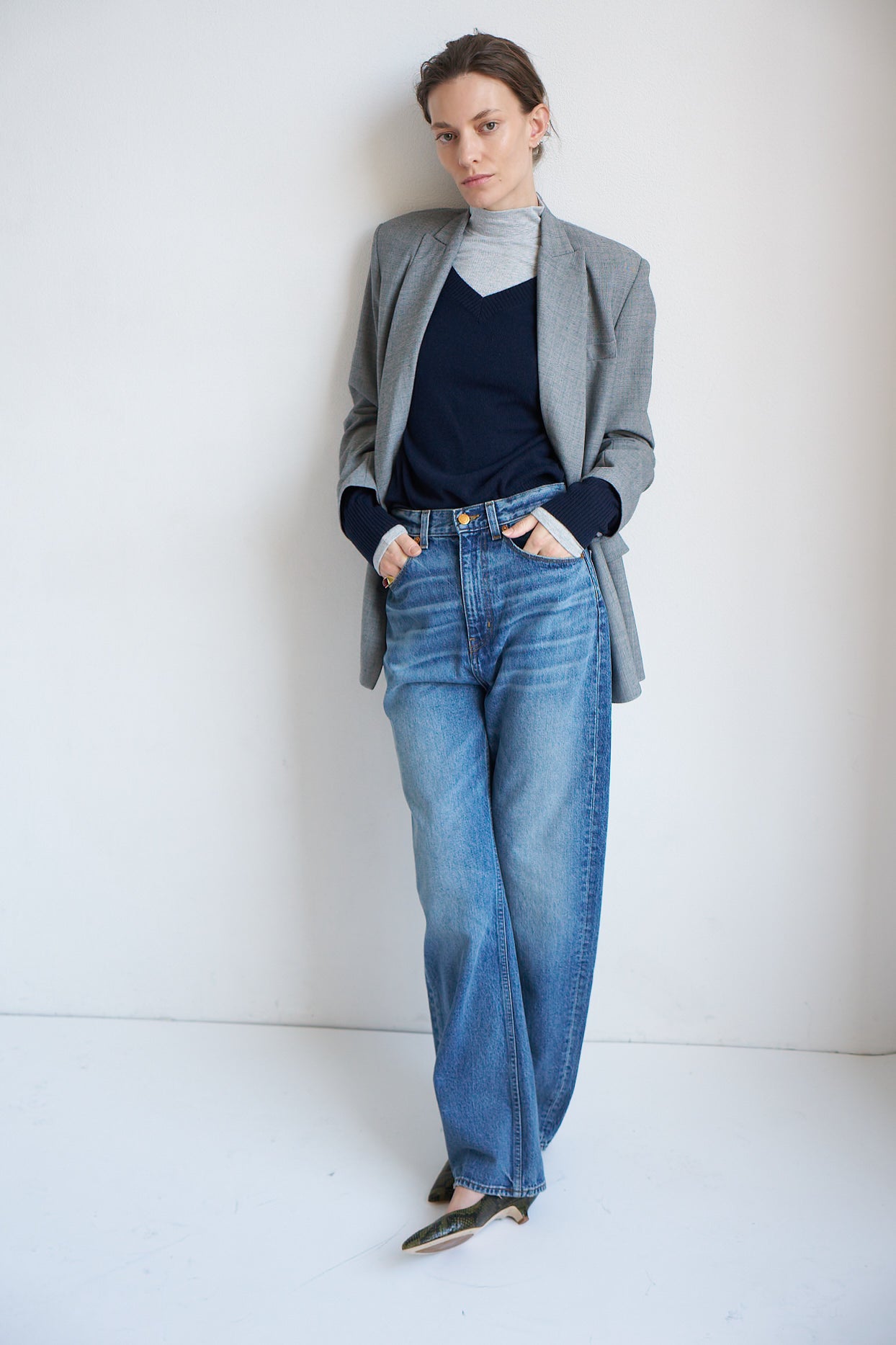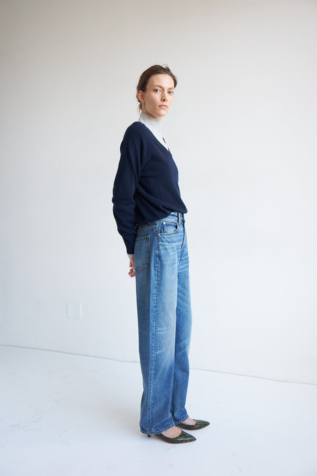 A high waist, tapered cut jean with equal parts polish meets cool & forward meets five pocket. Premium vintage inspired wash. Made in Los Angeles.