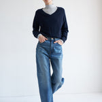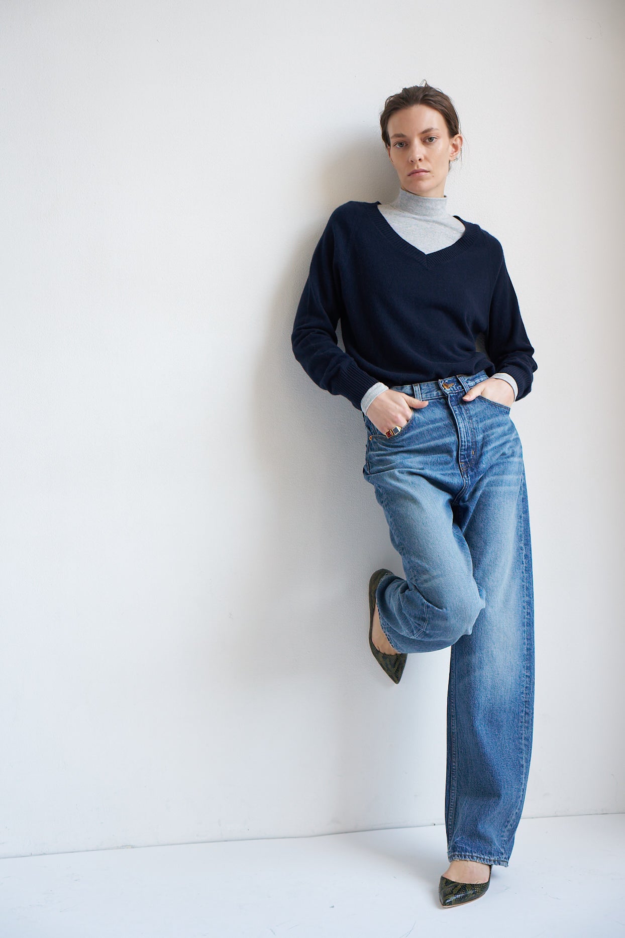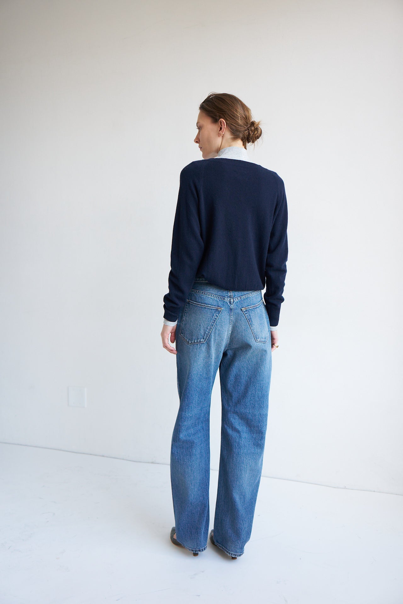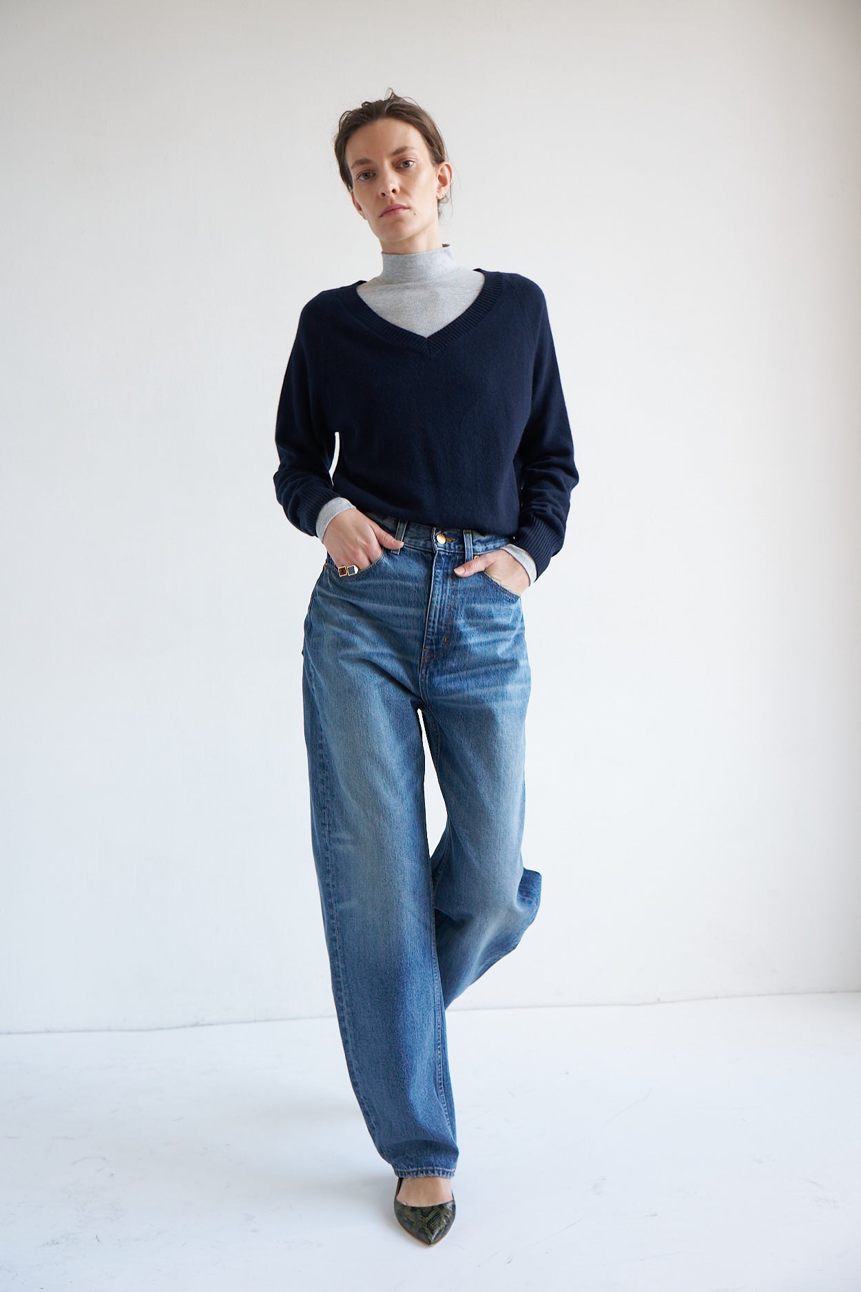 A high waist, tapered cut jean with equal parts polish meets cool & forward meets five pocket. Premium vintage inspired wash. Made in Los Angeles.