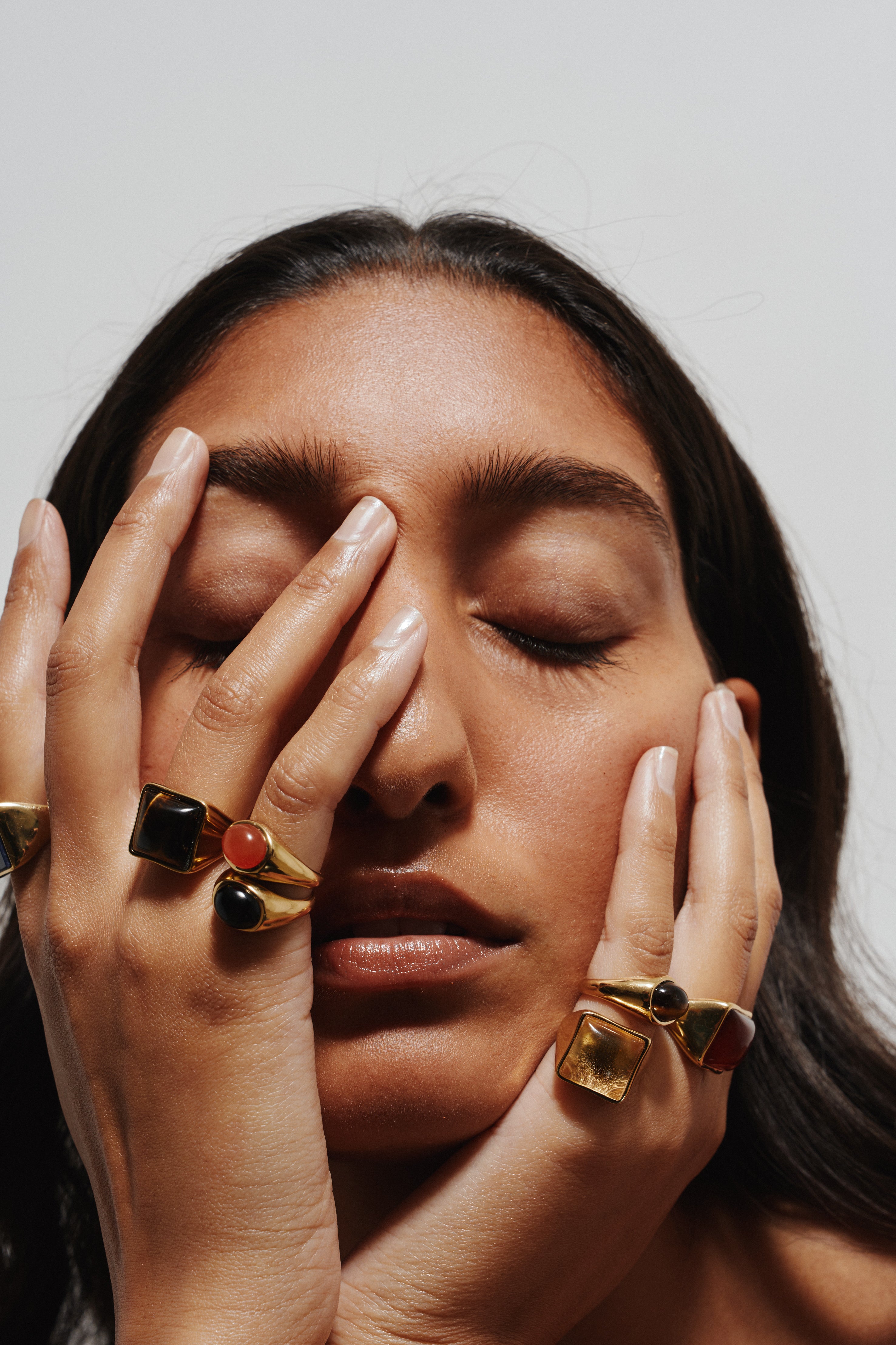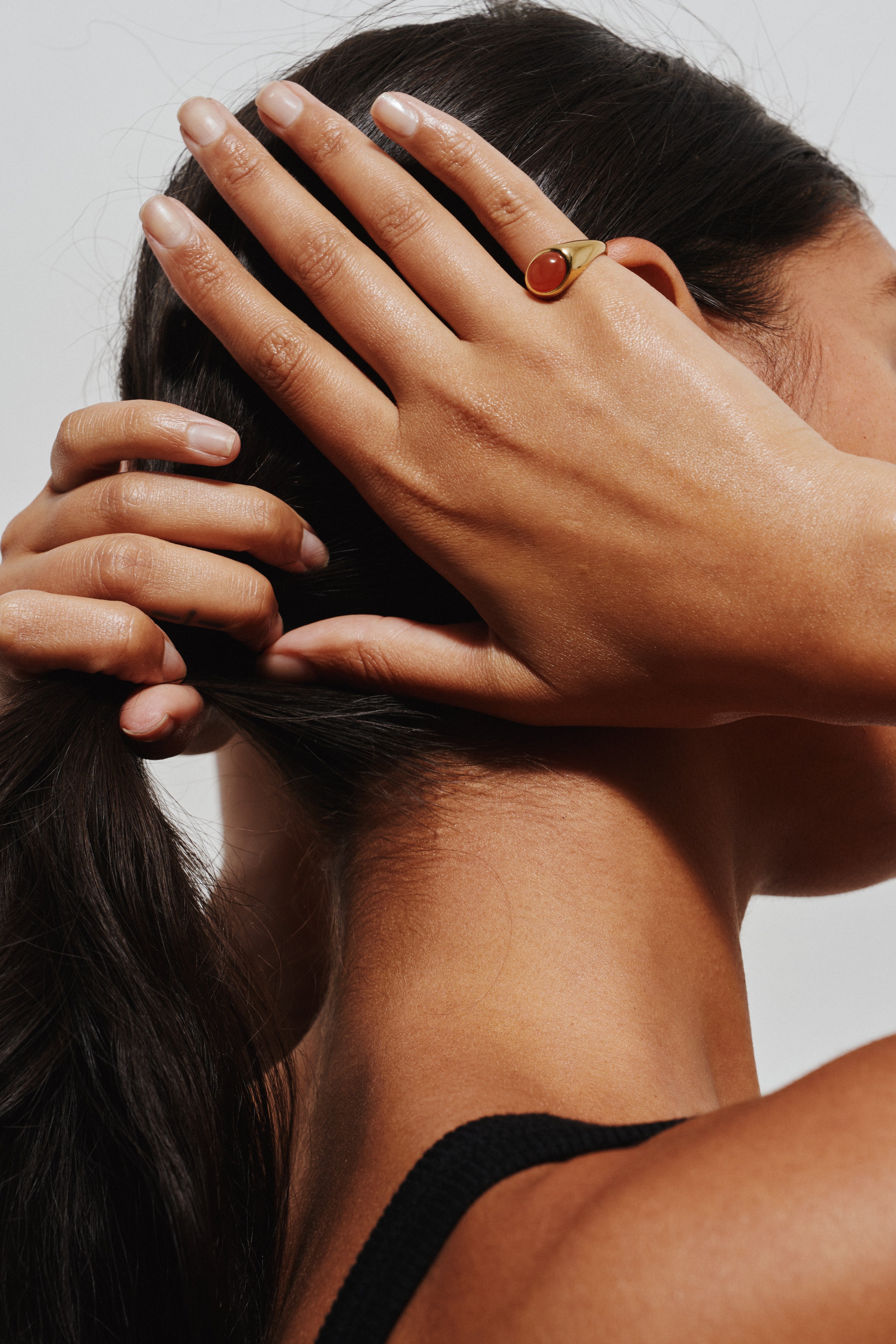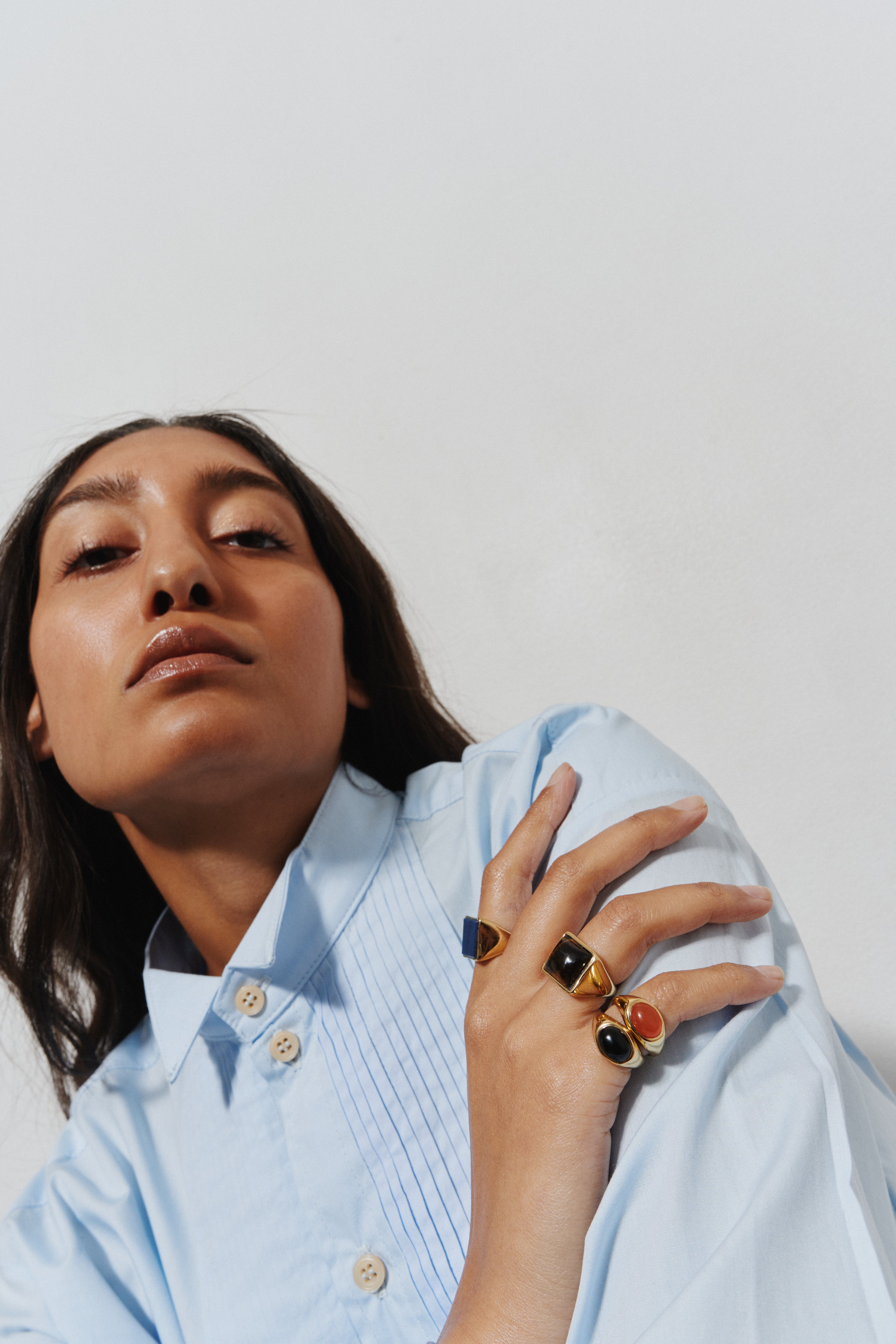 For plated jewelry, we suggest storing them in your soft Jamie Haller pouch. It is also advised to store in them a cool dry place. Avoid wearing your jewelry in the shower. Remove when exercising or other strenuous activity. Avoid harsh chemicals such as cleaning products, aerosols and hair sprays. It could damage the plating. We recommend cleaning your jewelry with a soft cloth. Avoid polishing the ring with hard polishing cloths, they will strip the luster from the piece. I believe that natural patina that will occur with wear will deepen the color of the finish and is part of the beauty of the rings. Jamie Haller is not responsible for the maintenance or improper care of your jewelry.