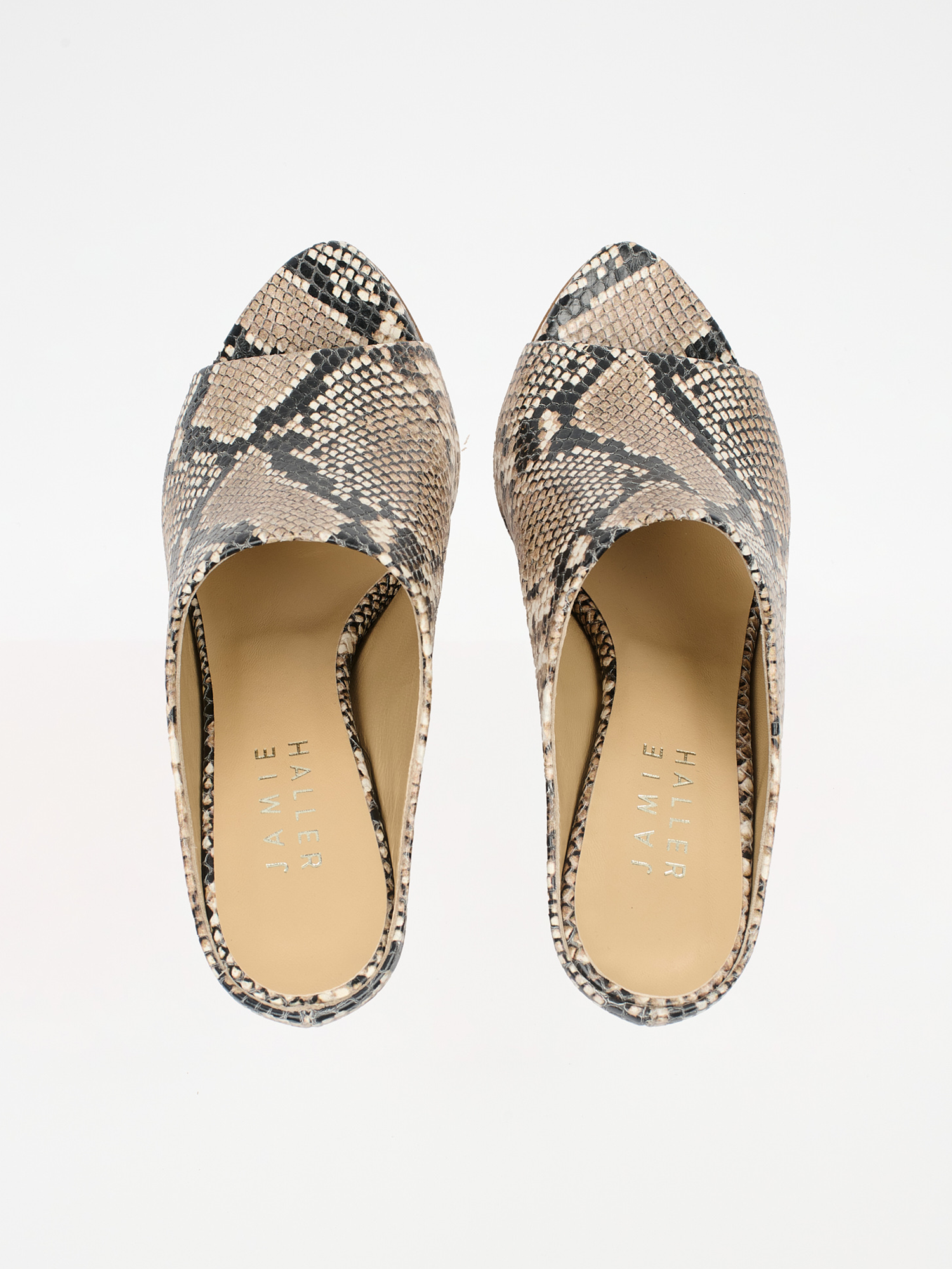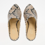 Italian Python embossed calfskin. Italian soft lamb nappa lining with extra cushion. An 80mm heel.