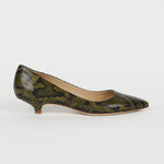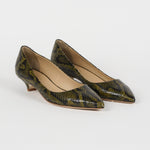 A classic kitten in a working girl shape. A soft and comfortable pump with a beautiful shaped pointed toe. Extra soft and comfortable. Italian embossed calfskin. Leather sole with anti slip rubber injection.