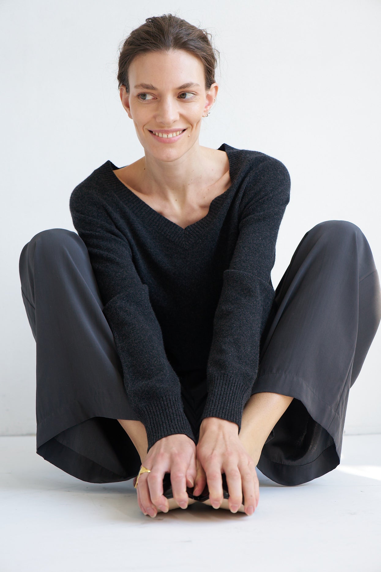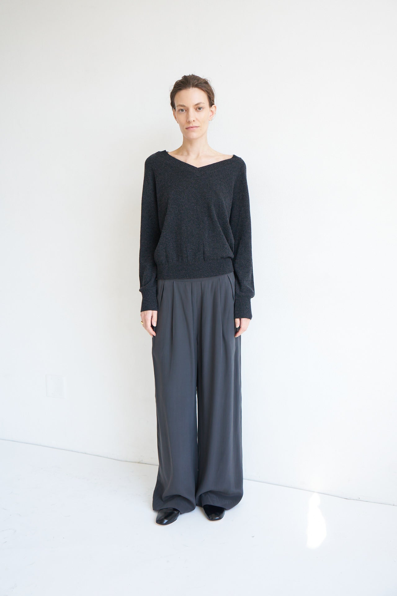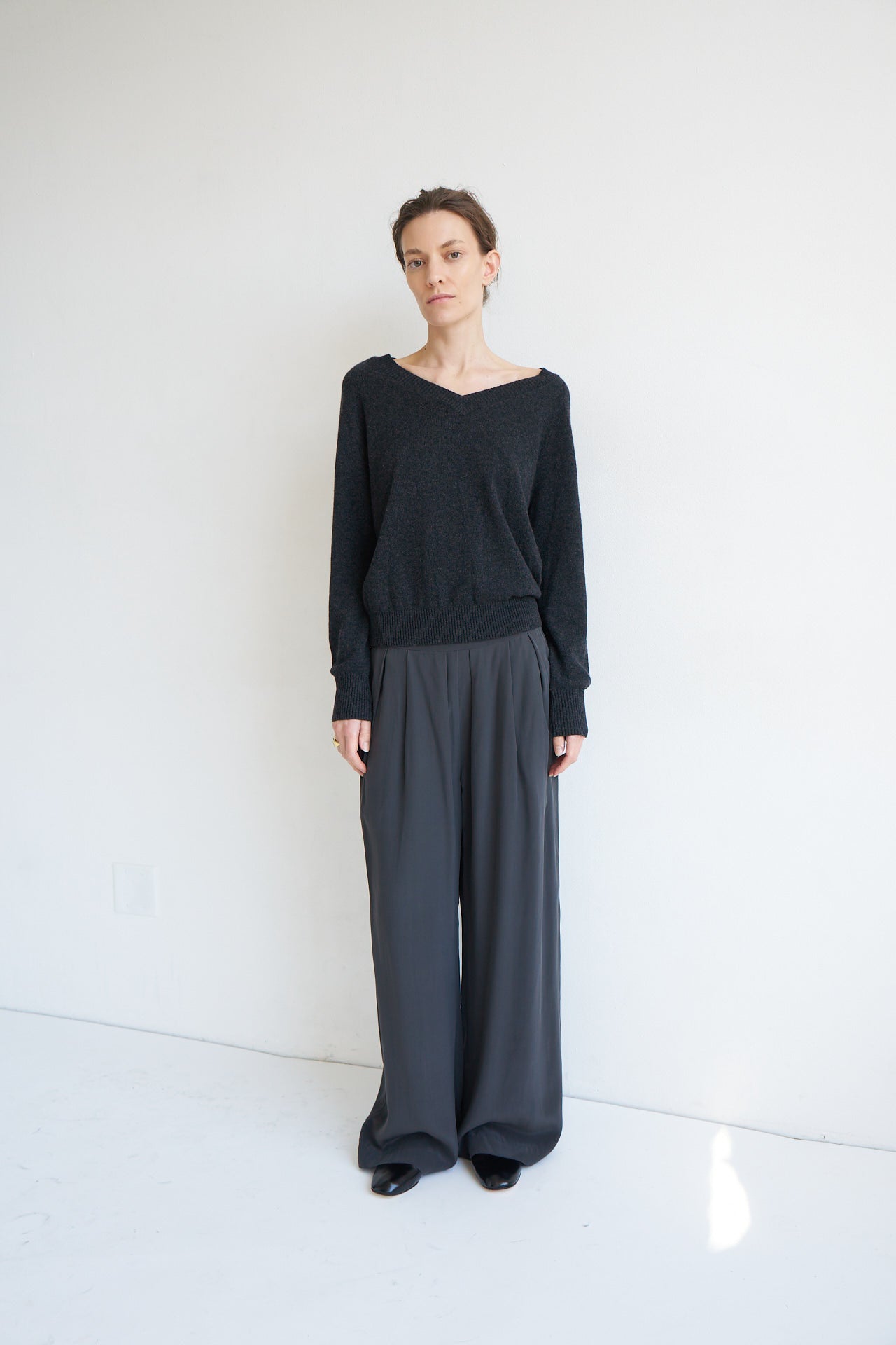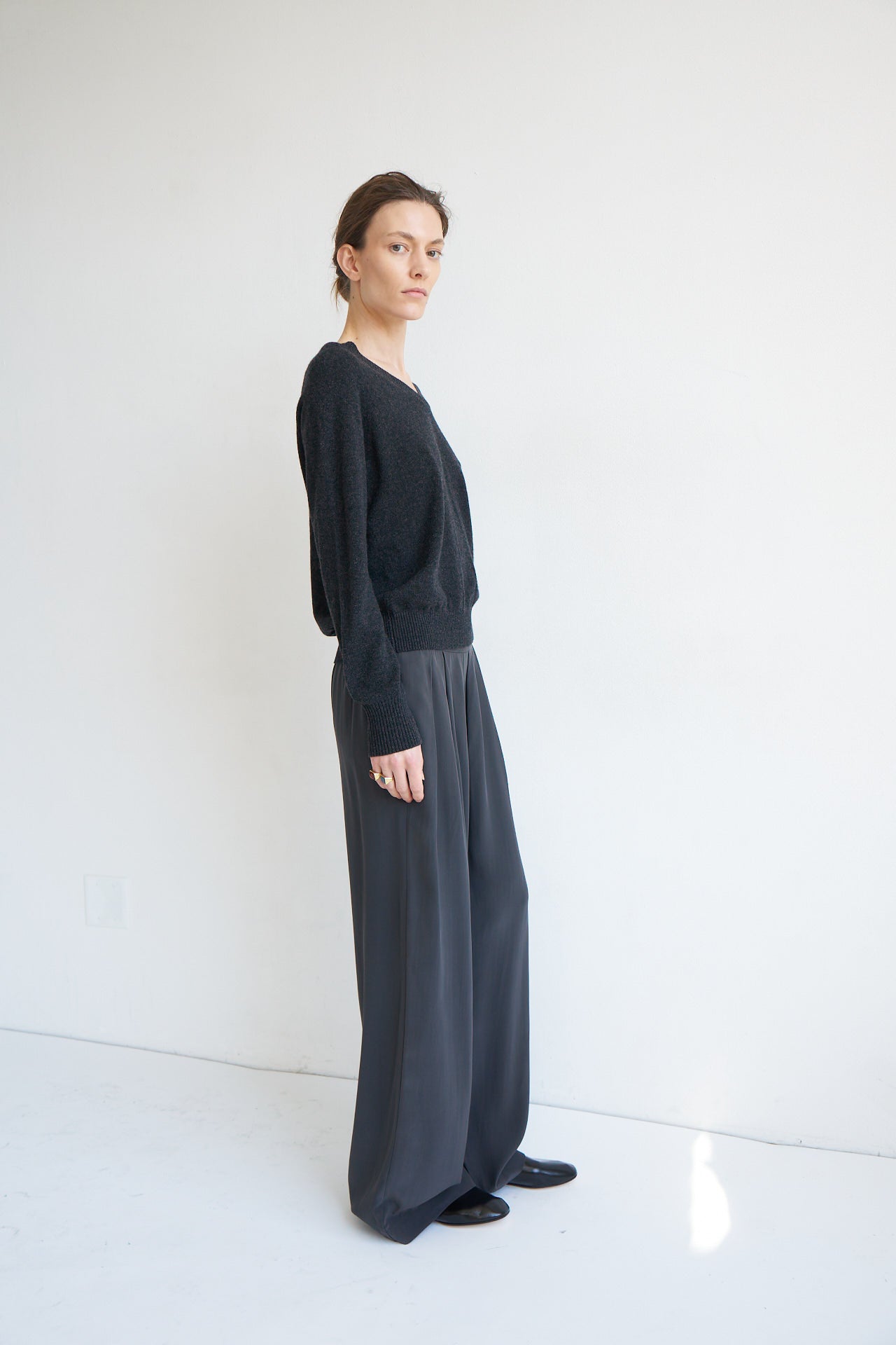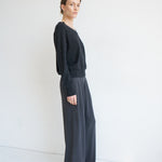 Soft sand washed silk charmeuse tailored into an elastic waist lounge pant, full of ease and luxury in a loose fitting straight leg.