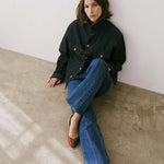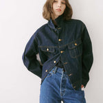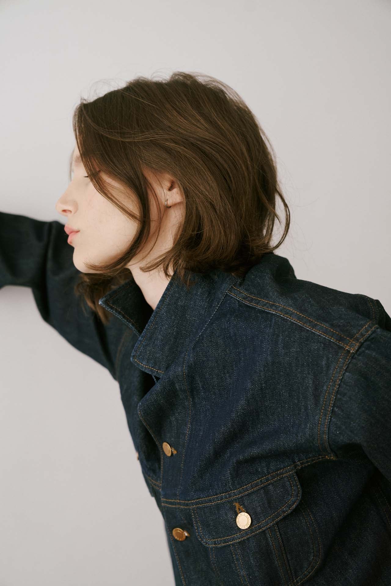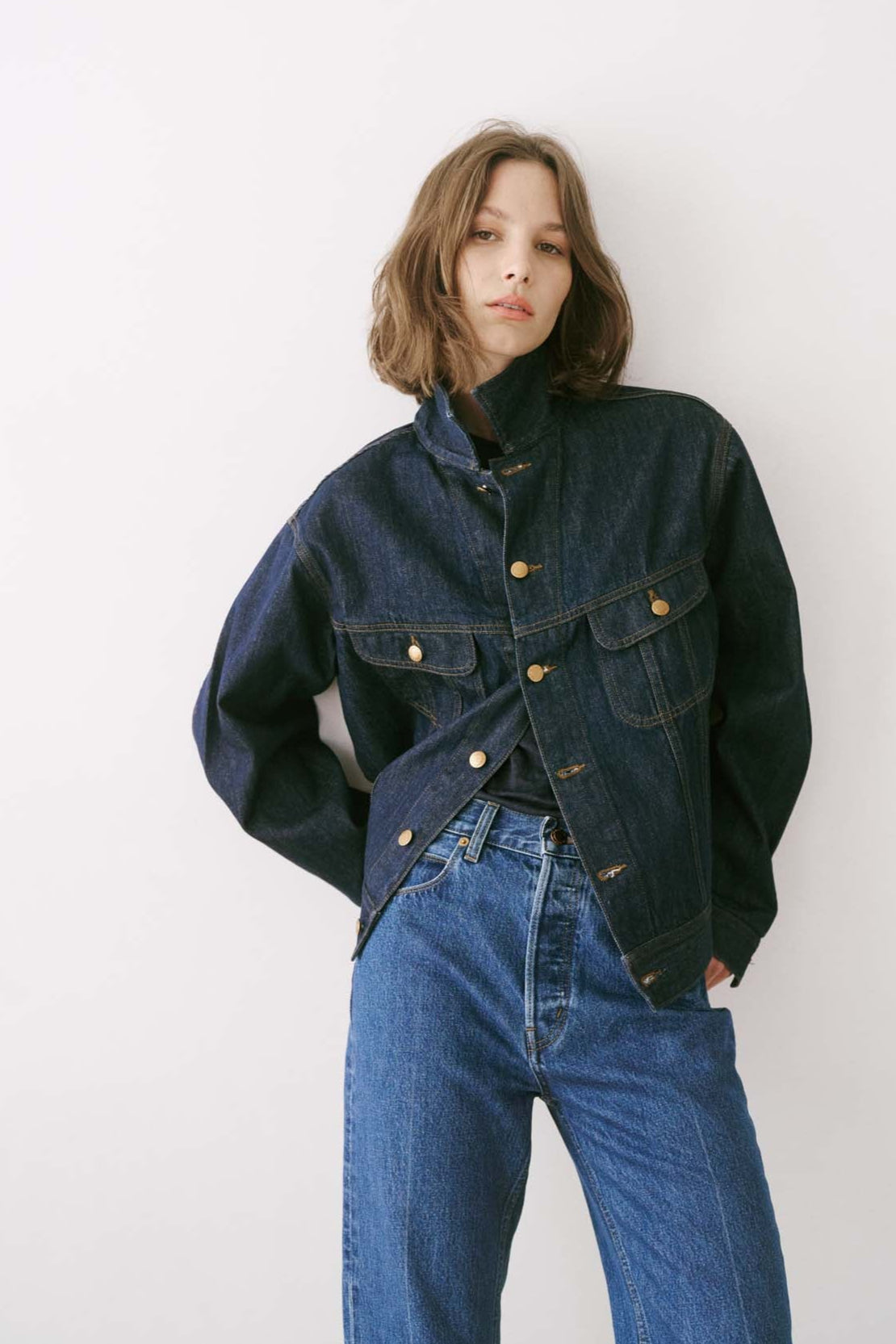 Inspired by my favorite beat and worn mens trucker, the one I LOVE. The kind that did it's time. A masc cut, with a cultivated shape. Effortless and understated is built into the shape. An advanced take on an iconic shape that will forever serve as your base. Washed to raw perfection. Italian 100% Cotton Indigo denim.