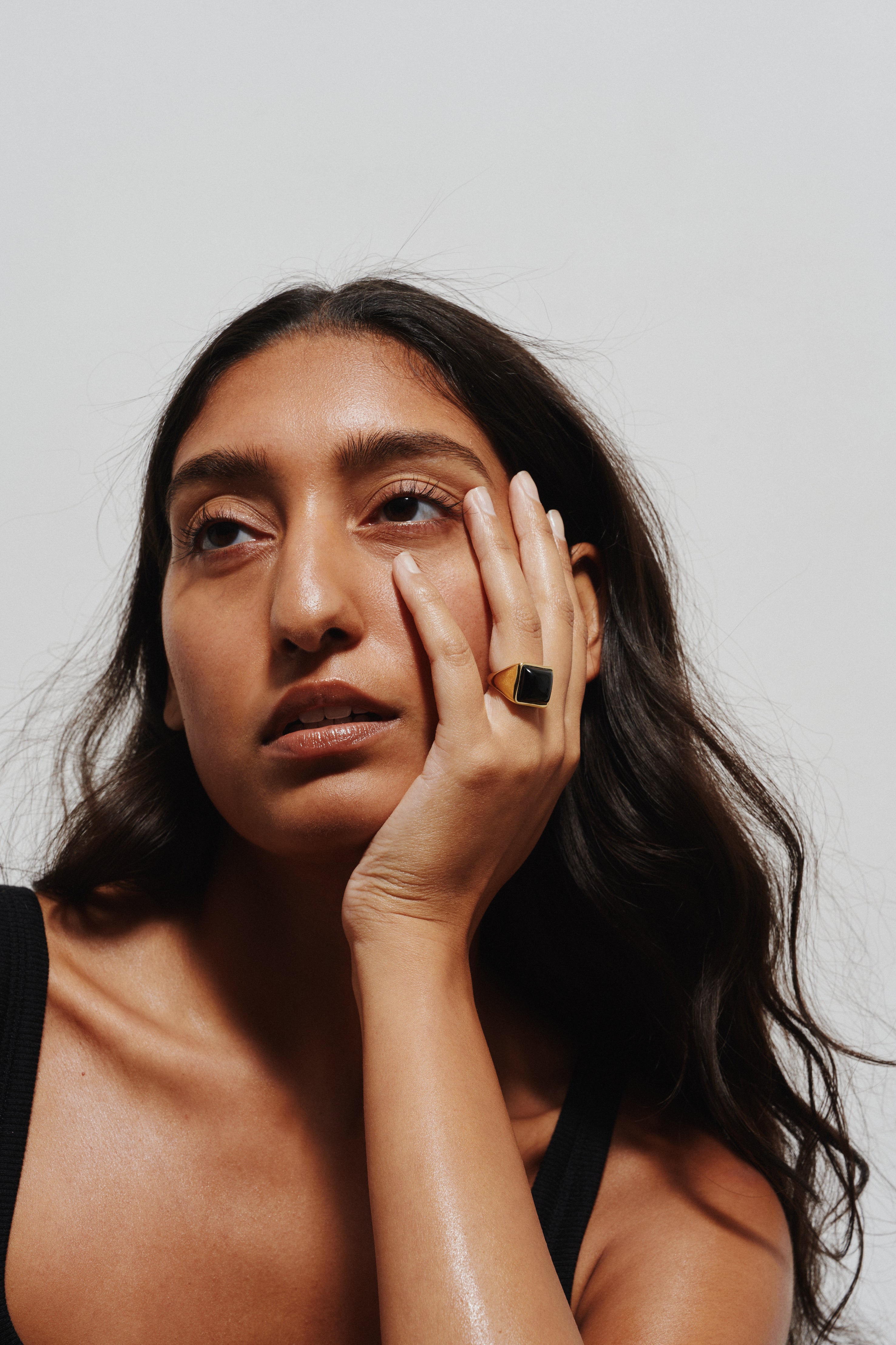 Introducing the Lucques Square Signet Ring in Onyx. Inspired by vintage men's signet rings, the square-cut cabochon stone is semi-precious. The natural stone is custom hand-cut and secured in a bezel setting. The ring has been designed to feel timeworn, with soft edges, something you have worn forever.