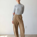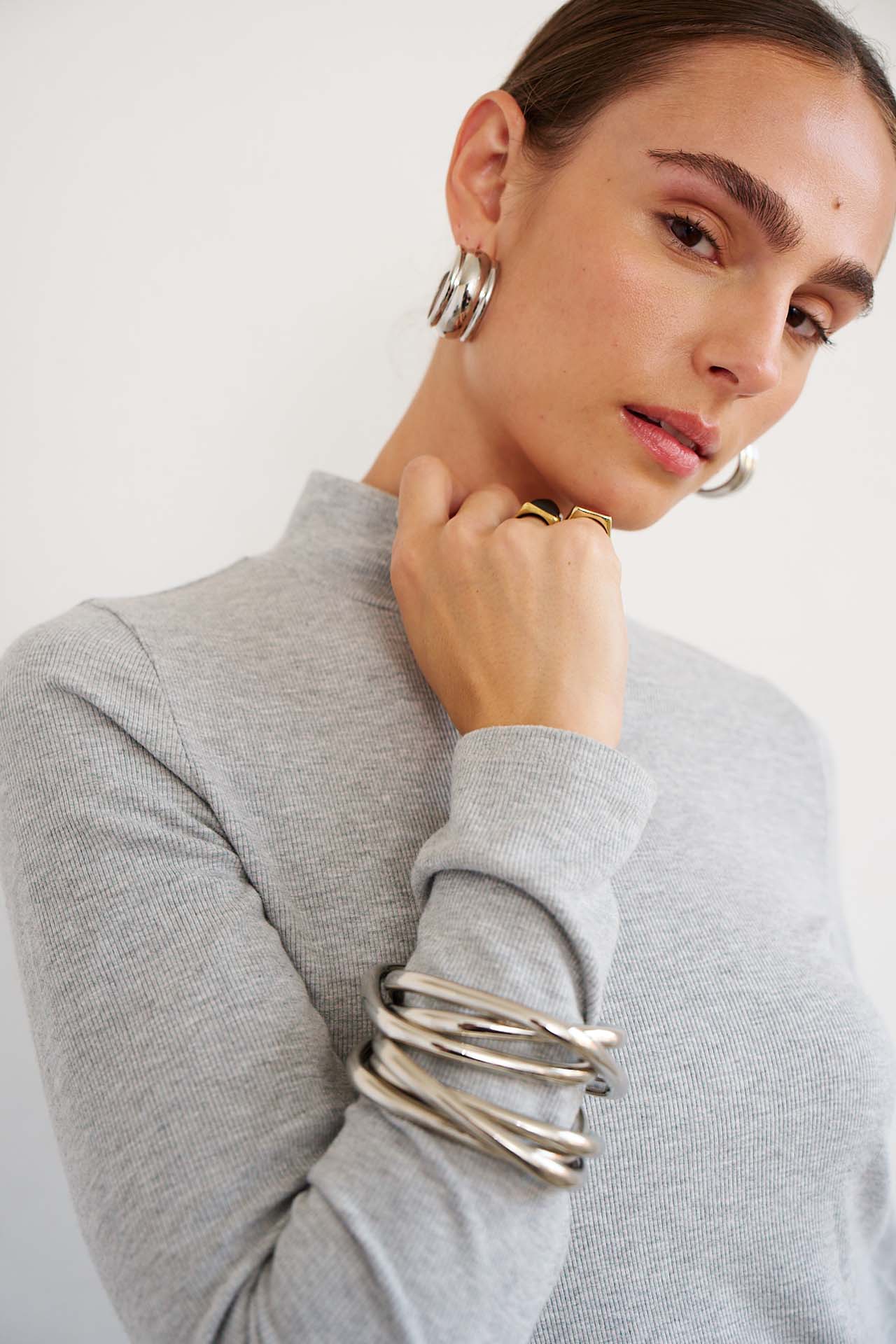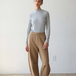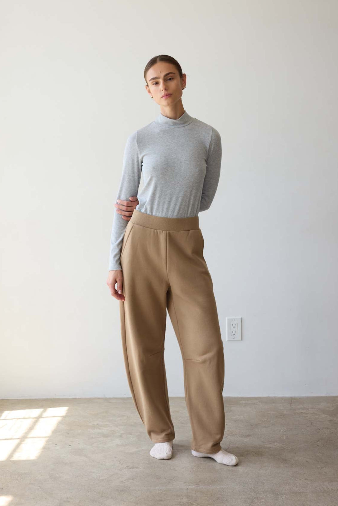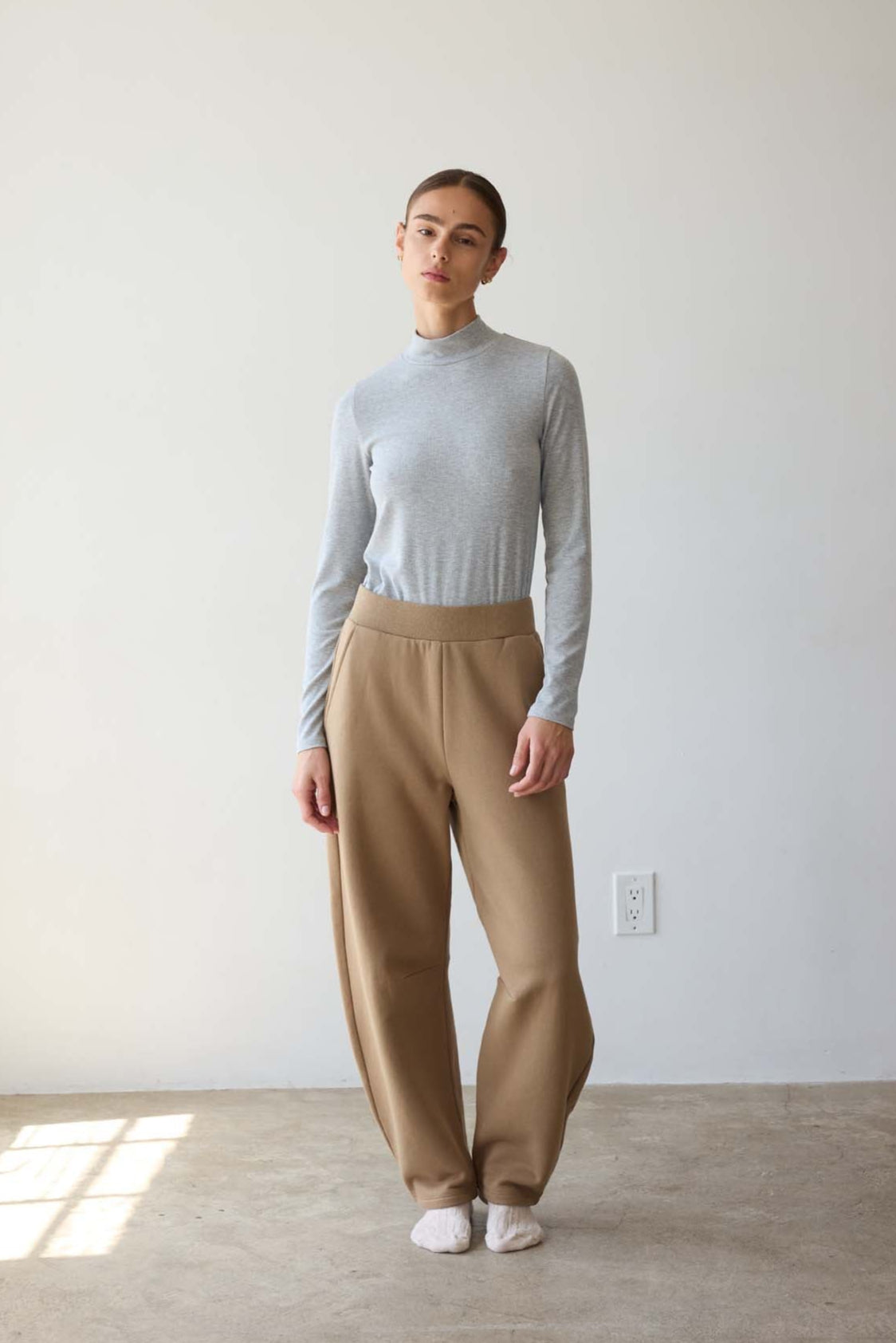 A slim fit, rib tee with a folded mock neck rib detail and long slim sleeves. With soft structure, our rib provides ease and form.