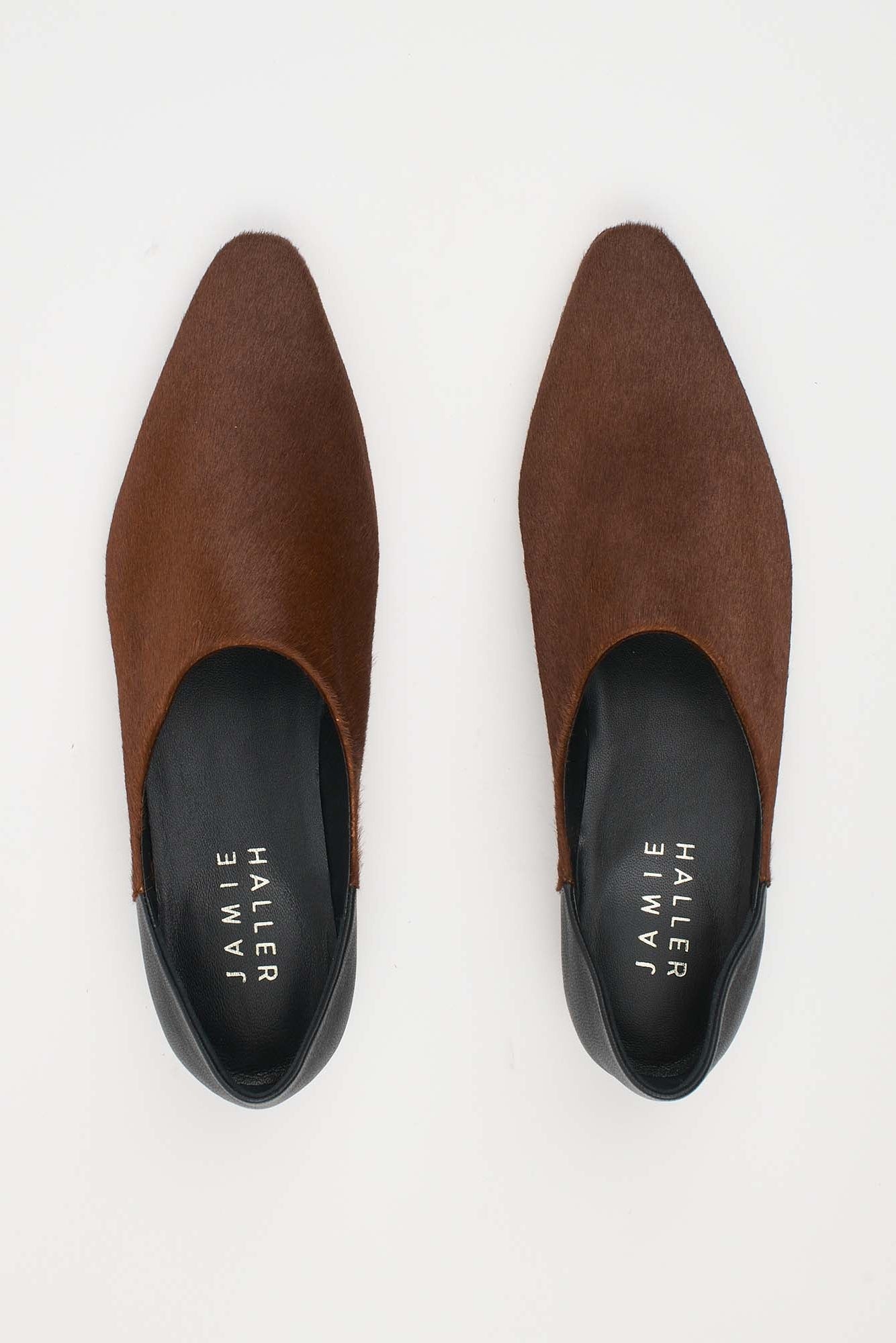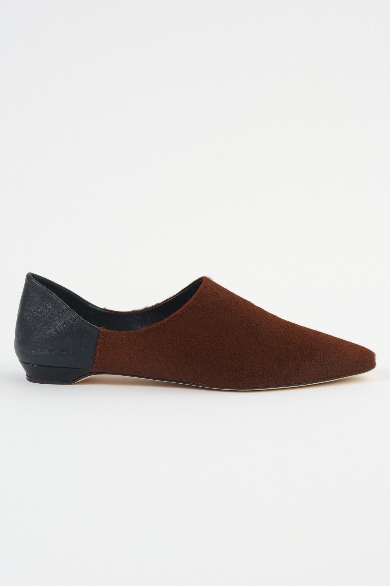 Inspired by the iconic Moroccan babouche. A slim almond pointed slipper with a step down soft heel. Soft Italian calf hair or Italian Lambskin, with leather lining.