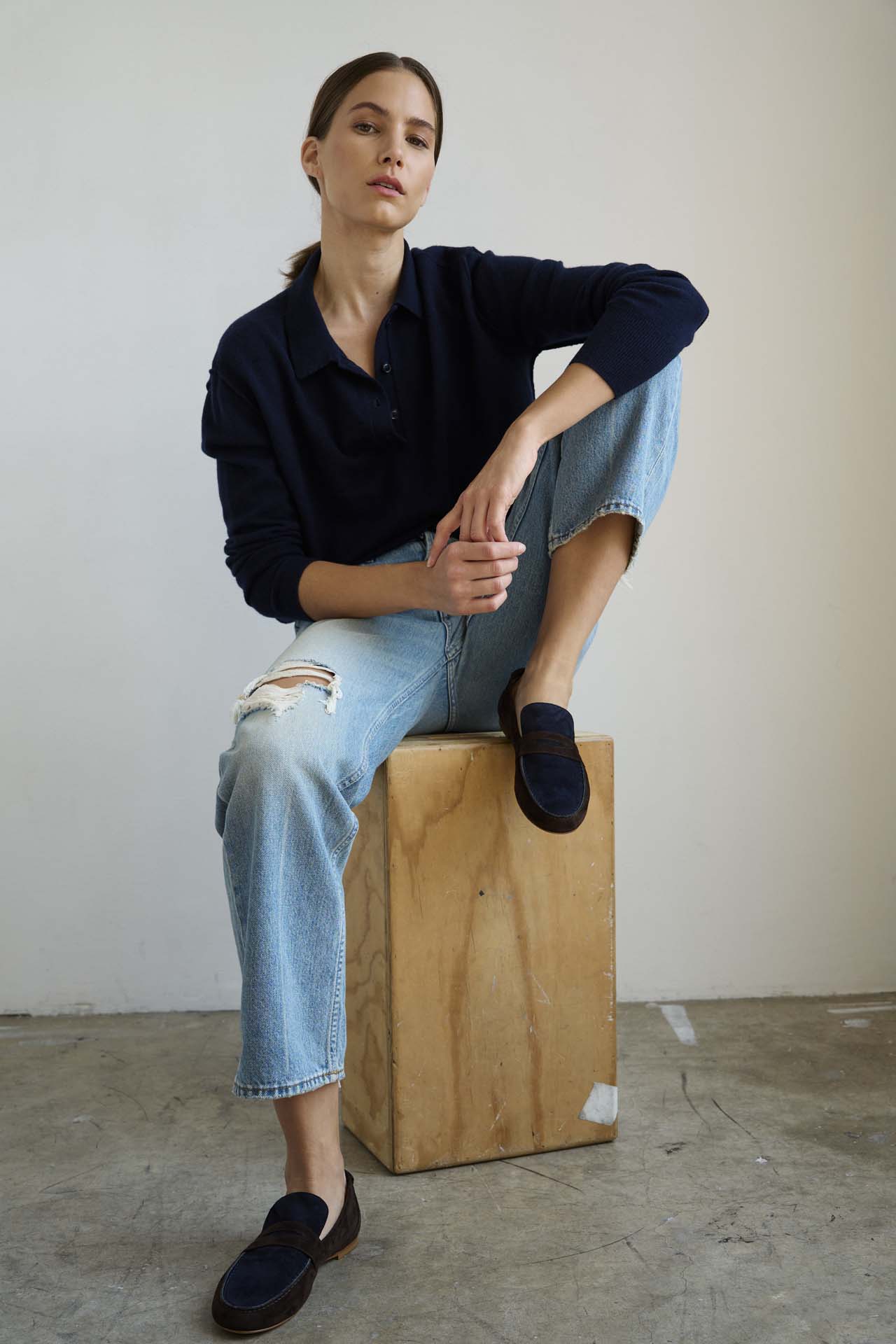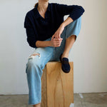 Our leather slippers and loafers are made from Italian skins. Their beauty rests in the leather’s finish and handfeel. To ensure their preservation, please wear your shoes carefully. Treat them thoughtfully. Avoid water, dirt, mud or sand. They will develop a patina over time. The leather will form to your foot and change appearance. This is part of the beauty of a more naked skin, much like an unlaquered brass or raw denim, they will become your own creation over time. Markings, discoloration from wear and from being worn will create a one of a kind appearance that will tell the story of your time.