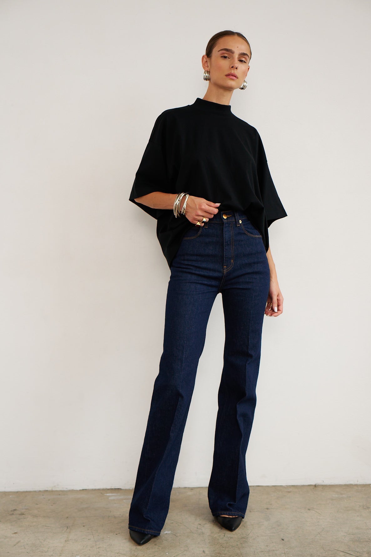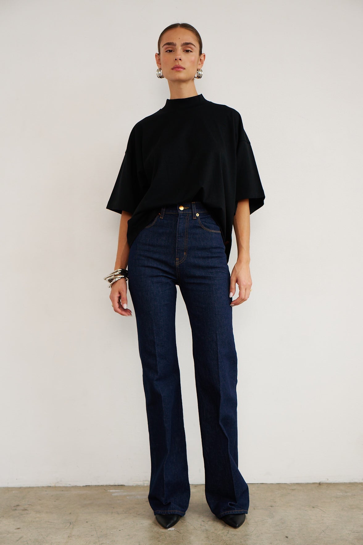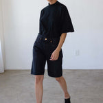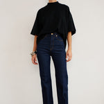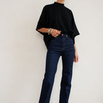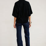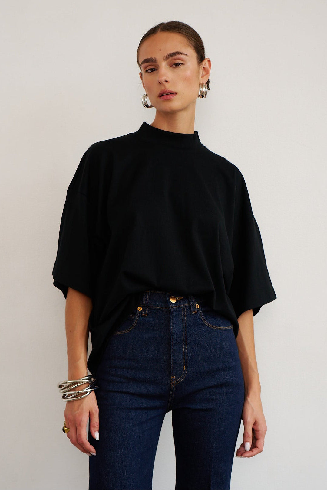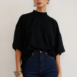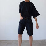 An architectural basic, with a pitched elbow length sleeve and mock neck detail.  A boxy tee of perfected Japanese jersey with weight enough to drape and yet remain casual.