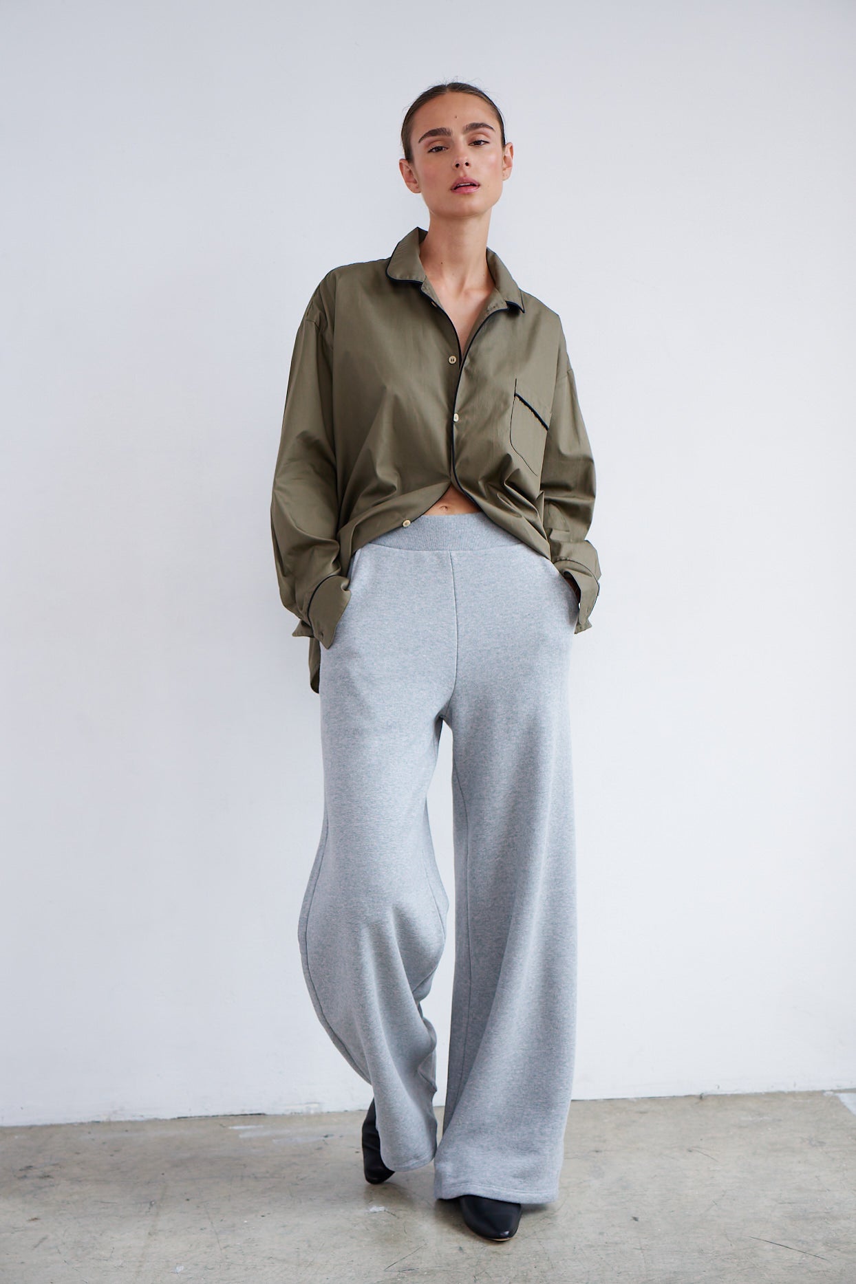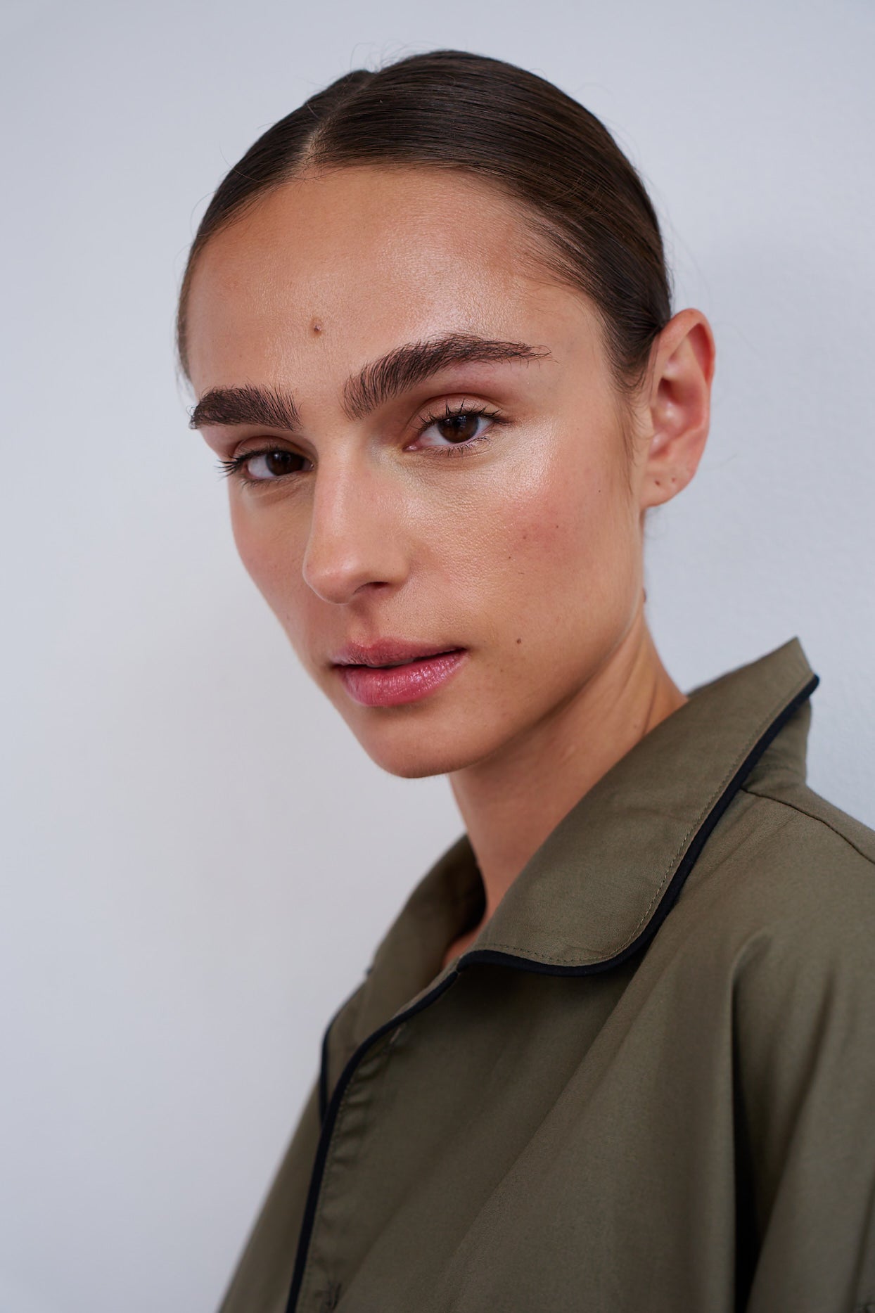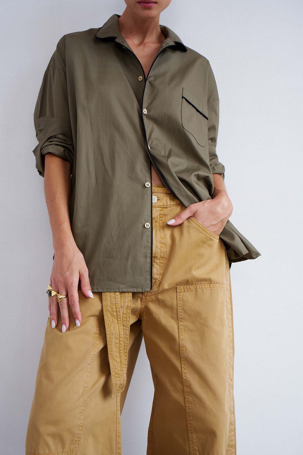 Inspired by early turn ins that turn into late mornings in men's pajamas. The idea that this traditional take on a woven shirt is cute enough to wear out of the house. Tailored in Los Angeles in Japanese soft and crisp 100% cotton poplin with contrast piped detail.