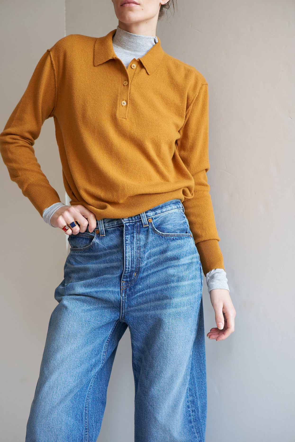 A chic and handsome pullover sweater with a rib knit collar and skinny polo placket. That mix of prep and sexy meets cool and classic. An all the time kind of sweater that elevates as easy as it every days.