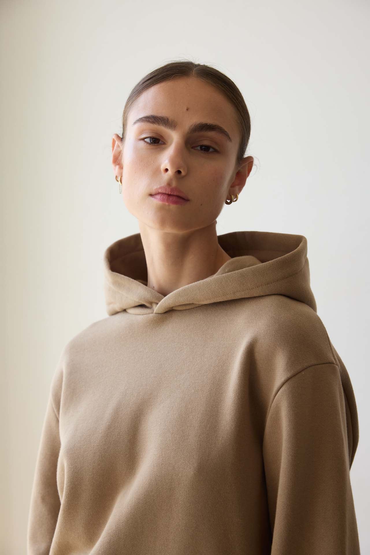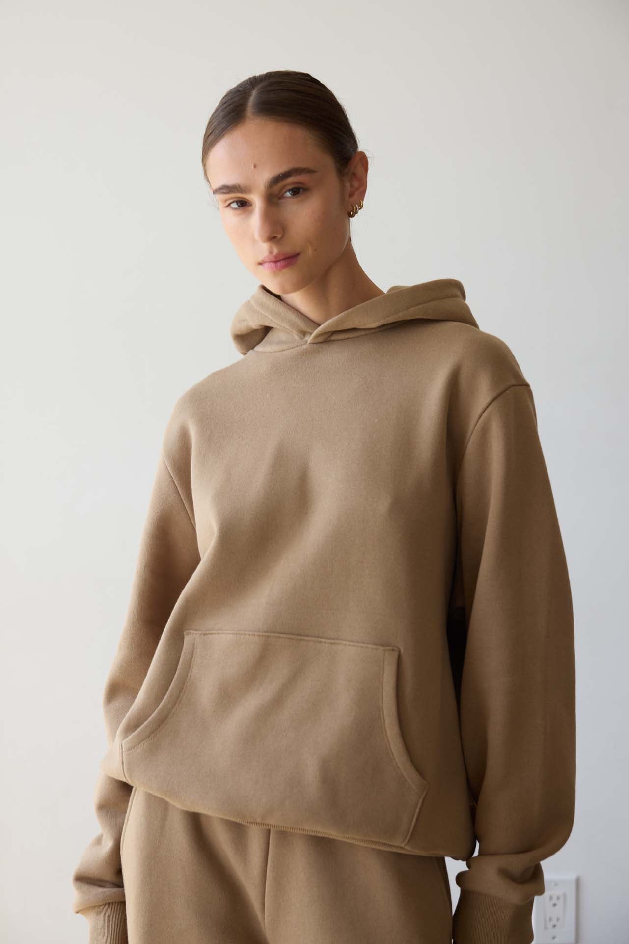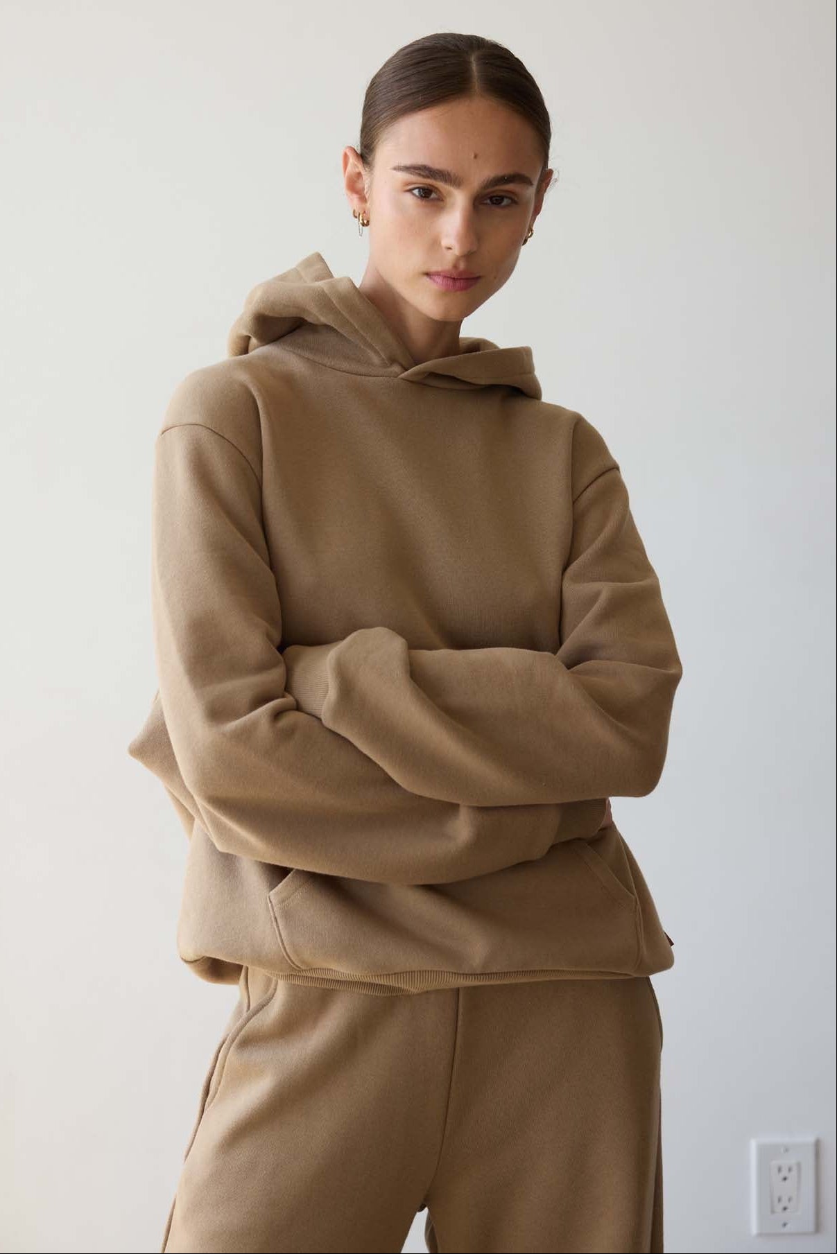 Designed to be modern and still maintain the authenticity of that perfect vintage hoodie. Oversized for a cozy effect, a large hood offers sanctuary on long flights. Minimalistic mood meets casual luxury. The Hooded Pullover easily pairs to designer pieces for an understated and effortless cool.