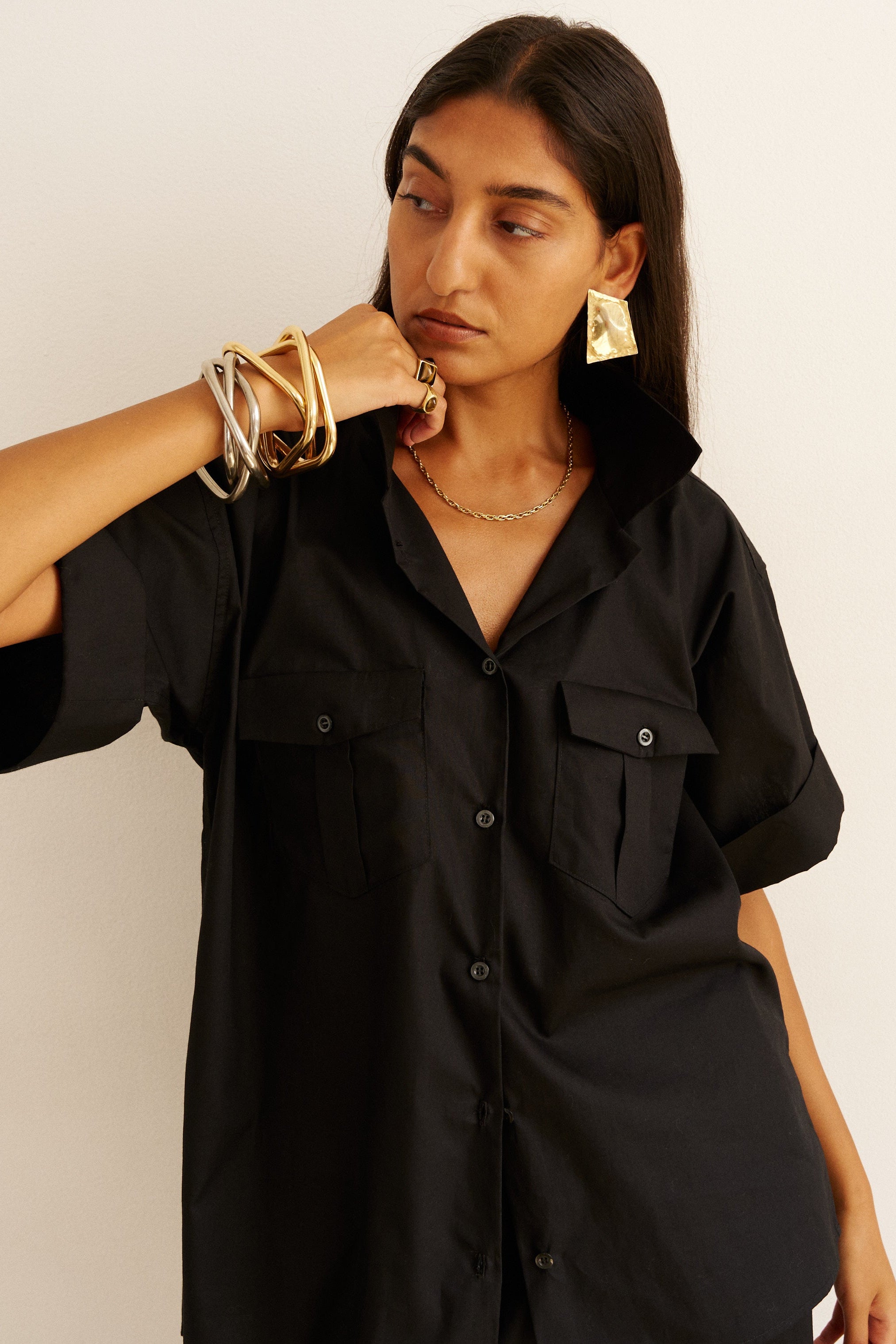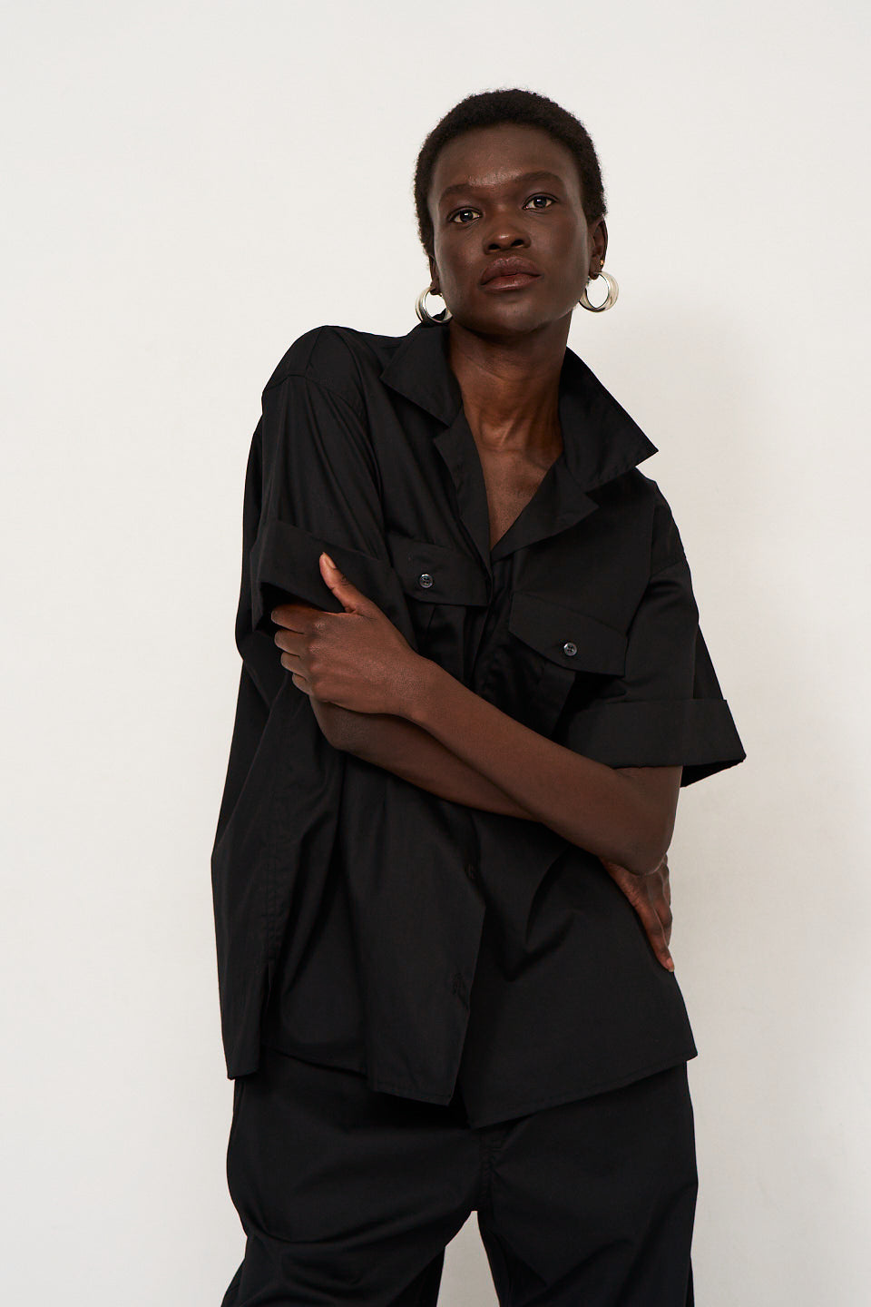 A safari inspire pleated pockets mixed with a boxy classic menswear shape that leans modern. Perfectly crisp meets soft, tailored in our Japanese Poplin.