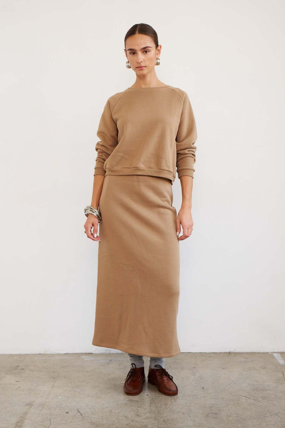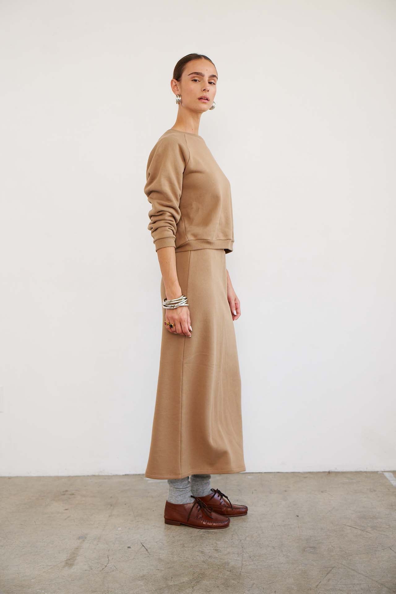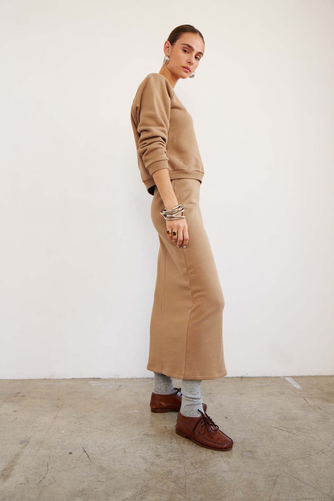 The Sweatshirt Skirt in Camel