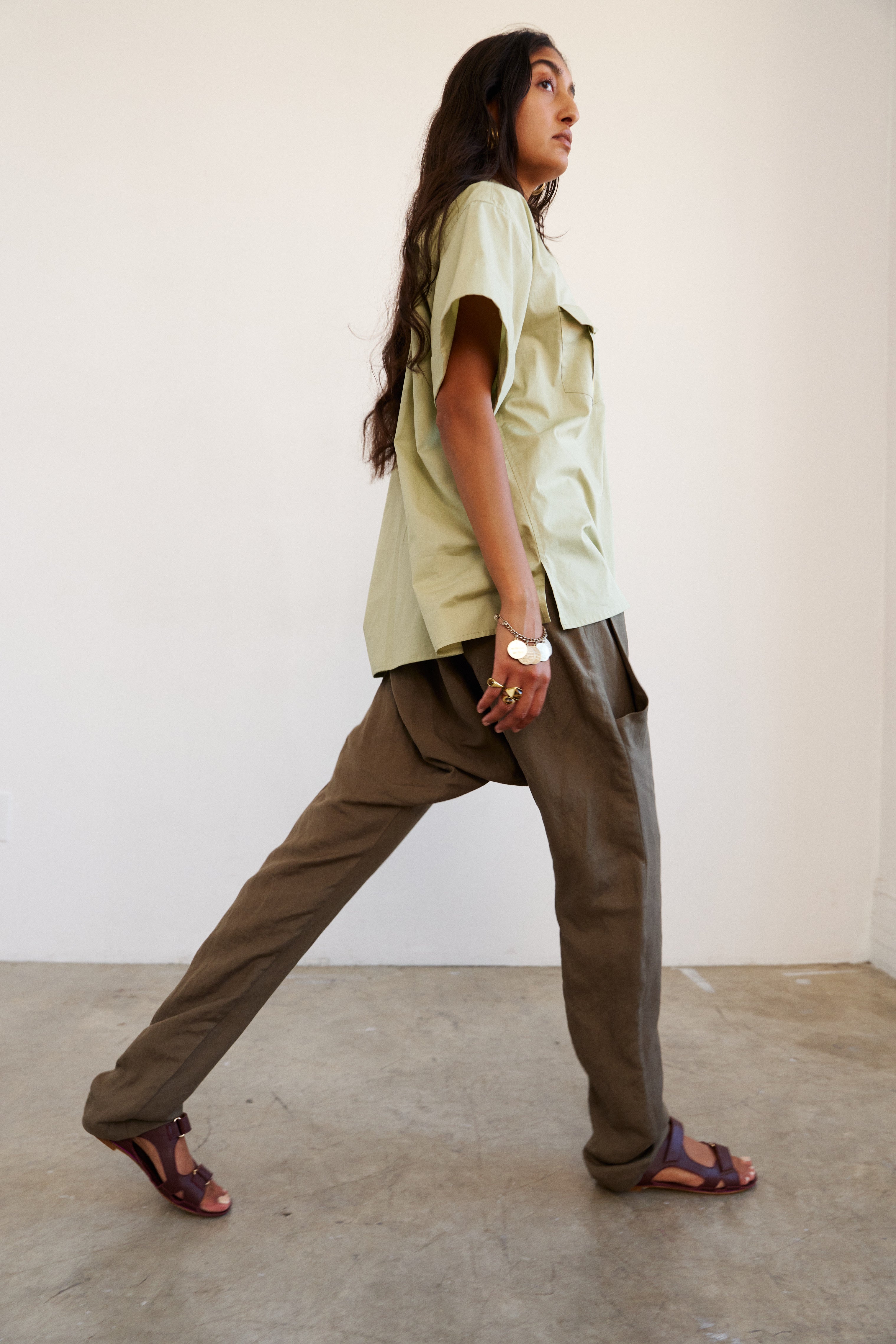 An inspired cross between a modern dance shoe and a hiking sandal, but minimal. The perfect spring and summer travel sandal. Sewn in Italian Calfskin. Leather lining and sole. Velcro closure.