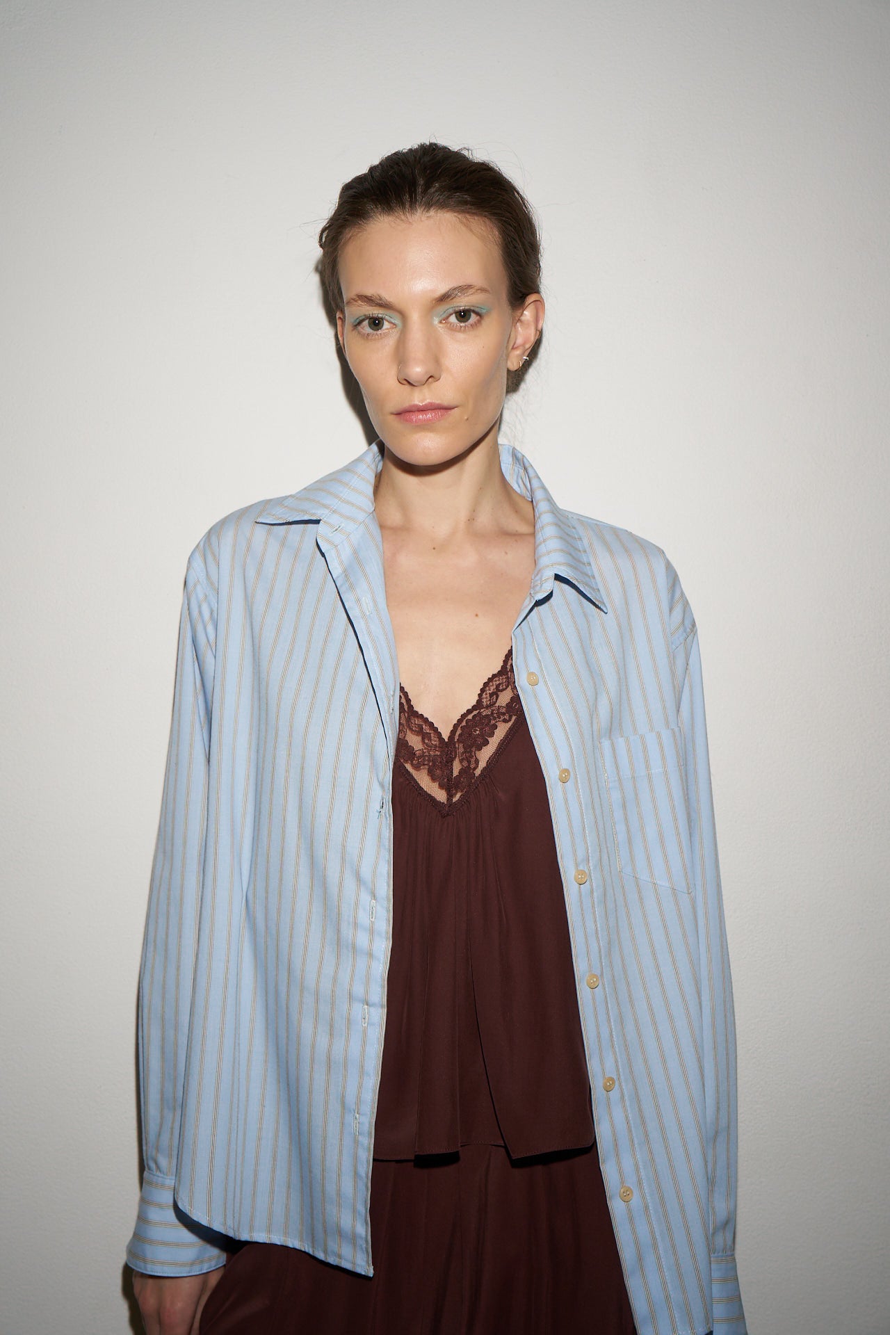 A shirt after my own heart, based on a shirt from my husband’s closet, a men’s style staple I steal over and over. A shirt with width enough to billow open when buttoned down to that perfect place on the breastbone. Fit loose for an effortless appeal but tailored with structured enough to look pulled together.