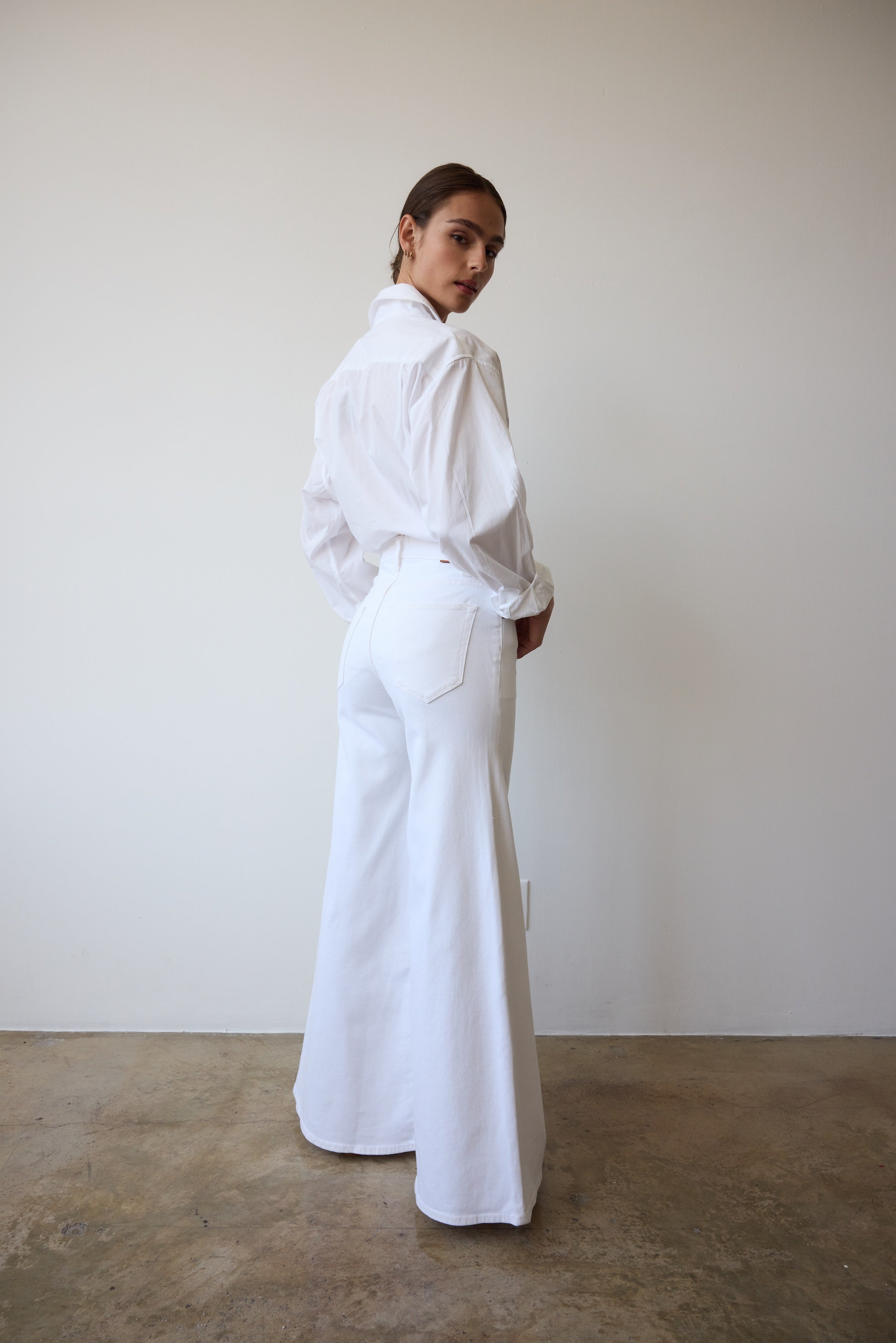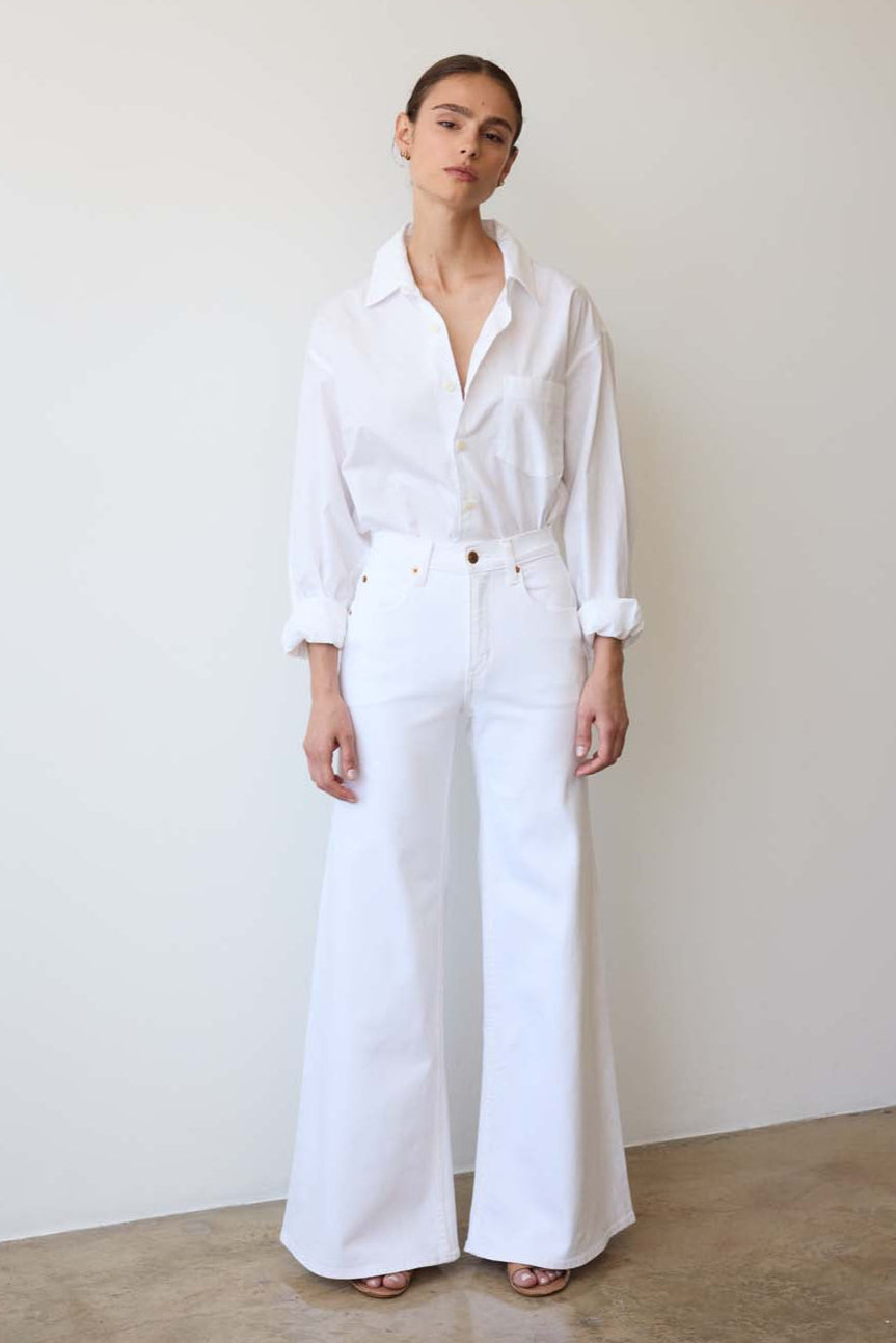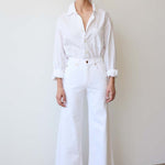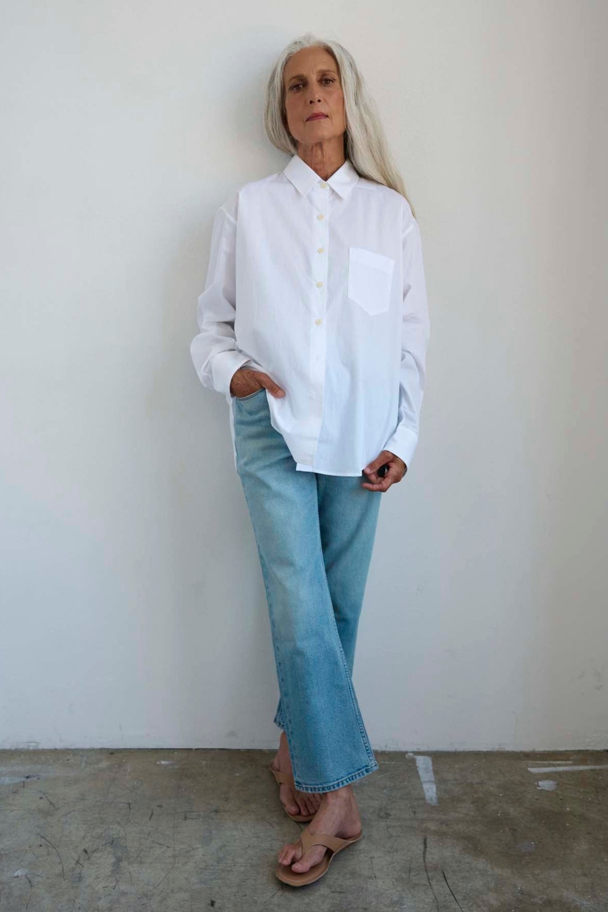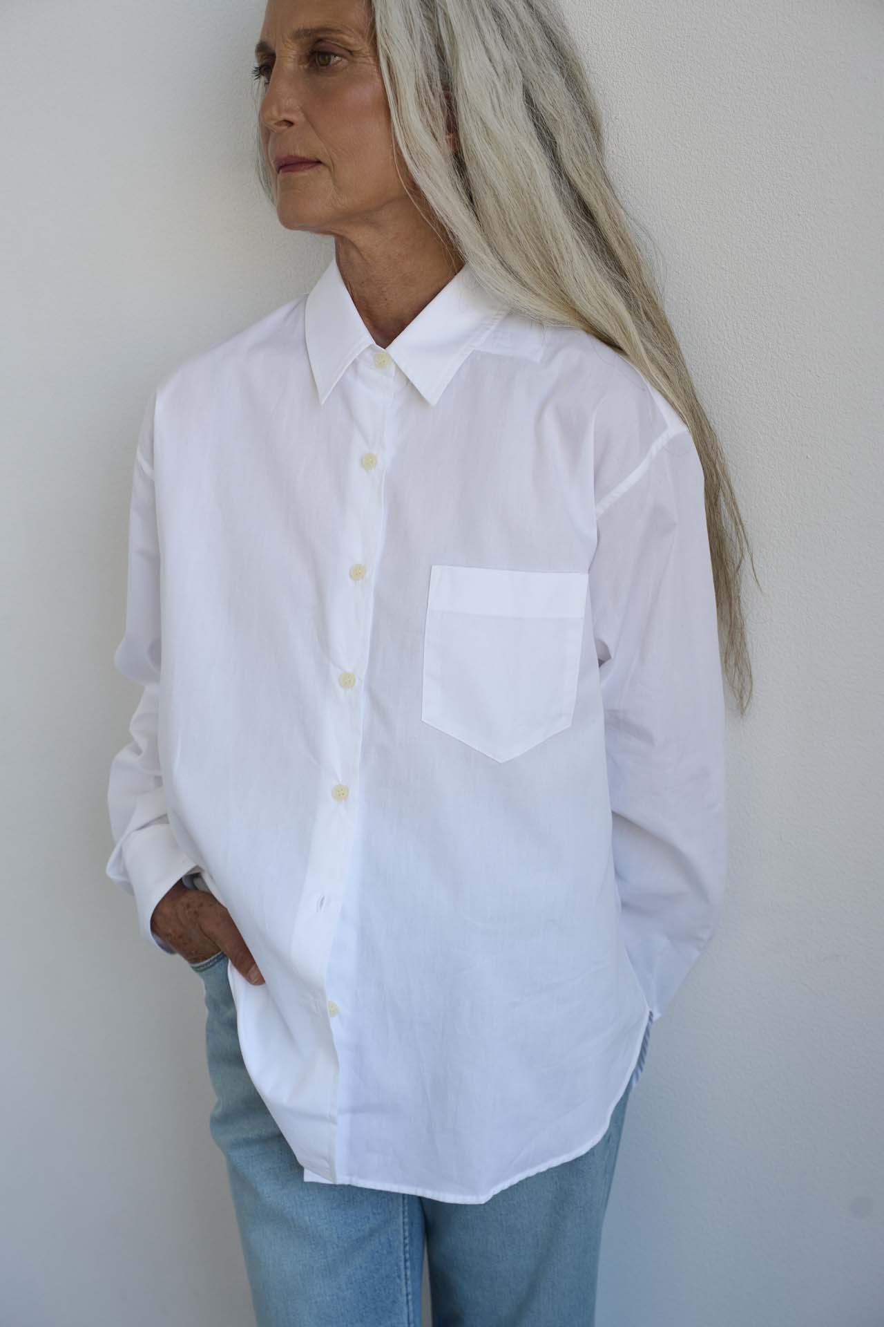 A shirt after my own heart, based on a shirt from my husband’s closet, a men’s style staple I steal over and over. Nothing revolutionary except our lovely casual cut in crisp quality Japanese poplin.  A shirt with width enough to billow open when buttoned down to that perfect place on the breastbone. Fit loose for an effortless appeal but tailored with structured enough to look pulled together.